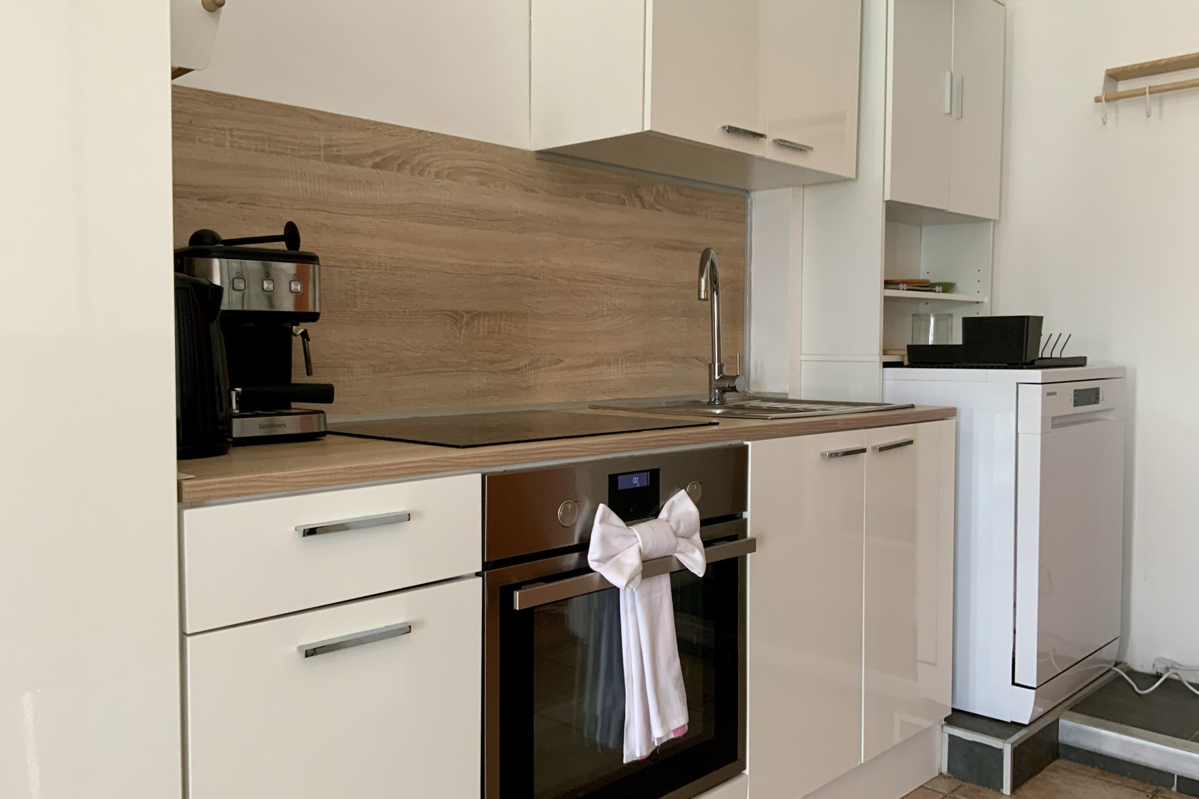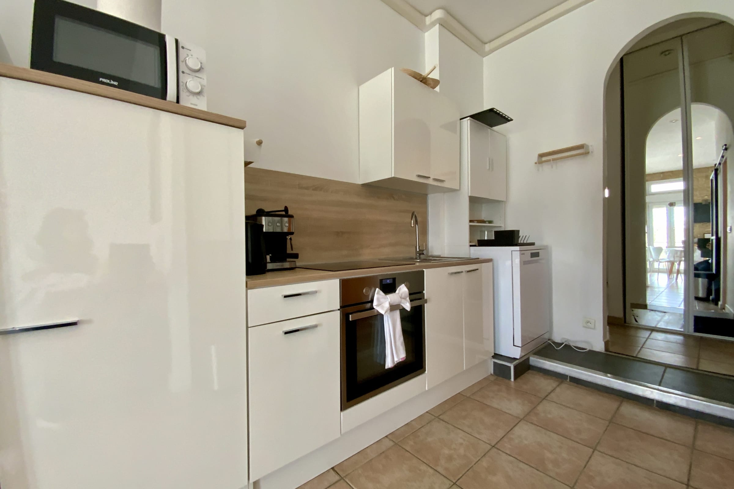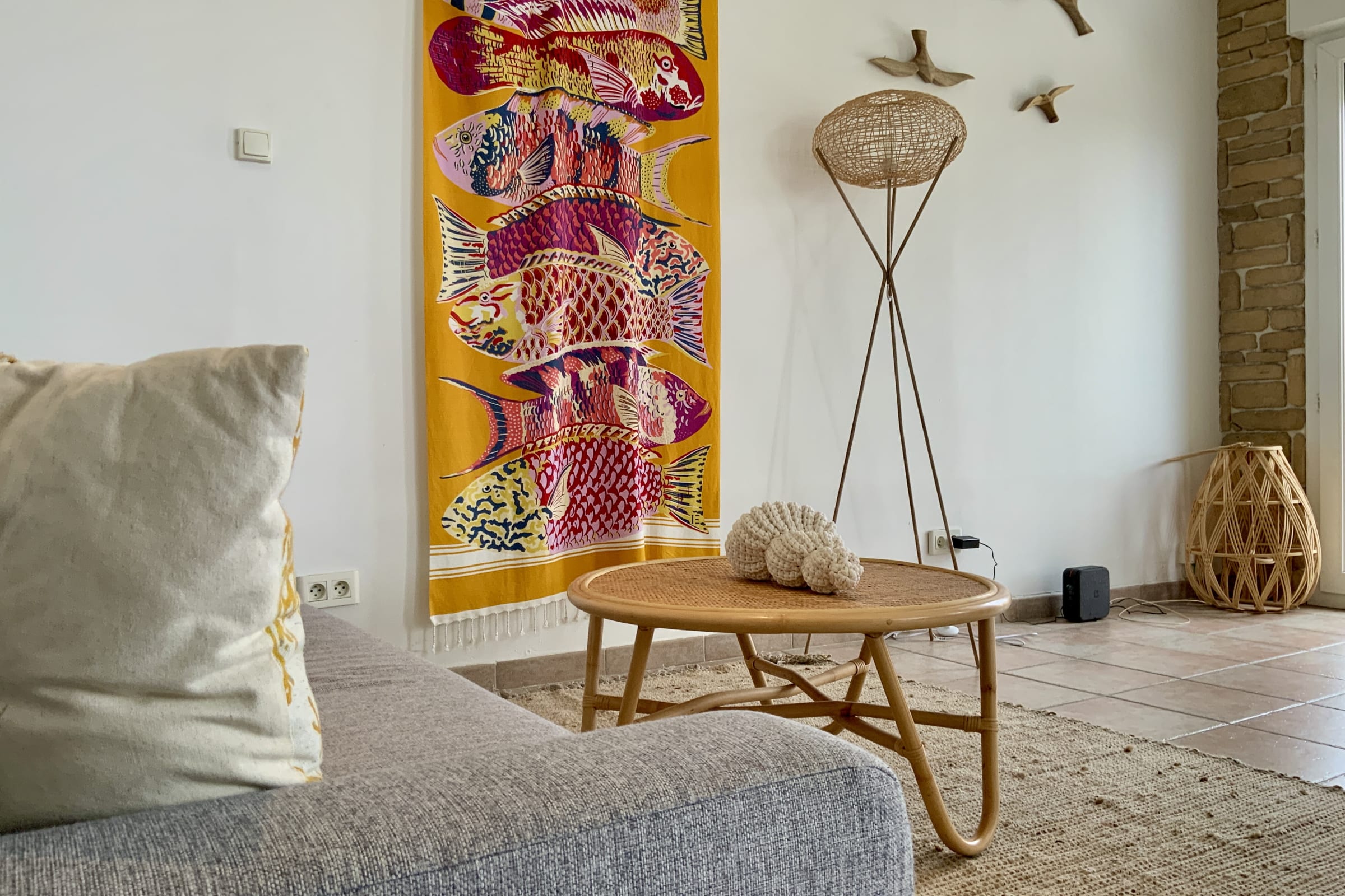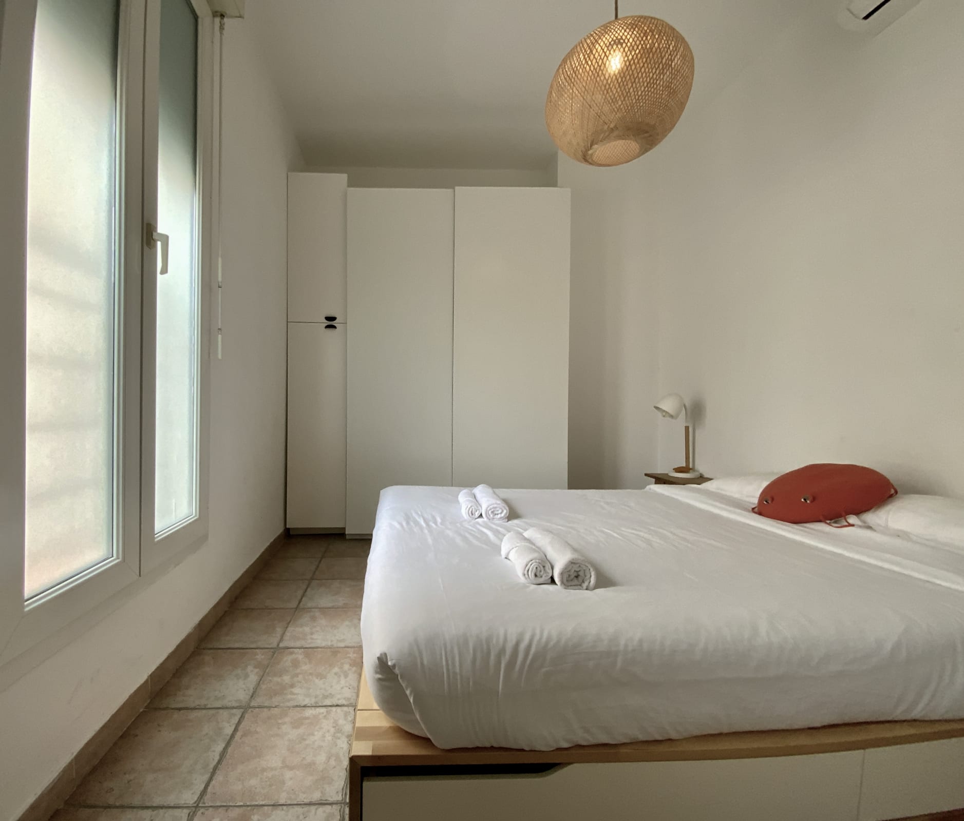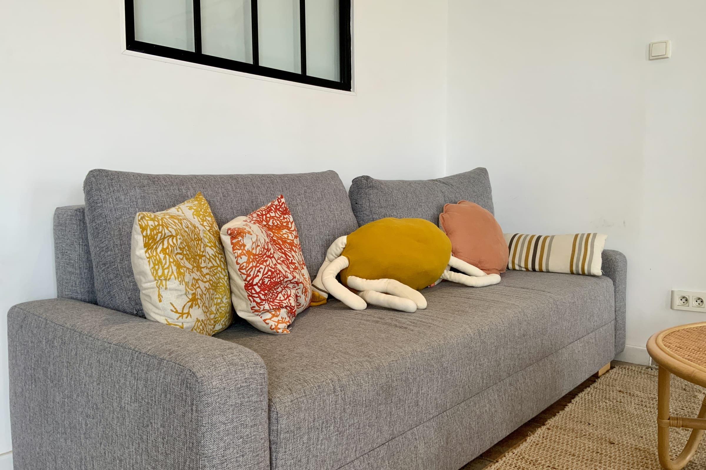 The apartment is bright, welcoming, and decorated with great taste. You’ll enjoy a spacious, sunny living room with a view of the Fishing Port and direct access to the terrace for your morning breakfasts. The open kitchen is fully equipped with a coffee machine, toaster, kettle, oven, microwave, fridge, and all the necessary kitchen utensils to prepare delicious meals.