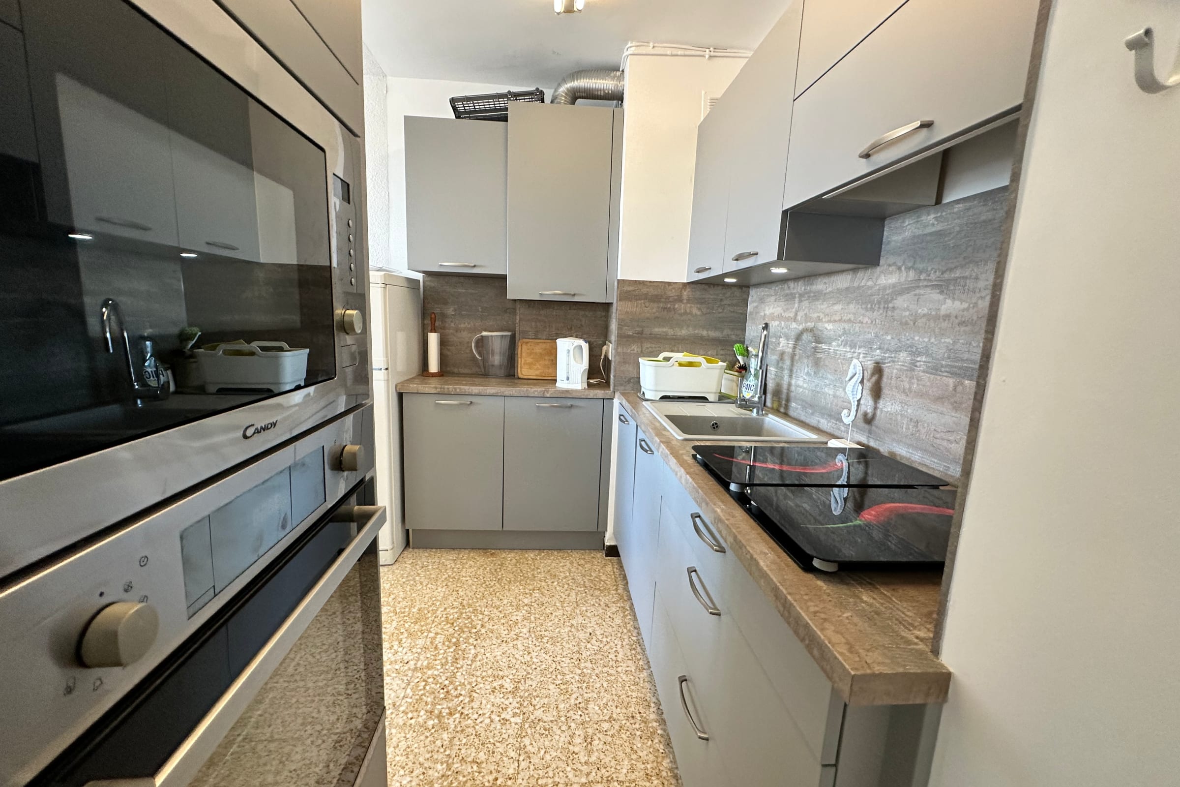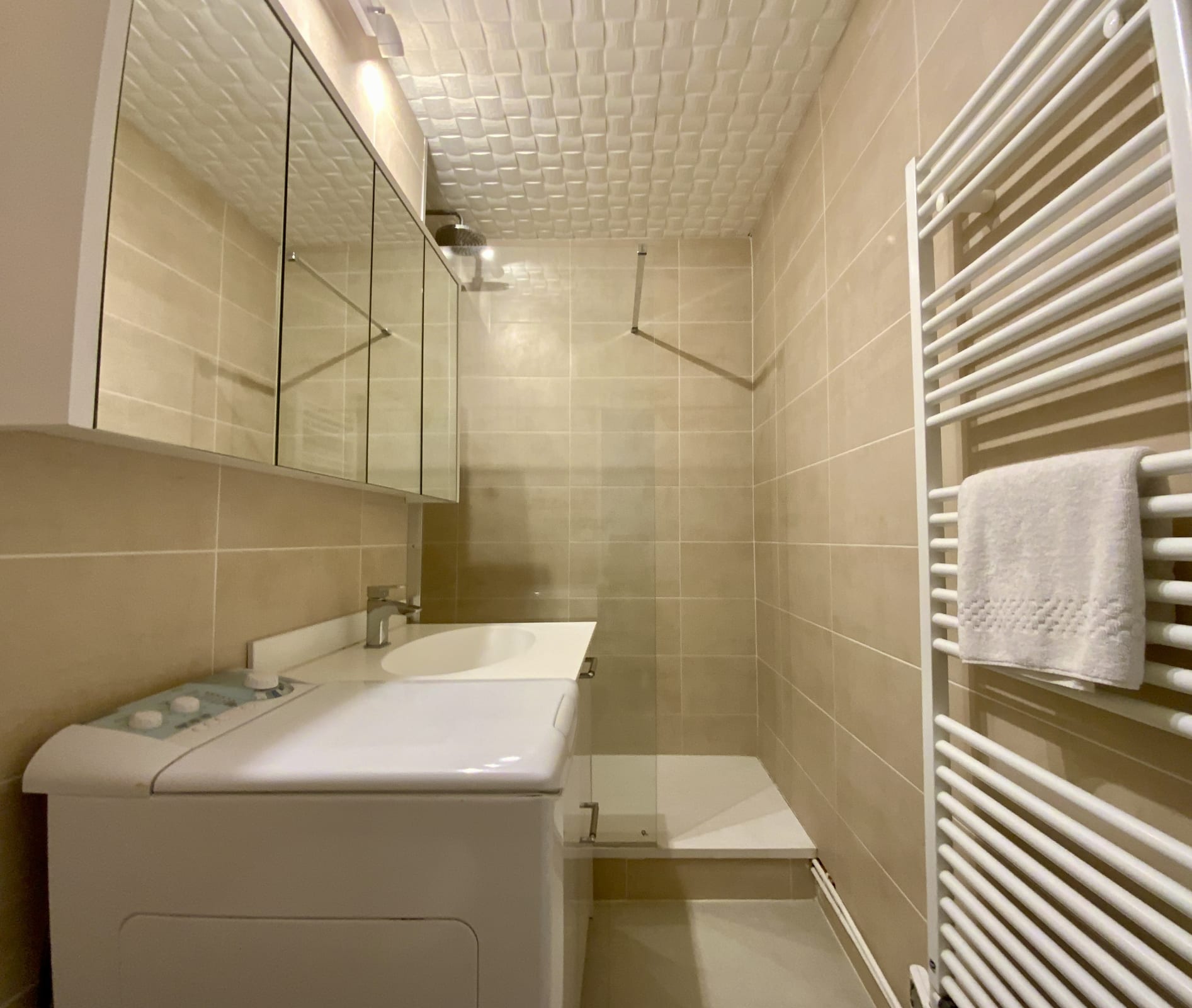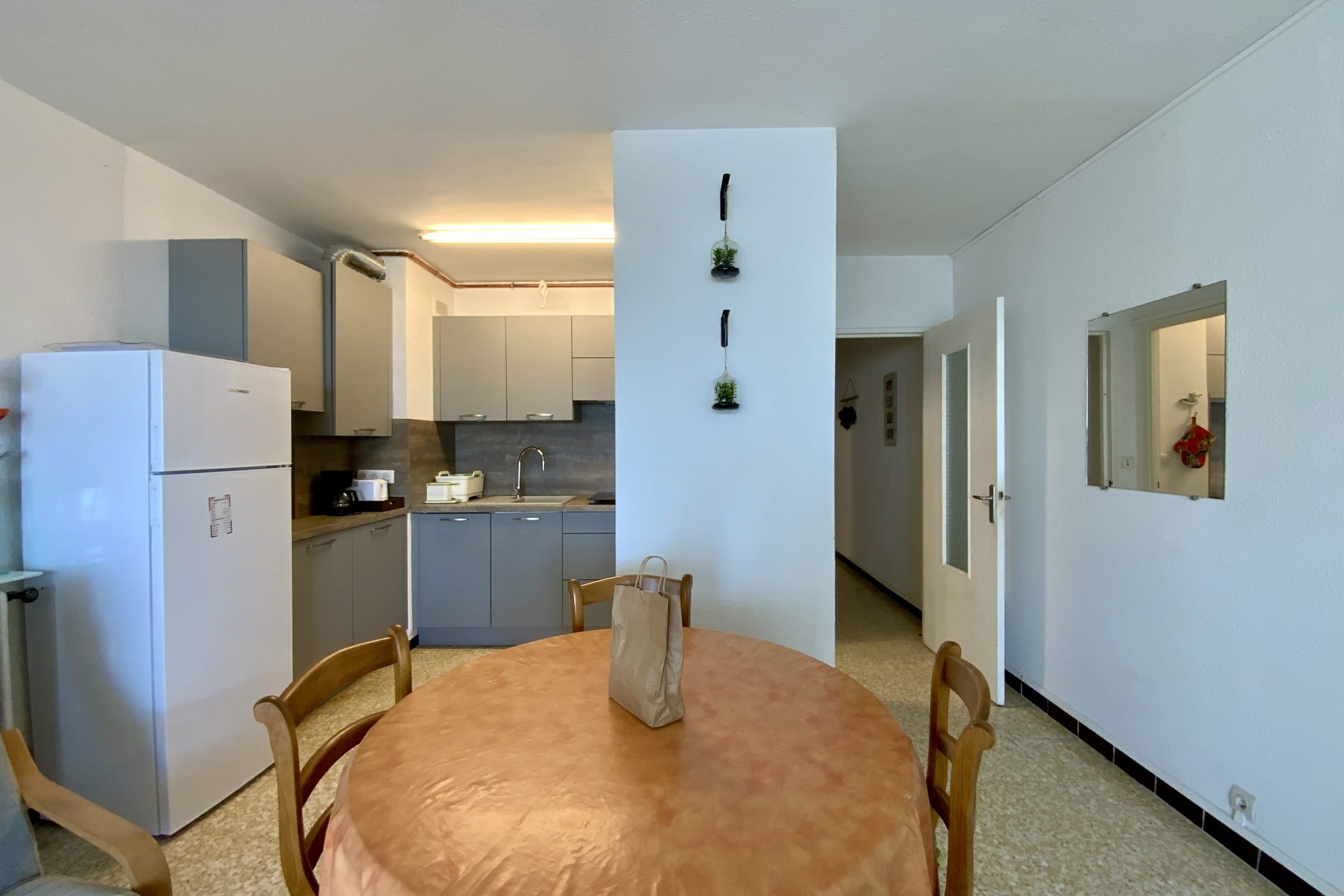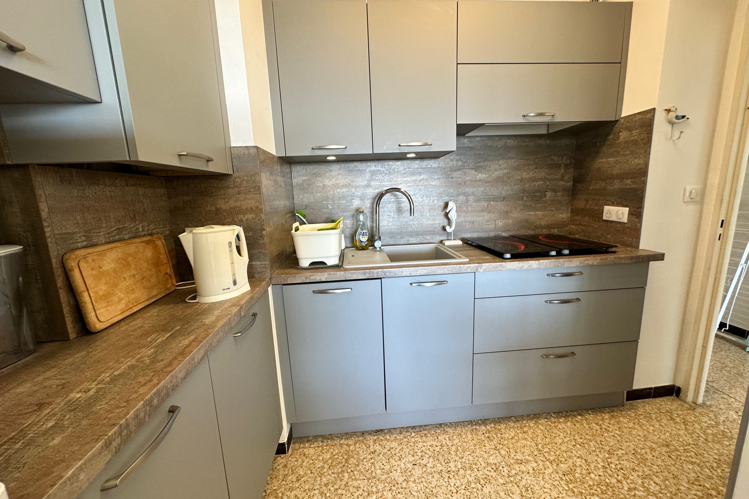 The apartment consists of an entrance, a kitchen open to the living area, bathed in light, with access to a covered terrace offering a small sea view. The kitchen is fully equipped for your comfort, including a Nespresso coffee machine, kettle, toaster, etc. The modern bathroom features an Italian shower, and the bedroom is a peaceful retreat with a double bed, practical storage, and quality bedding for restful nights.