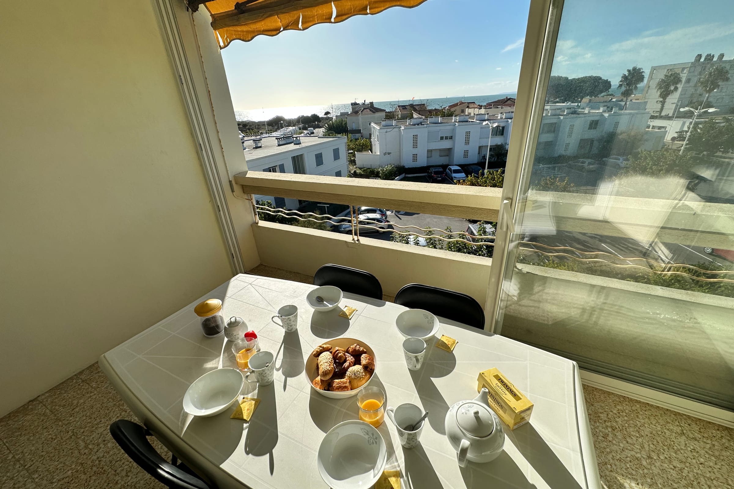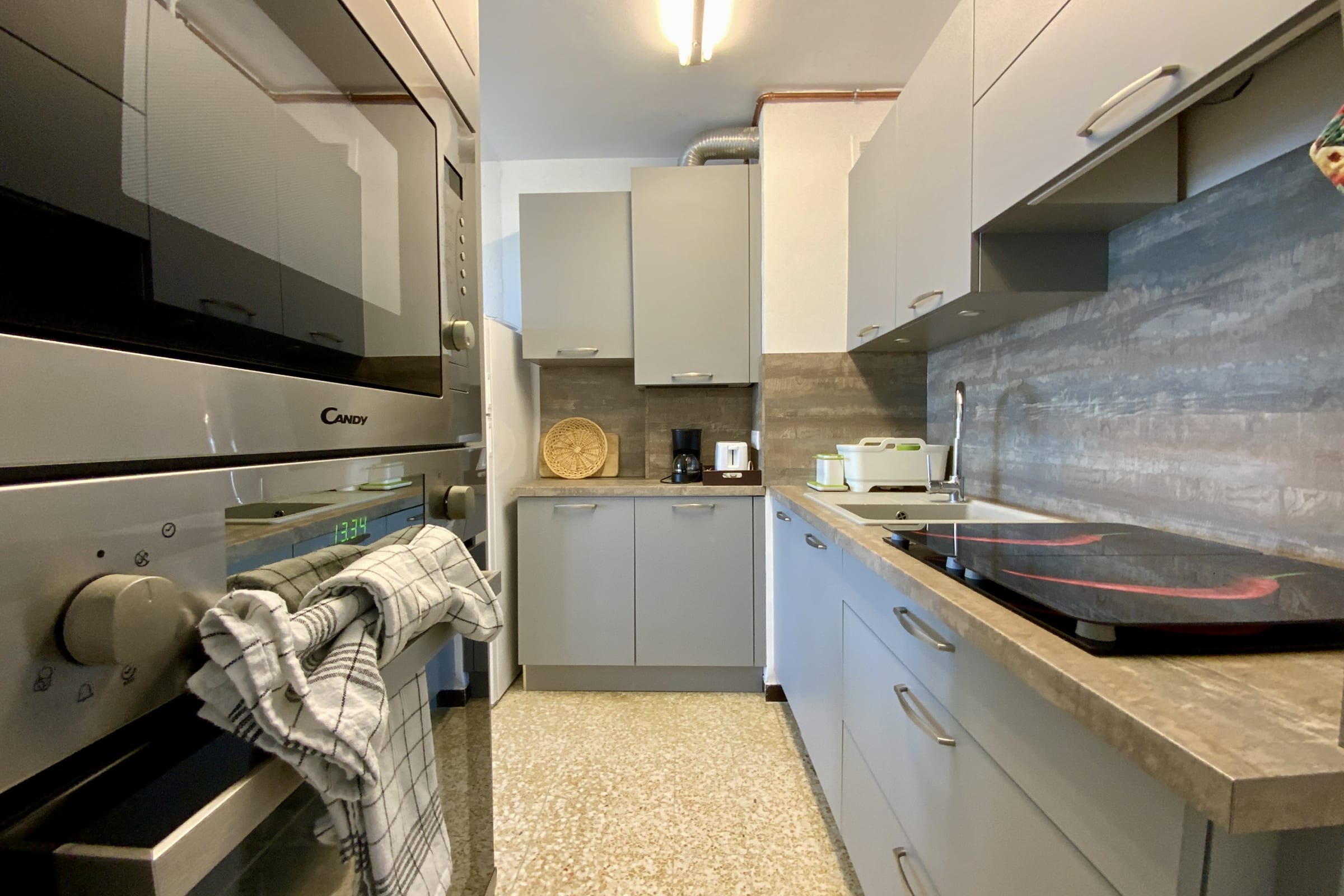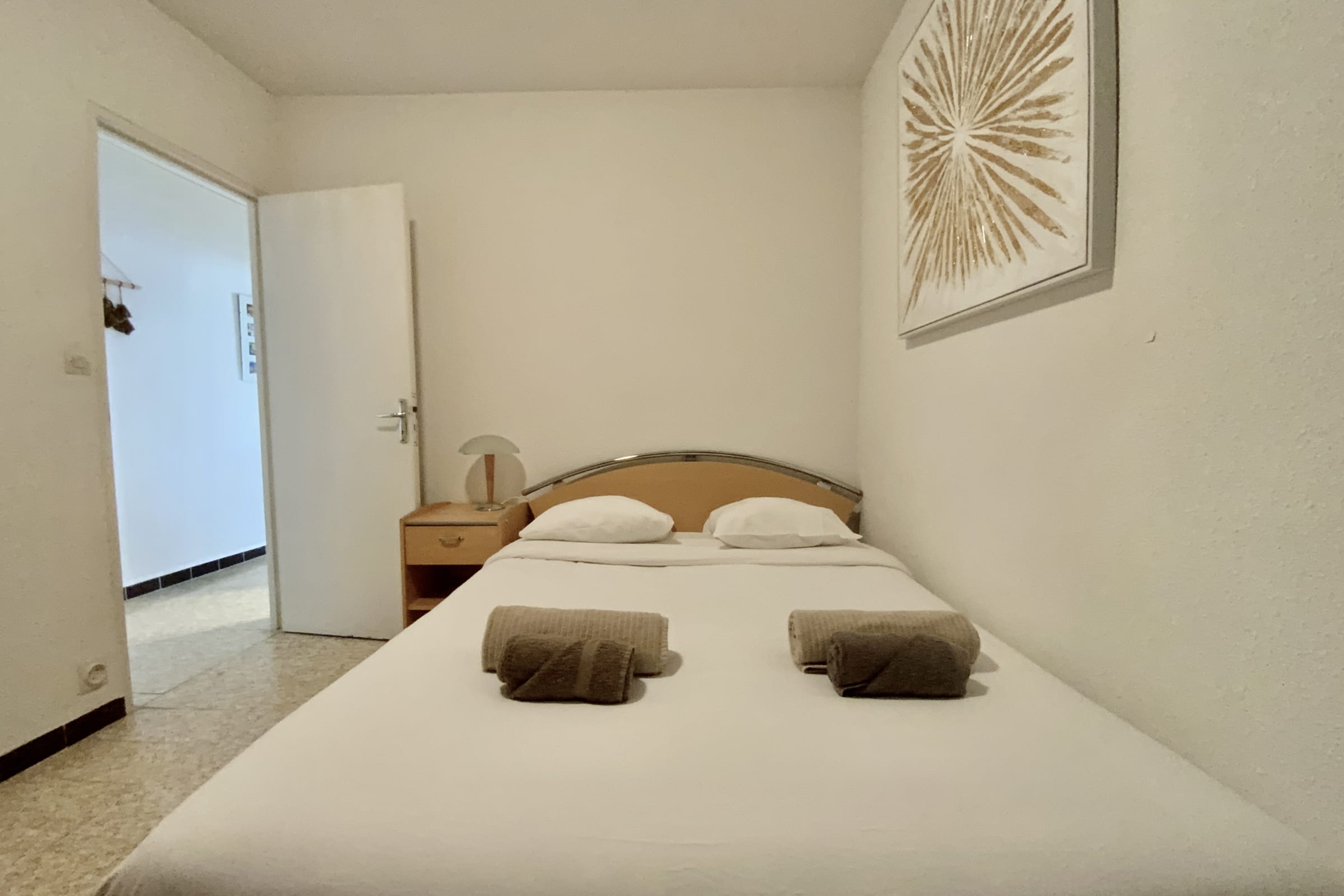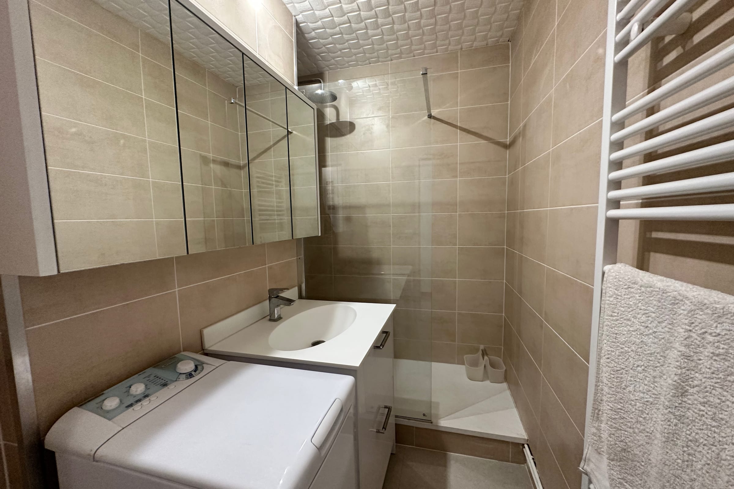 The apartment consists of an entrance, a kitchen open to the living area, bathed in light, with access to a covered terrace offering a small sea view. The kitchen is fully equipped for your comfort, including a Nespresso coffee machine, kettle, toaster, etc. The modern bathroom features an Italian shower, and the bedroom is a peaceful retreat with a double bed, practical storage, and quality bedding for restful nights.