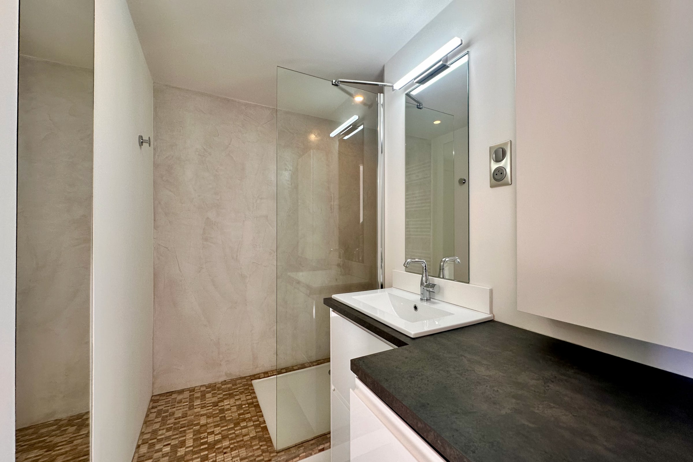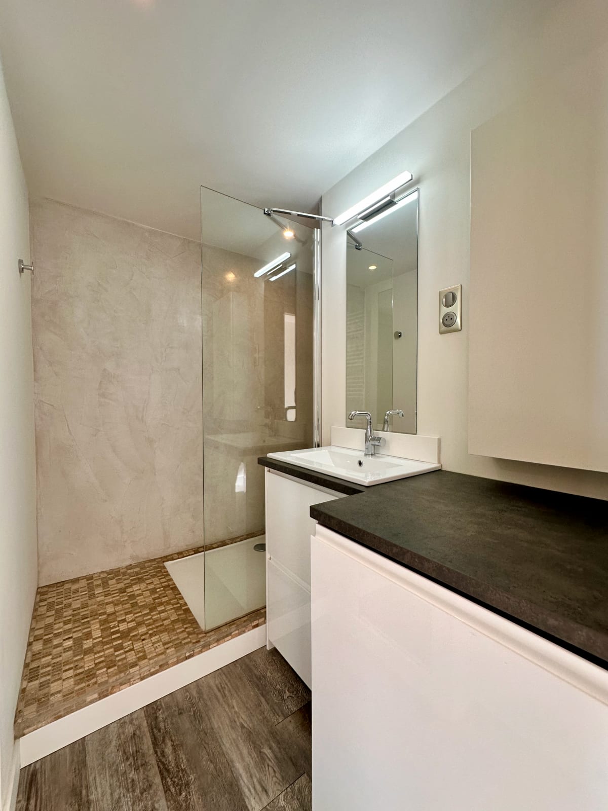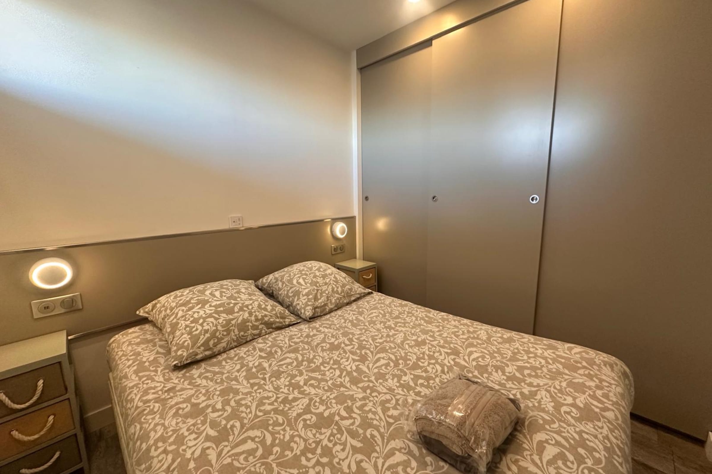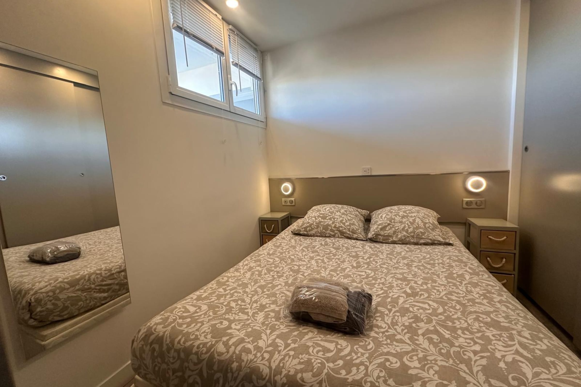 The apartment also includes a separate bedroom with a closet and a double bed. This warm and tastefully decorated room provides a true haven of peace for your nights.