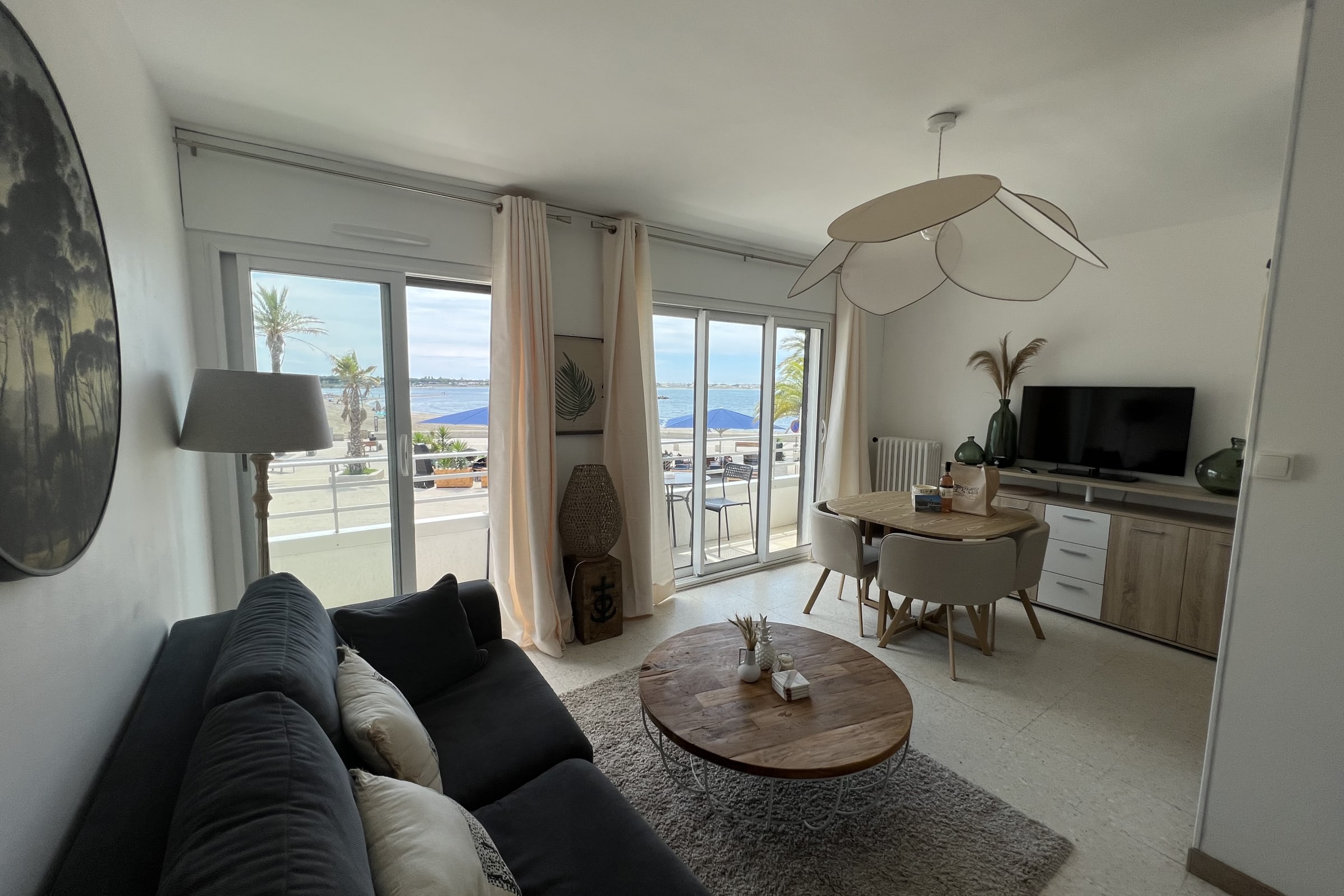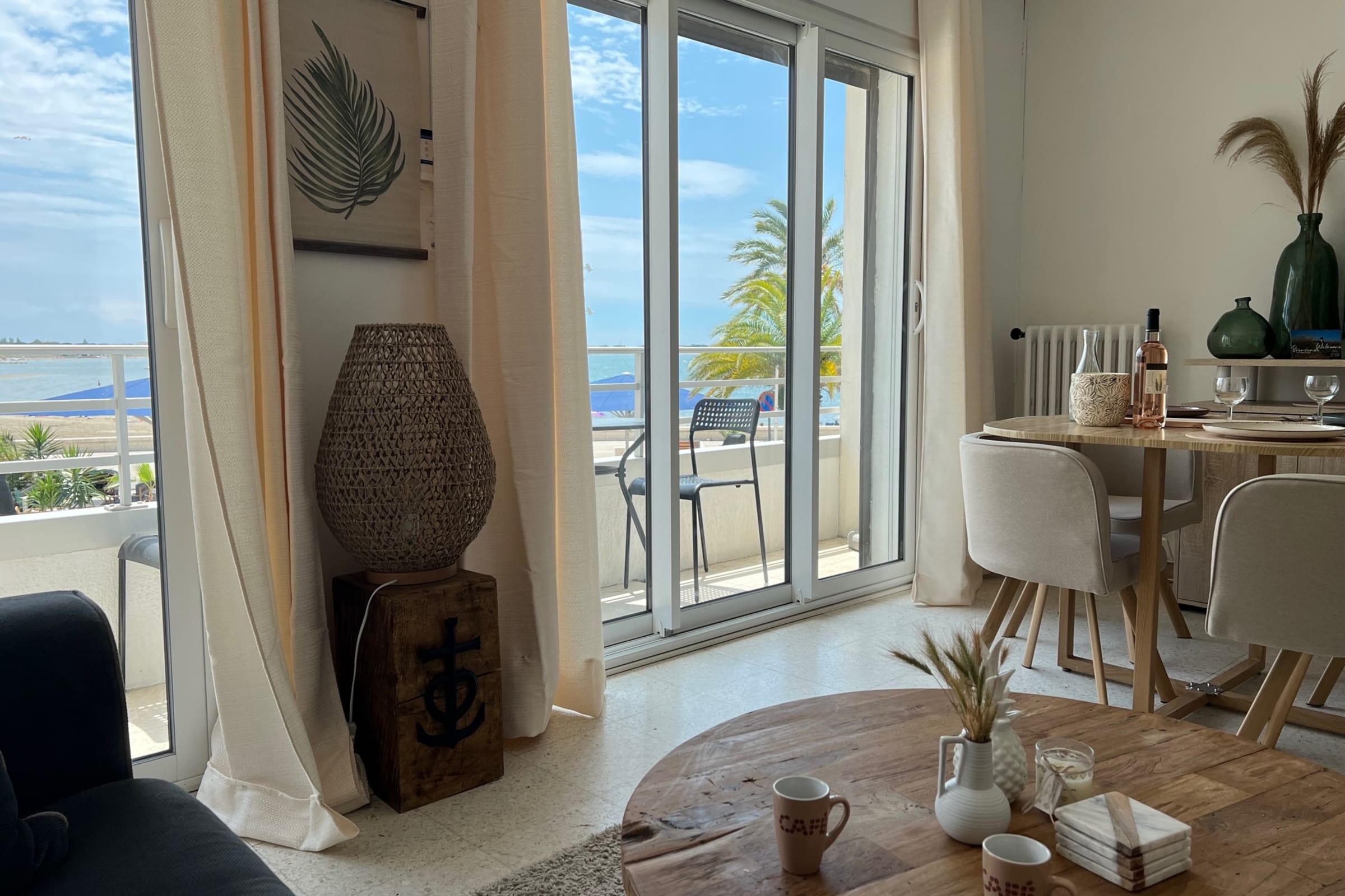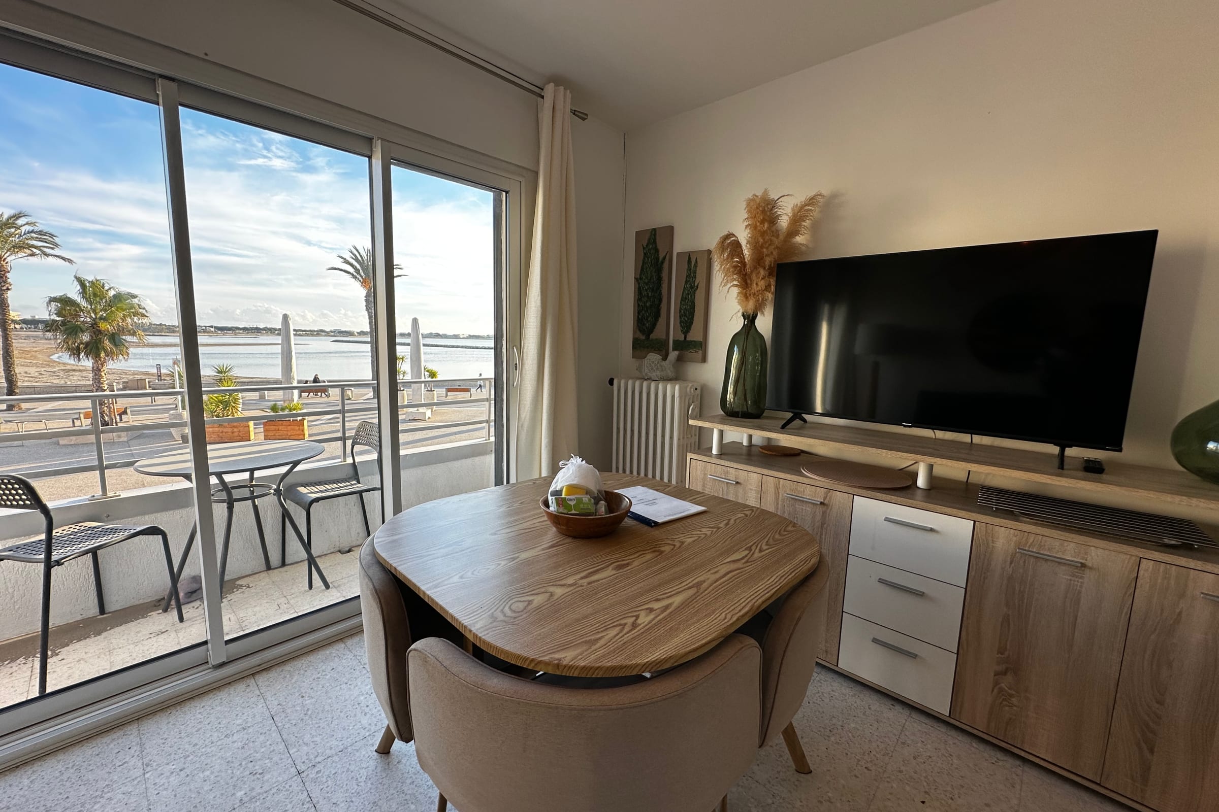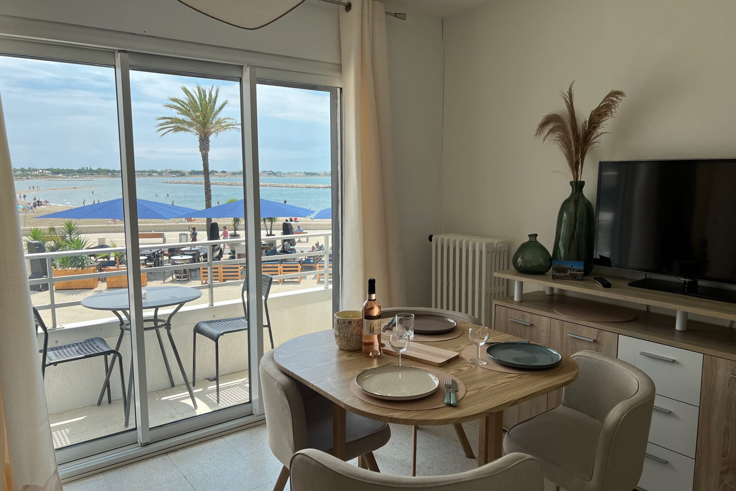 This apartment is located on the left bank of Le Grau du Roi, a significant spot marking the entrance to the Fishing Port. Just 50 m from the beach, it’s an ideal location for your vacation, business trips, or short stays.