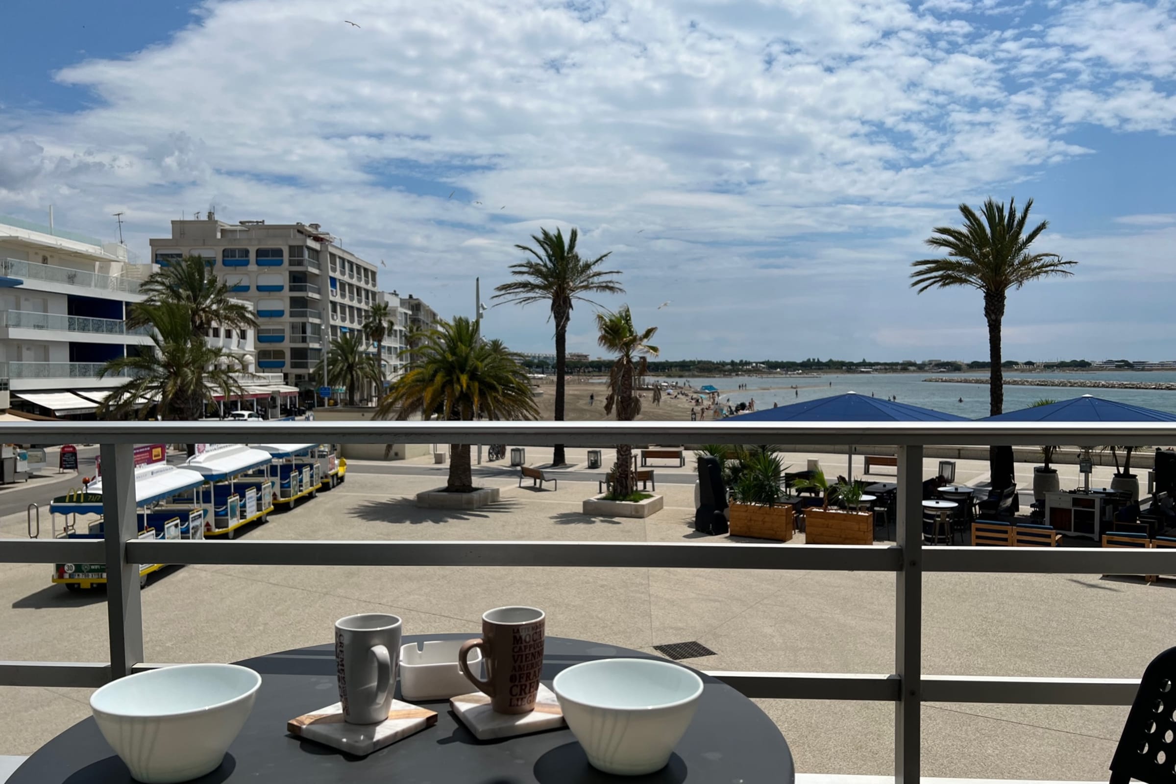 The Grau du Roi train station is located 1 km away, with bus services available nearby. The nearest high-traffic station is Montpellier Sud de France, and the closest airport is also Montpellier.