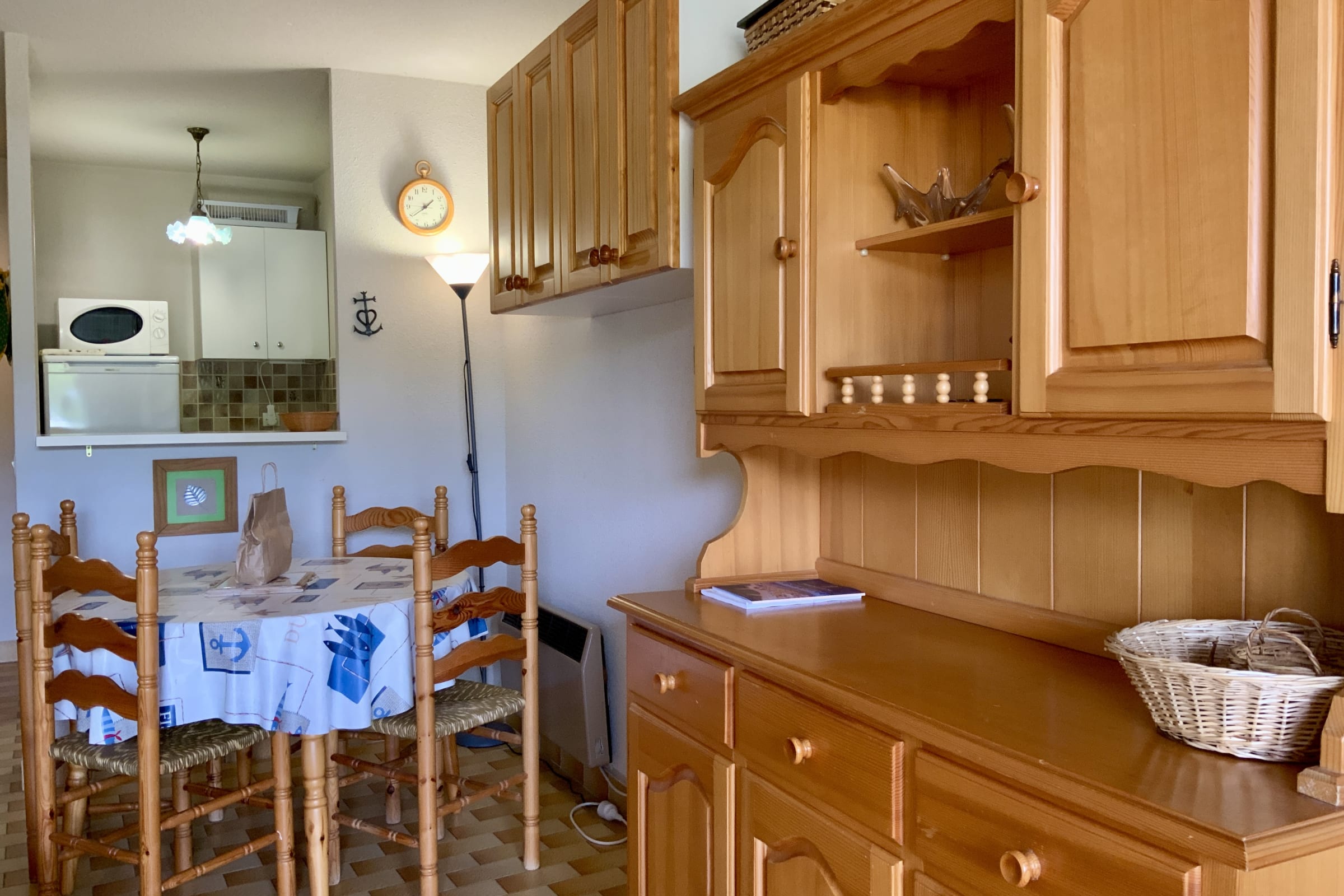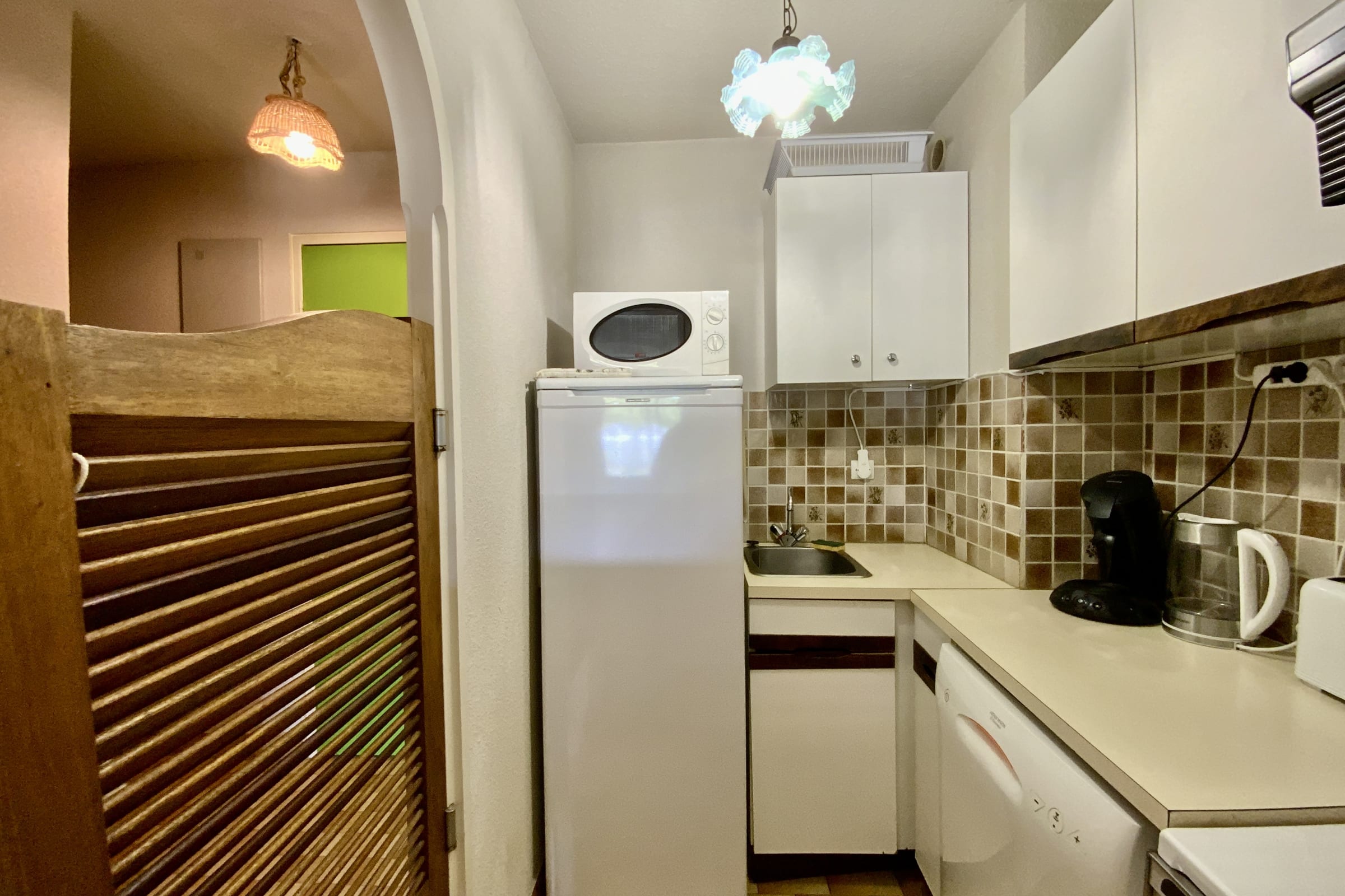 All the necessary equipment is provided for a pleasant stay: coffee machine, toaster, kettle, oven, microwave, fridge, etc., as well as all the utensils needed to cook delicious meals. The living room also includes a TV.