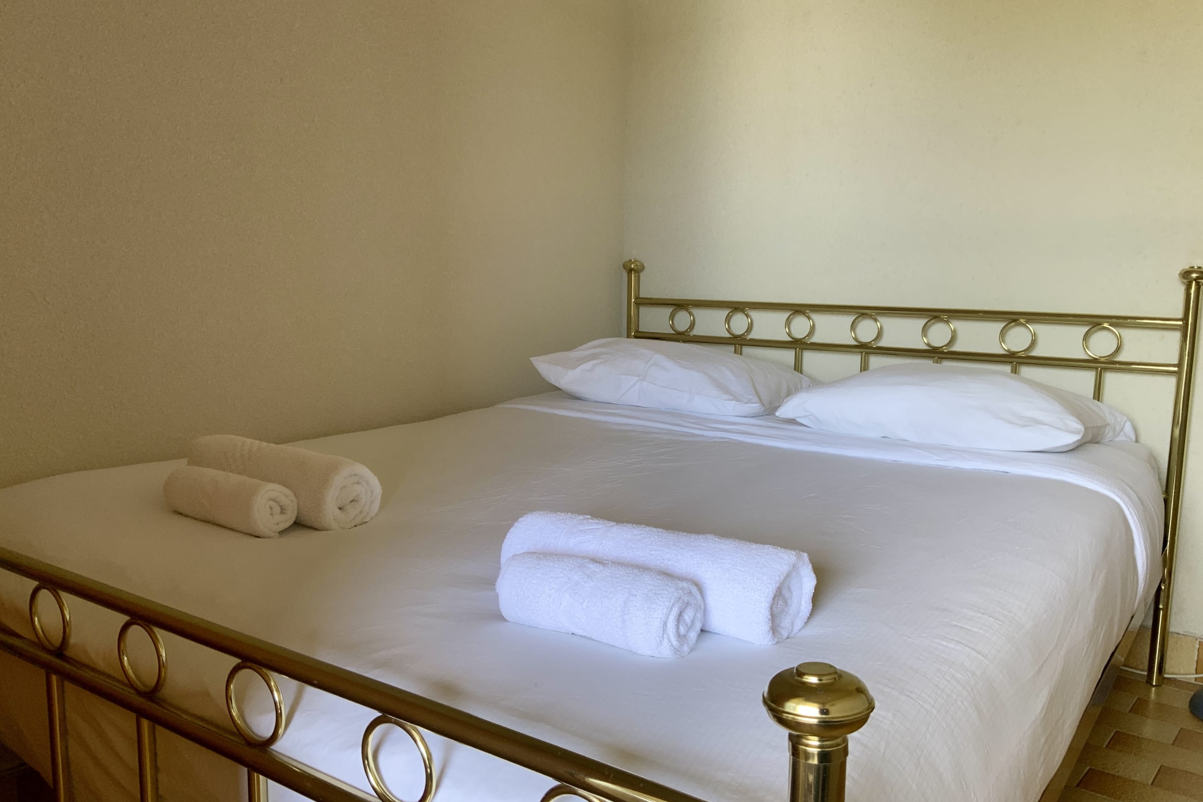 A set of sheets for a double bed and 4 bath towels (2 large and 2 small) are included in the reservation.