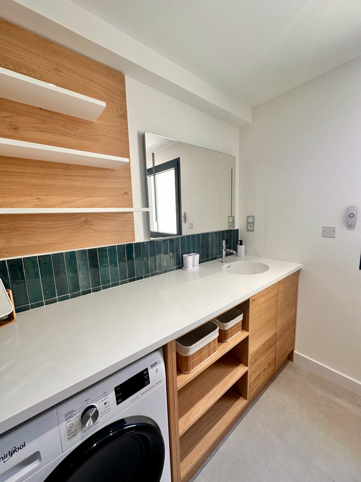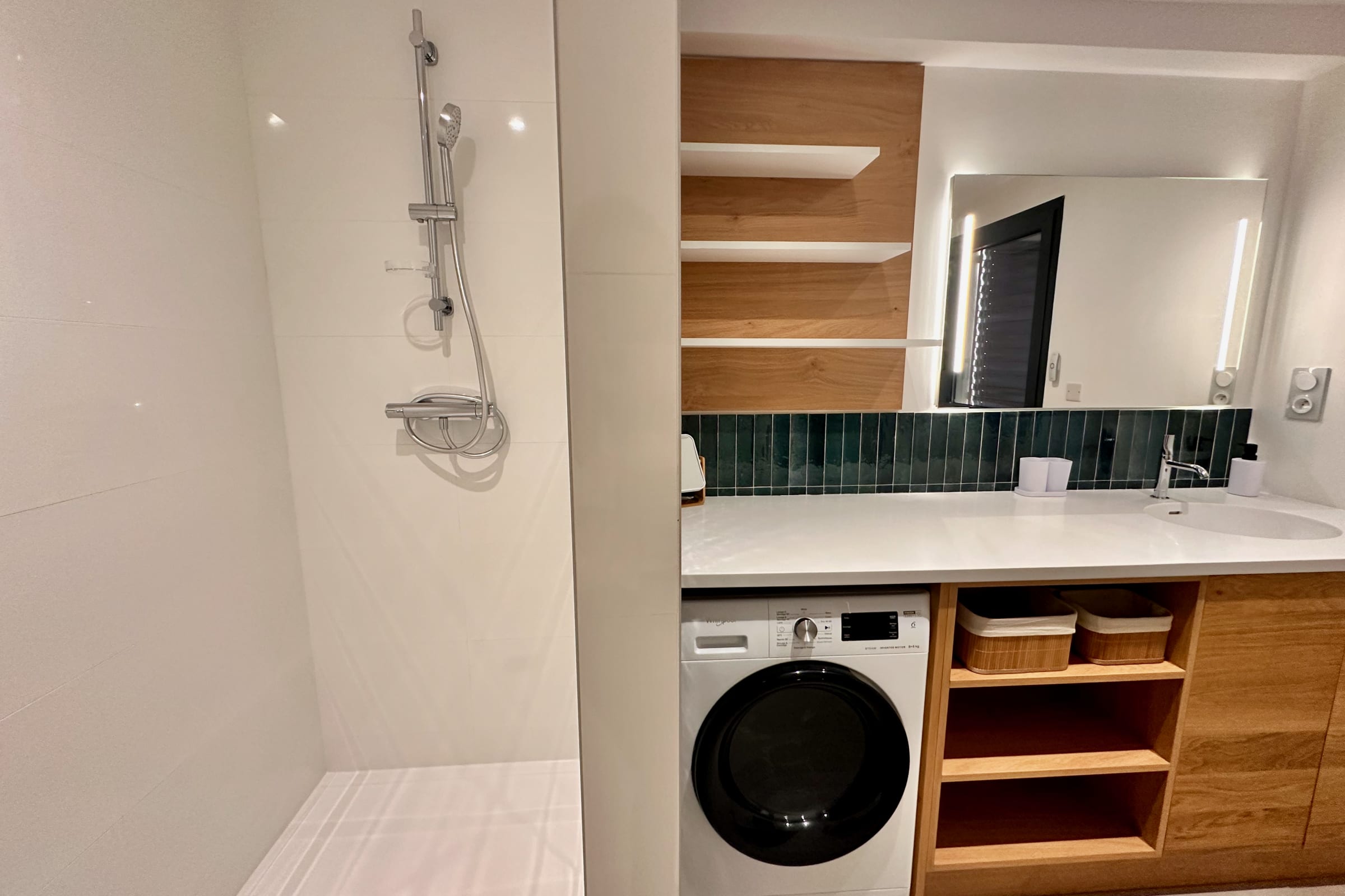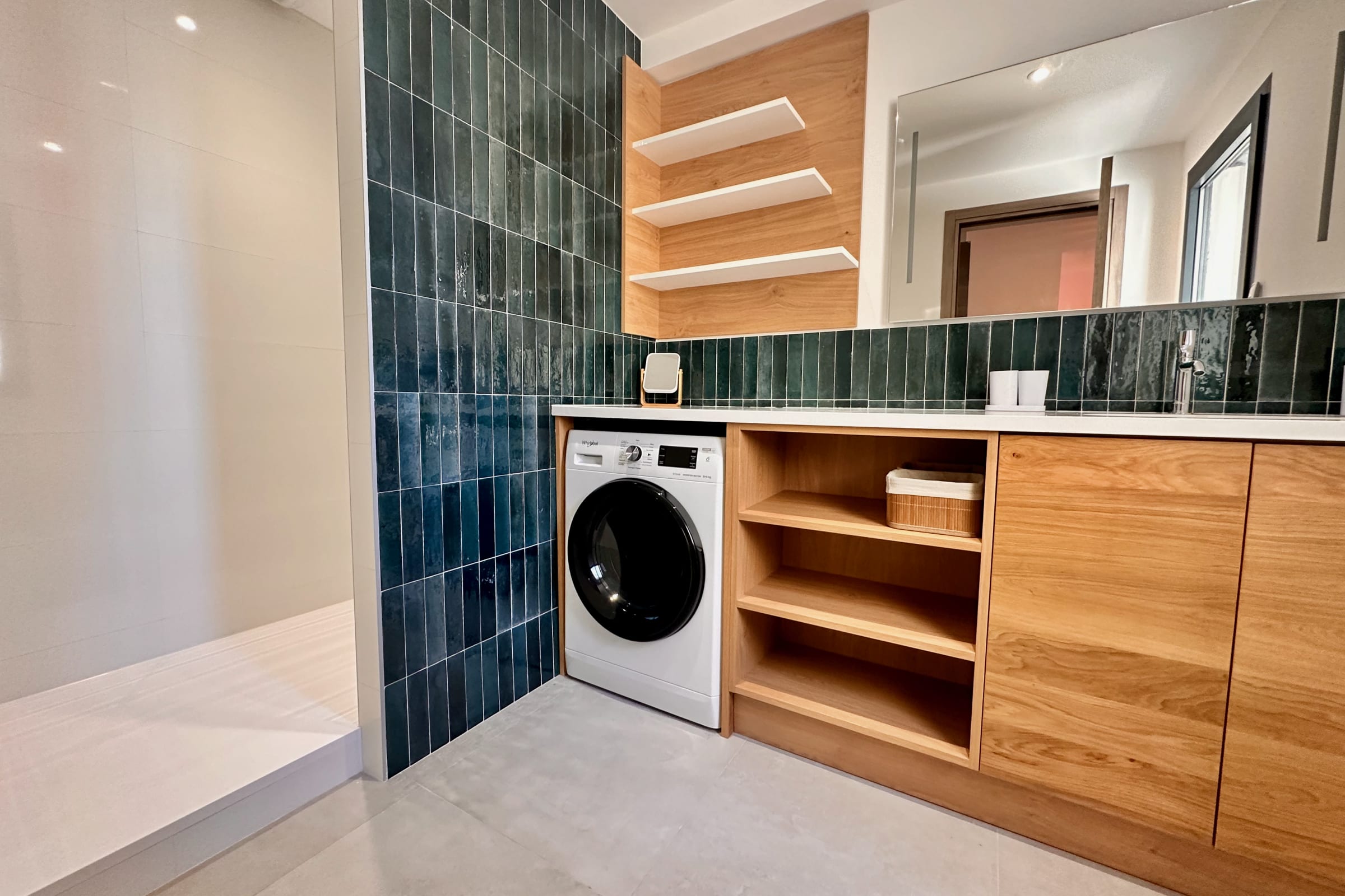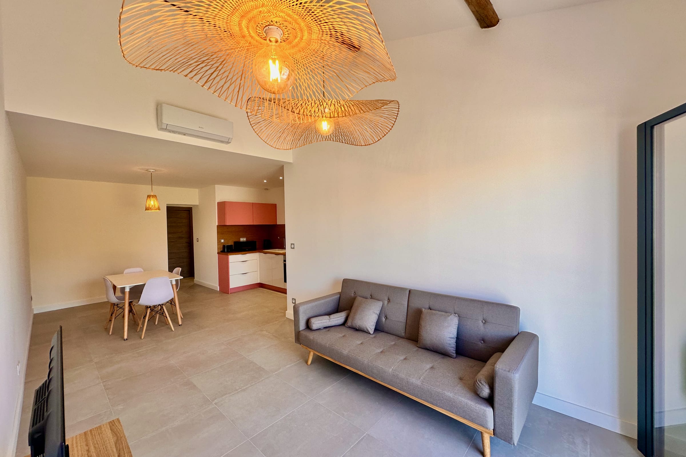 The property has been beautifully renovated with attention to detail. A touch of color during your vacation? You’ll enjoy a lovely living space, with a kitchen in vibrant pink tones that gives it a dynamic look you'll love! The kitchen is fully equipped and has everything you need for your breakfasts and lunches: coffee machine, toaster, kettle, etc. The living area is bright, and the real highlight will be when you discover the stunning view of the Fishing Port from the balcony of the apartment.
