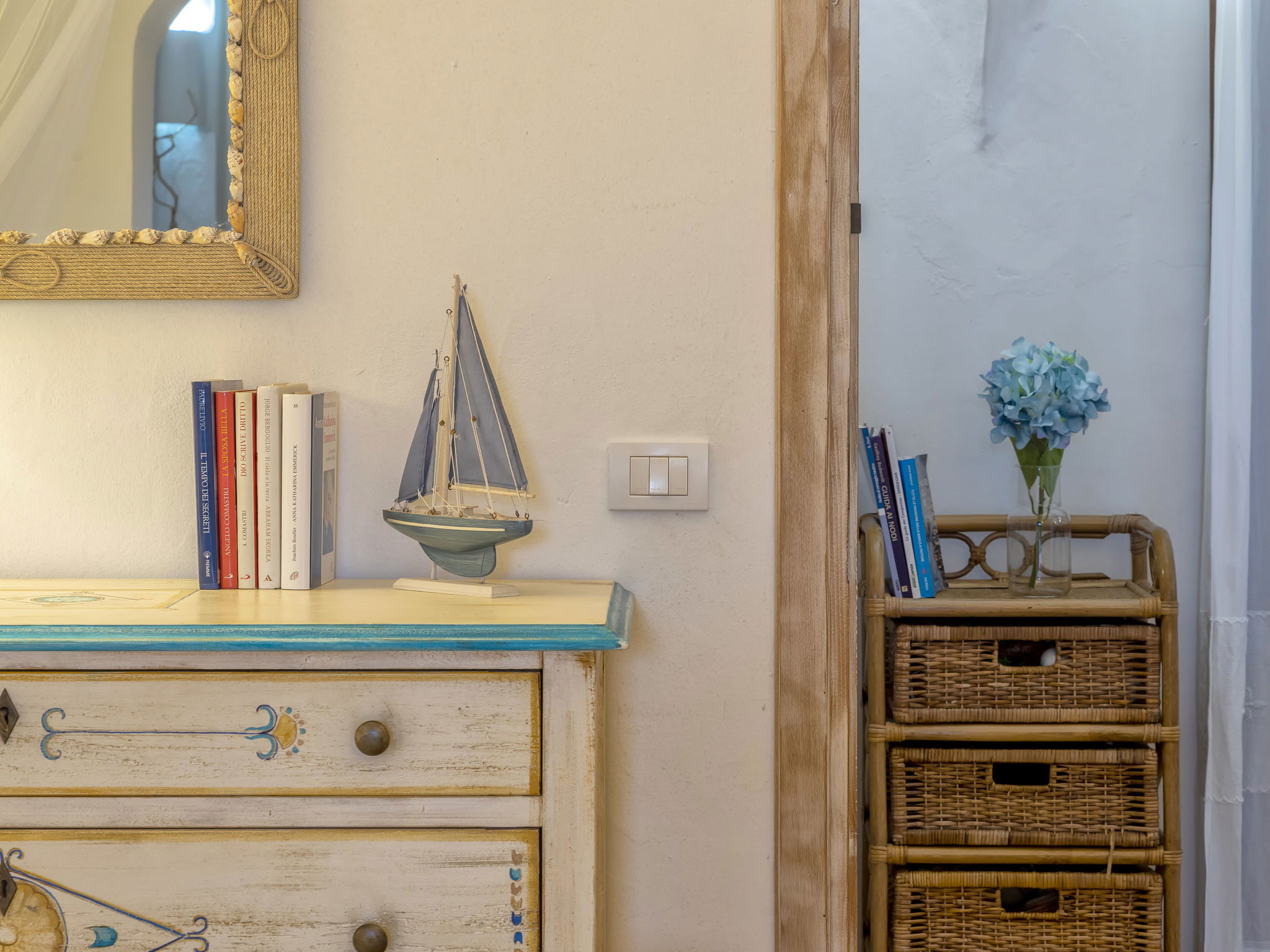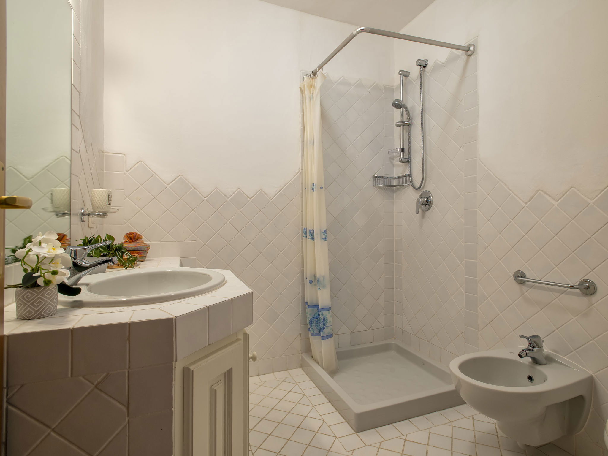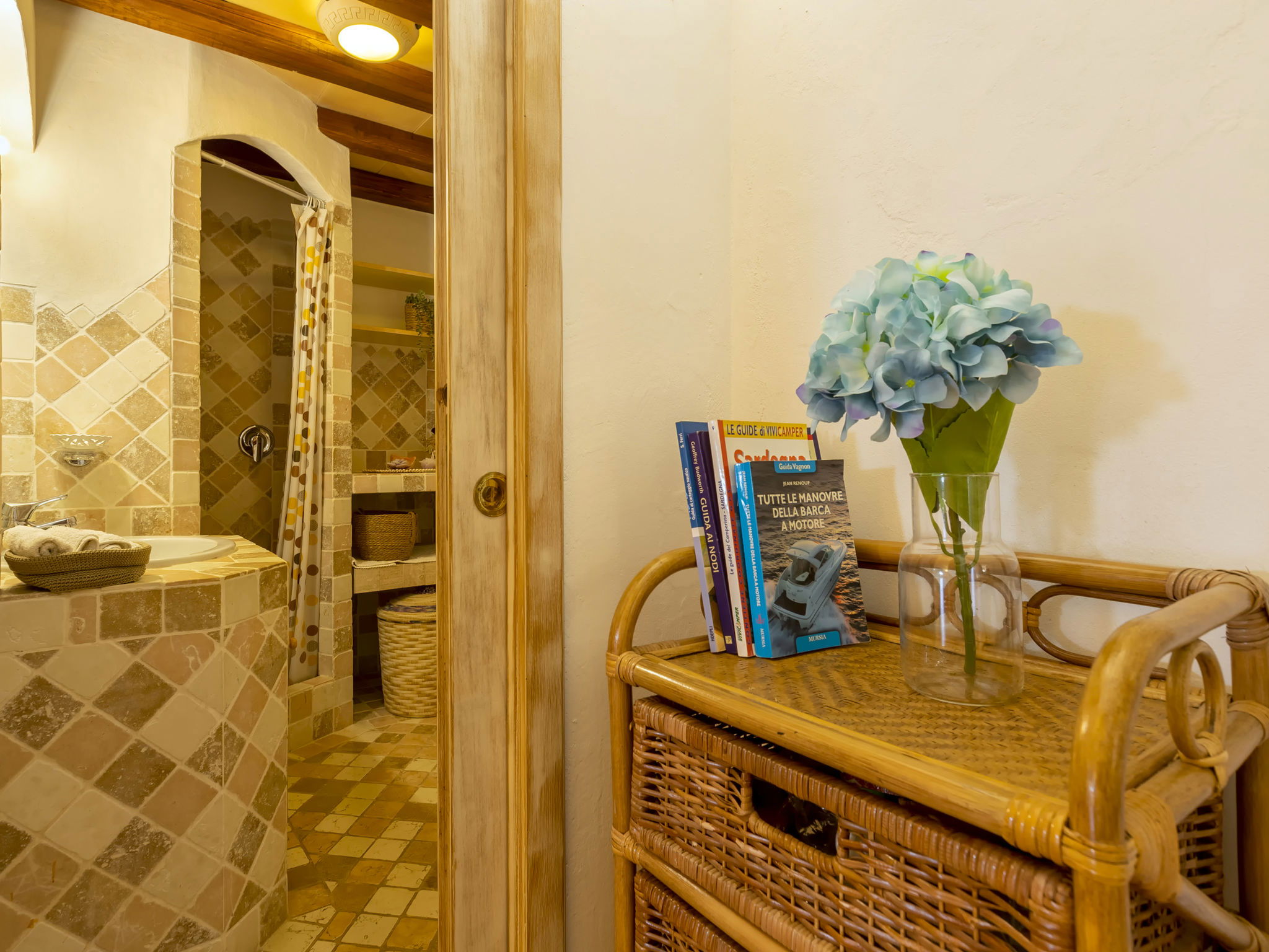 5-room villa 200 m2 on 3 levels. Stylish and cosy furnishings: living/dining room with panoramic window with Scandinavian wood stove (only for decoration), TV (flat screen). Exit to the garden, to the terrace. 1 double bedroom. Exit to the terrace. Open kitchen (4 hot plates, oven, dishwasher, toaster, kettle, microwave, electric coffee machine). Shower/bidet/WC. Air-conditioning, forced-air heating. On the lower ground floor: (exterior staircase), 1 double bedroom with 1 double sofabed, shower/bidet/WC and TV (flat screen). Upper floor: 1 room with 2 beds, shower/bidet/WC and TV (flat screen). Exit to the terrace. Large patio partly roofed. Terrace furniture, electric barbecue, deck chairs, sitting area. View of the sea and the valley. Facilities: washing machine, iron, mosquito net, hair dryer. Internet (WiFi, free). Maximum 1 pet/ dog allowed. In the Villa there are 3 working kitchens. IT090006C2000S2591