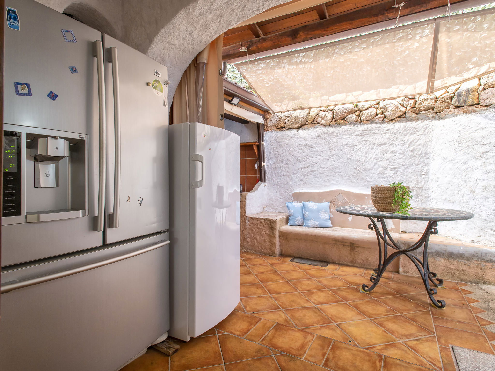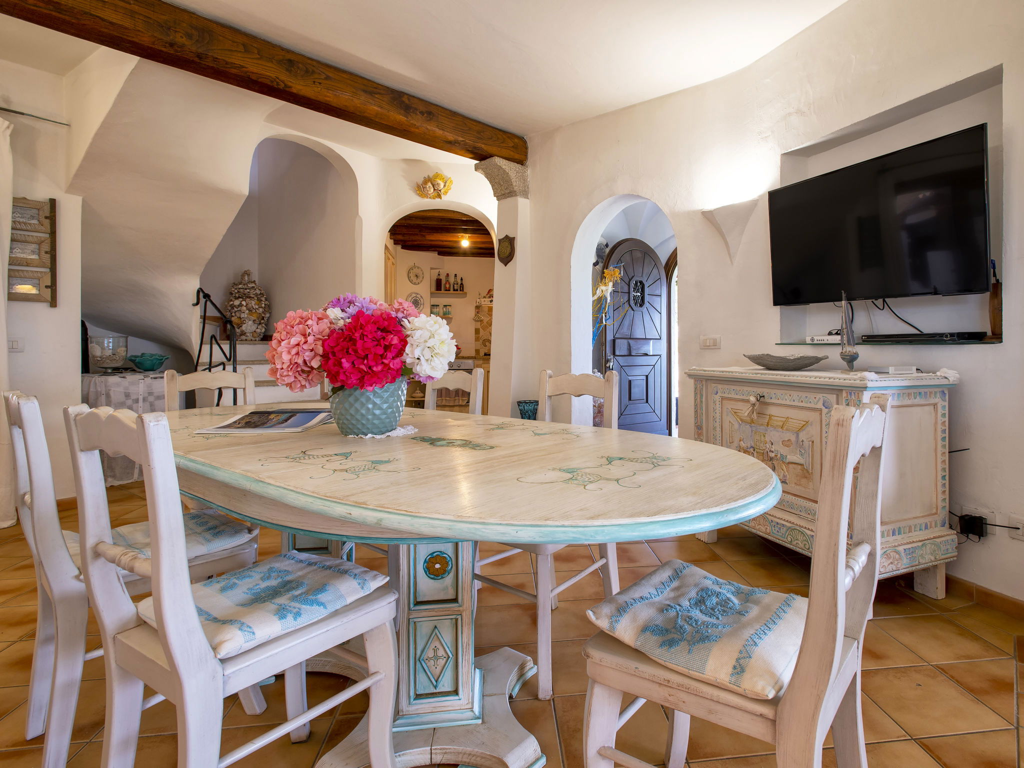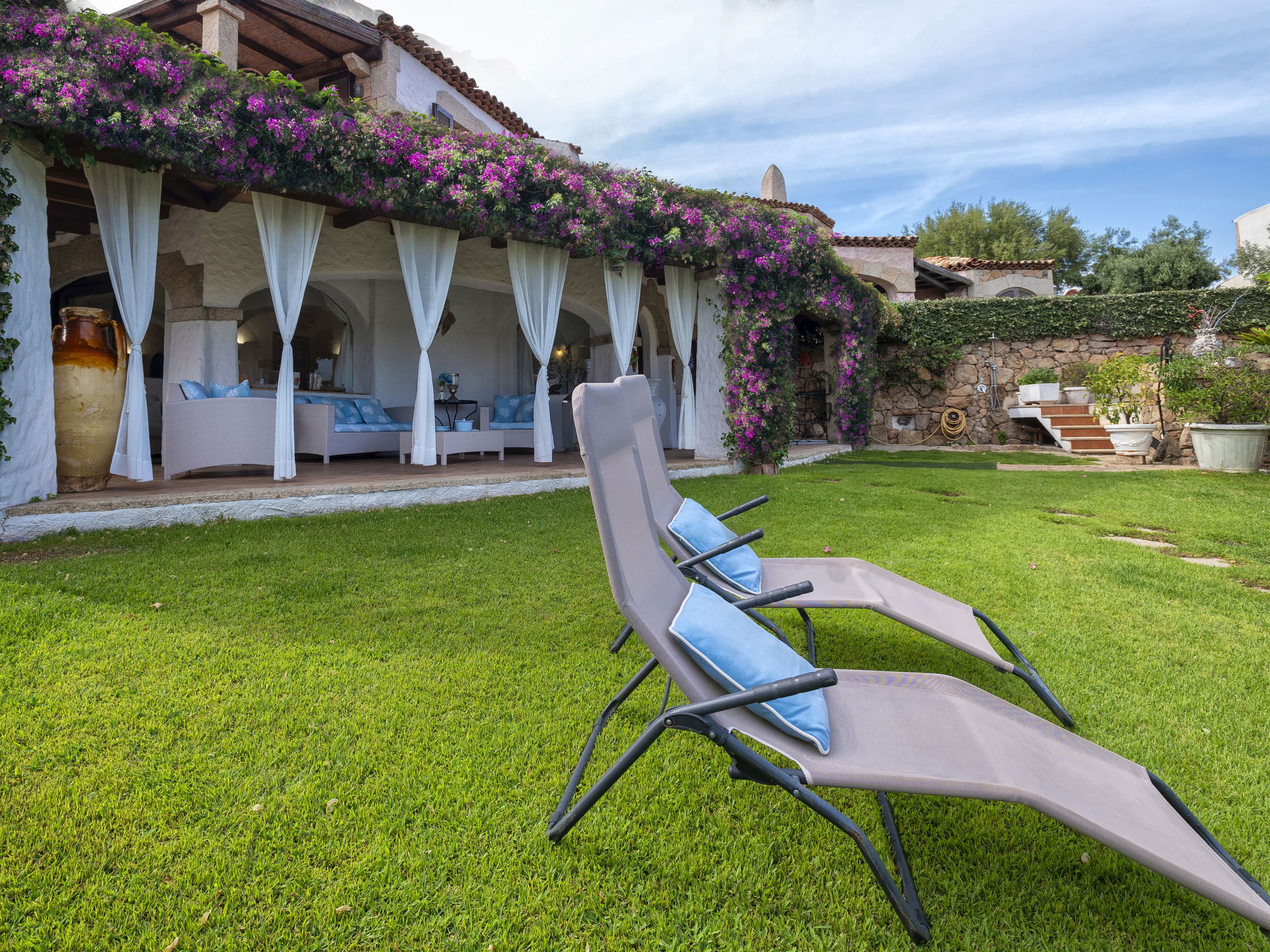 Cosy, comfortable villa "Smeralda", 3 storeys, detached. In the resort Laconia, 1.5 km from the centre of Cannigione, in a sunny position in the residential district, 350 m from the sea, 350 m from the beach. Private: garden (fenced) wildlife garden and flowers, lawn for sunbathing. Outdoor shower, roofed, parking (for 2 cars) on the premises. Supermarket 800 m, shopping centre, restaurant, bar 400 m, bus stop "Laconia Via Monticorru" 350 m, sandy beach 500 m. Sports harbour 350 m. Nearby attractions: Arzachena 10 km, Porto Cervo 16 km, Palau 15 km, Olbia 25 km, Baia Sardinia 15 km. Please note: car recommended.