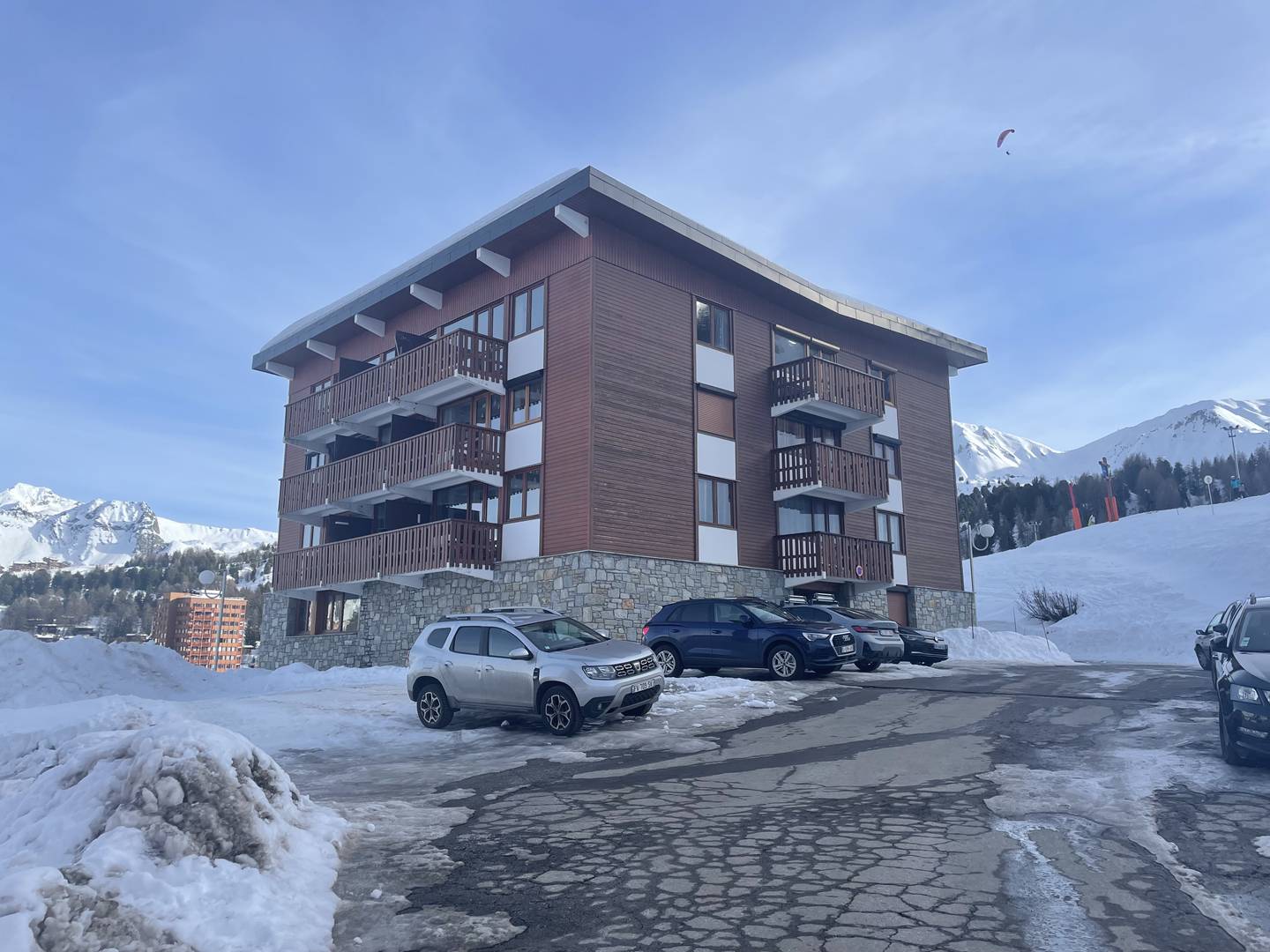 Small residence with 3 floor located in a quiet area. You have access to the slopes within 100 meters. The resort center is situated 600 meters away. Free carpark is available in front of the residence.