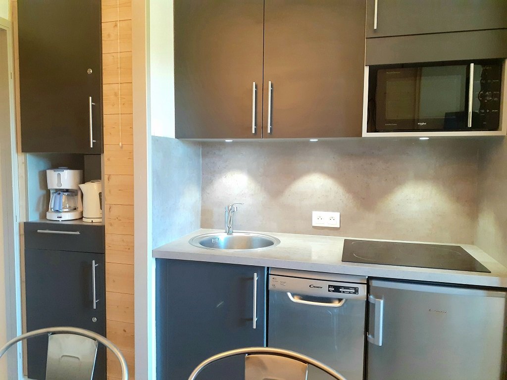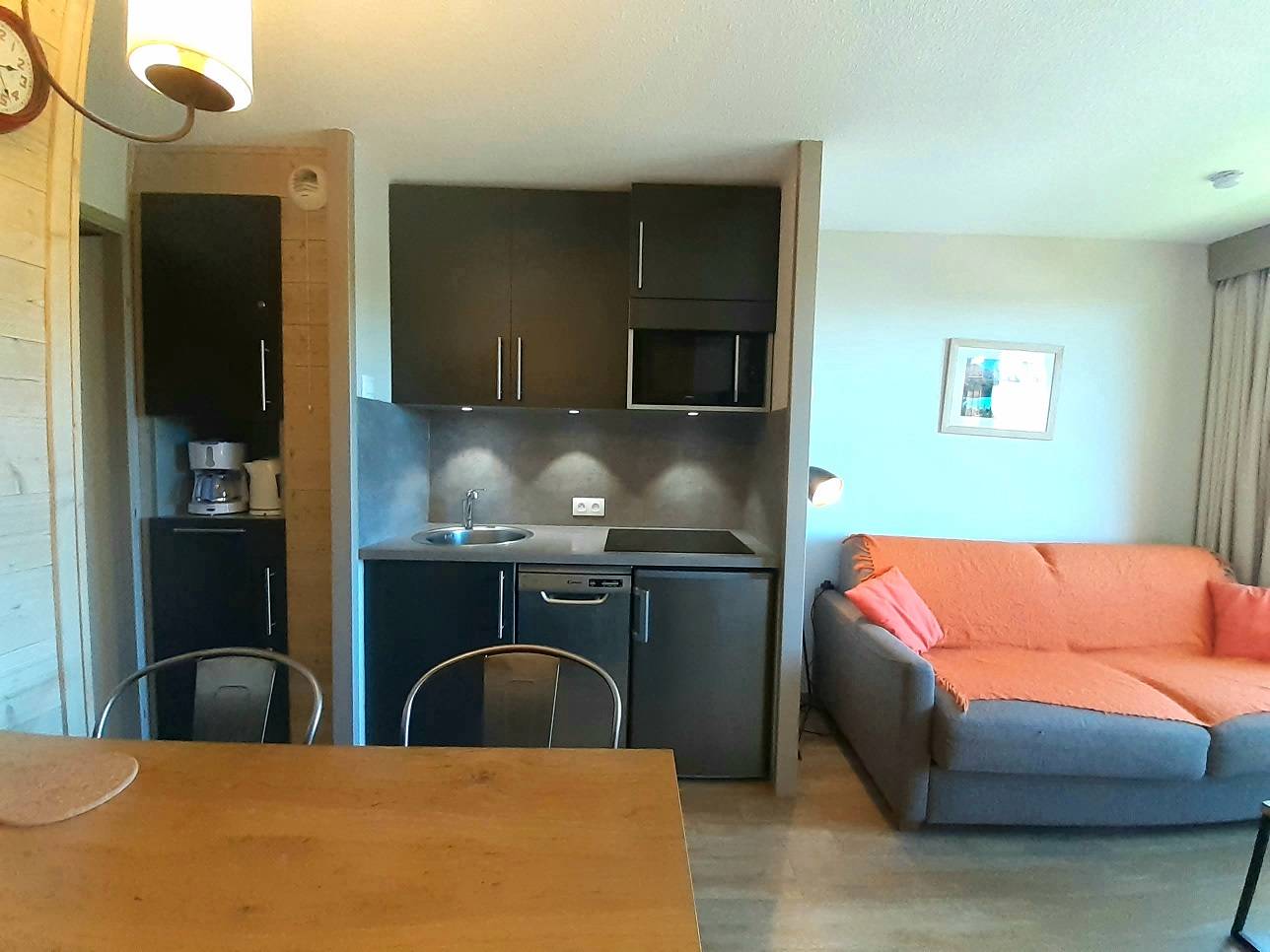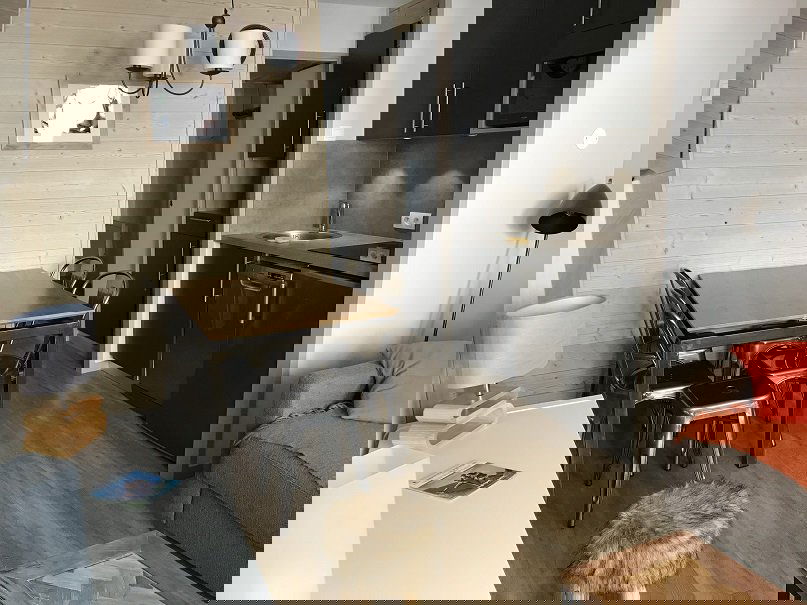The 23m² apartment, completely renovated in 2018, is located on the 4th floor with elevator with a clear view of the slopes.