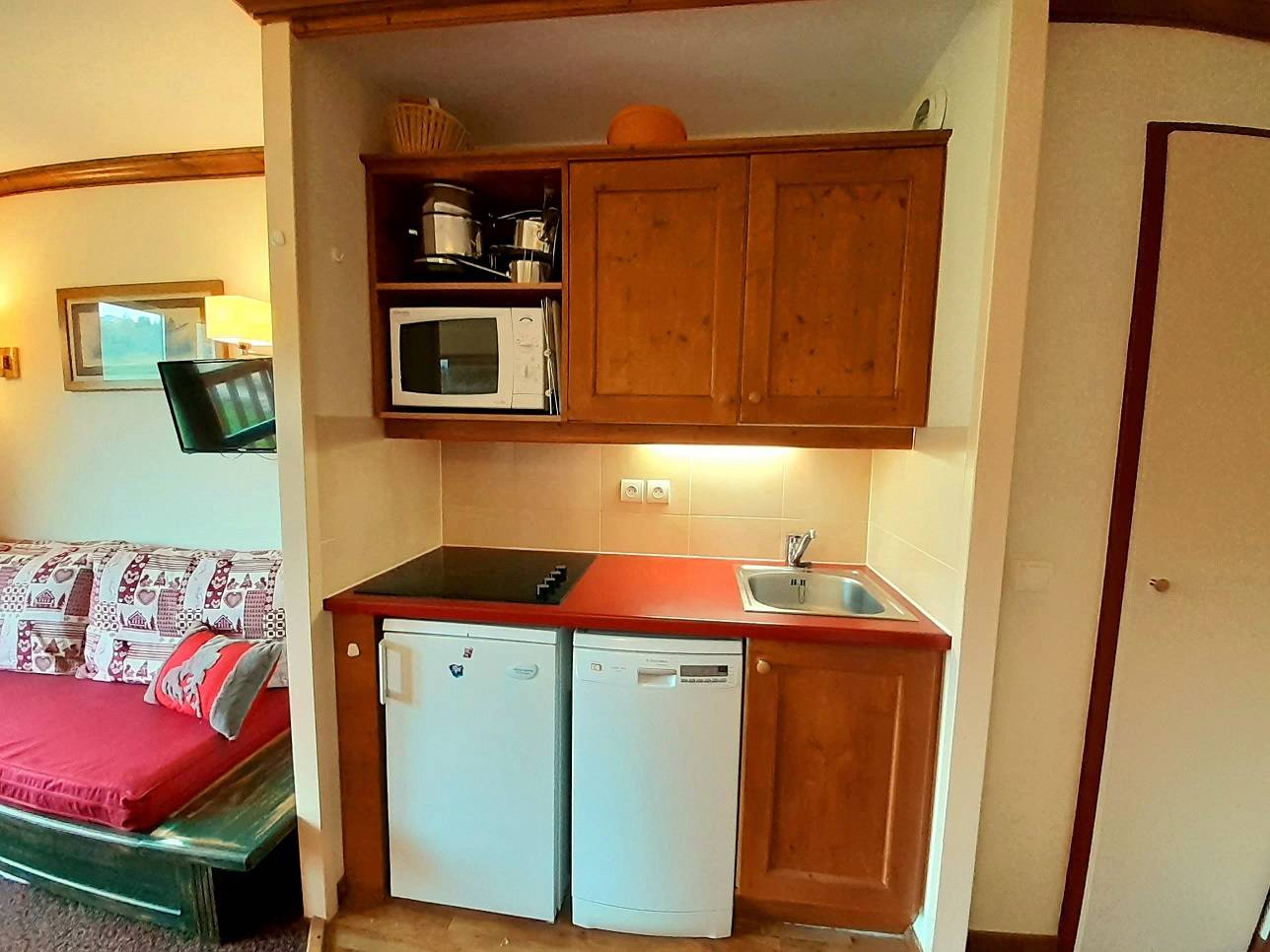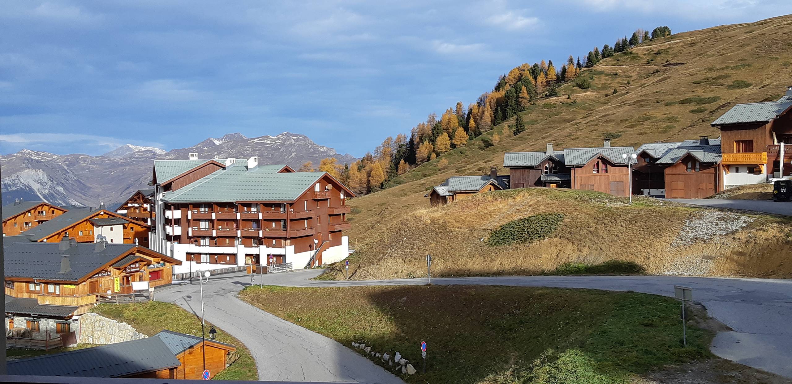 PLAGNE SOLEIL – Residence Mont Soleil B. 2 room apartment with a balcony, facing South, with a south view on the wide blue track that separates Plagne Soleil and Plagne Villages. The residence is located in a peaceful environment, inspired by traditional chalets with wooden facades. It is ski-in, ski-out and close to shops.