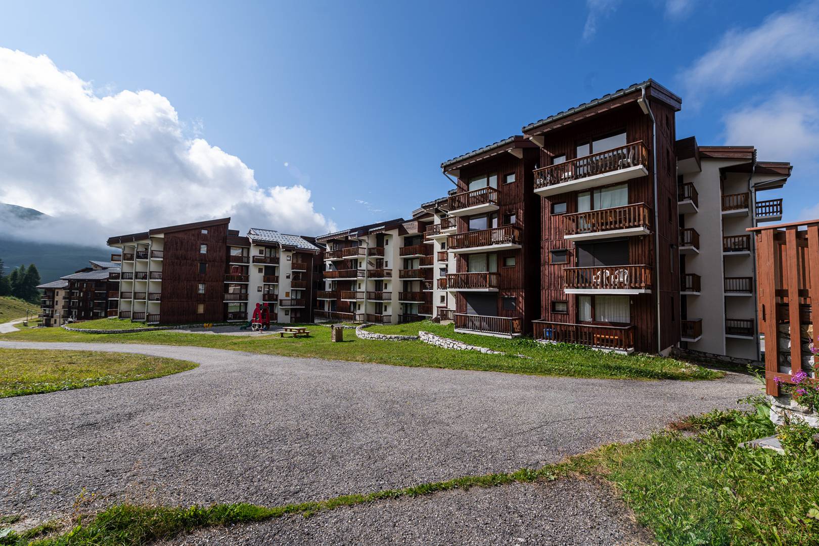 PLAGNE VILLAGES – Residence Hameaux 1. Duplex Apartment with balcony facing West. The residence is located in the centre of the resort, very close to the slopes, the ski school and shops.