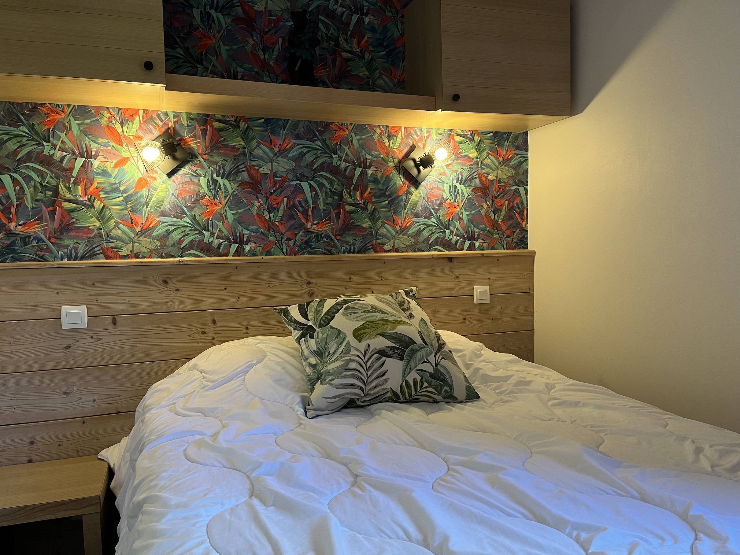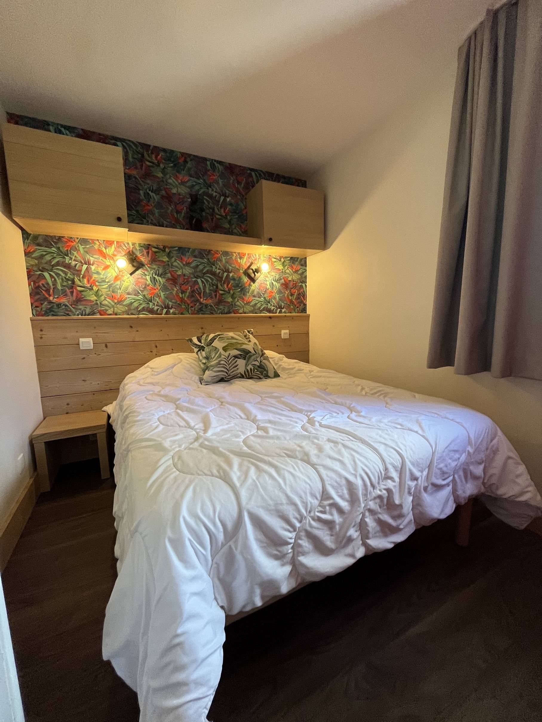 The bedroom has a 140 cm double bed.
