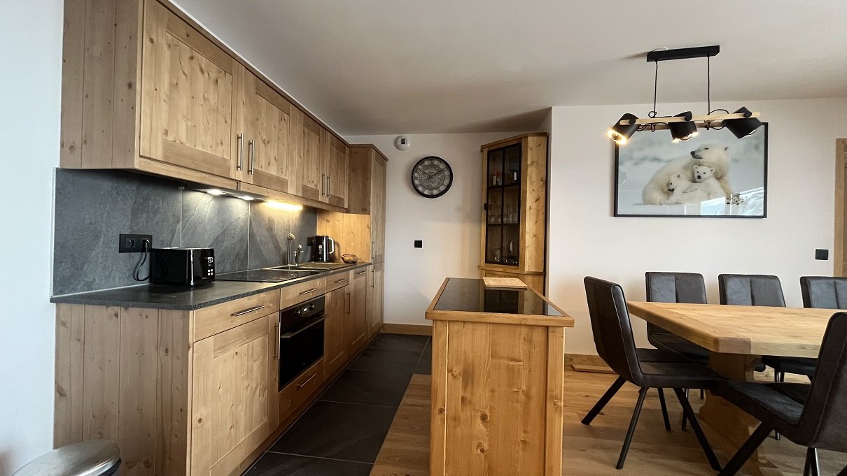 - A spacious and comfortable living room, equipped with two sofas and television with a balcony overlooking the slope and Mont Blanc!