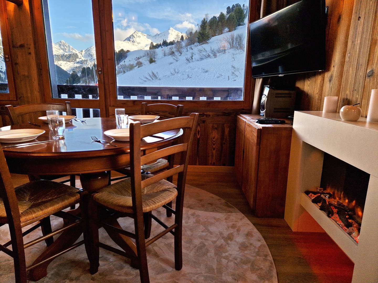Living room with two sofa beds (90×200), electric fireplace, television, and Hi-Fi system (CD, cassette, radio, Bluetooth).Bedroom with a double bed (160×200) and television. Fully equipped kitchen with induction cooktop, combination microwave oven, dishwasher, fridge-freezer, kettle, coffee maker, and toaster. Bathroom and separate WC. South-facing balcony. Ski locker in the residence. Apartment located on the 2nd floor (no elevator). Non-smoking apartment. Private fibre Wi-Fi included.