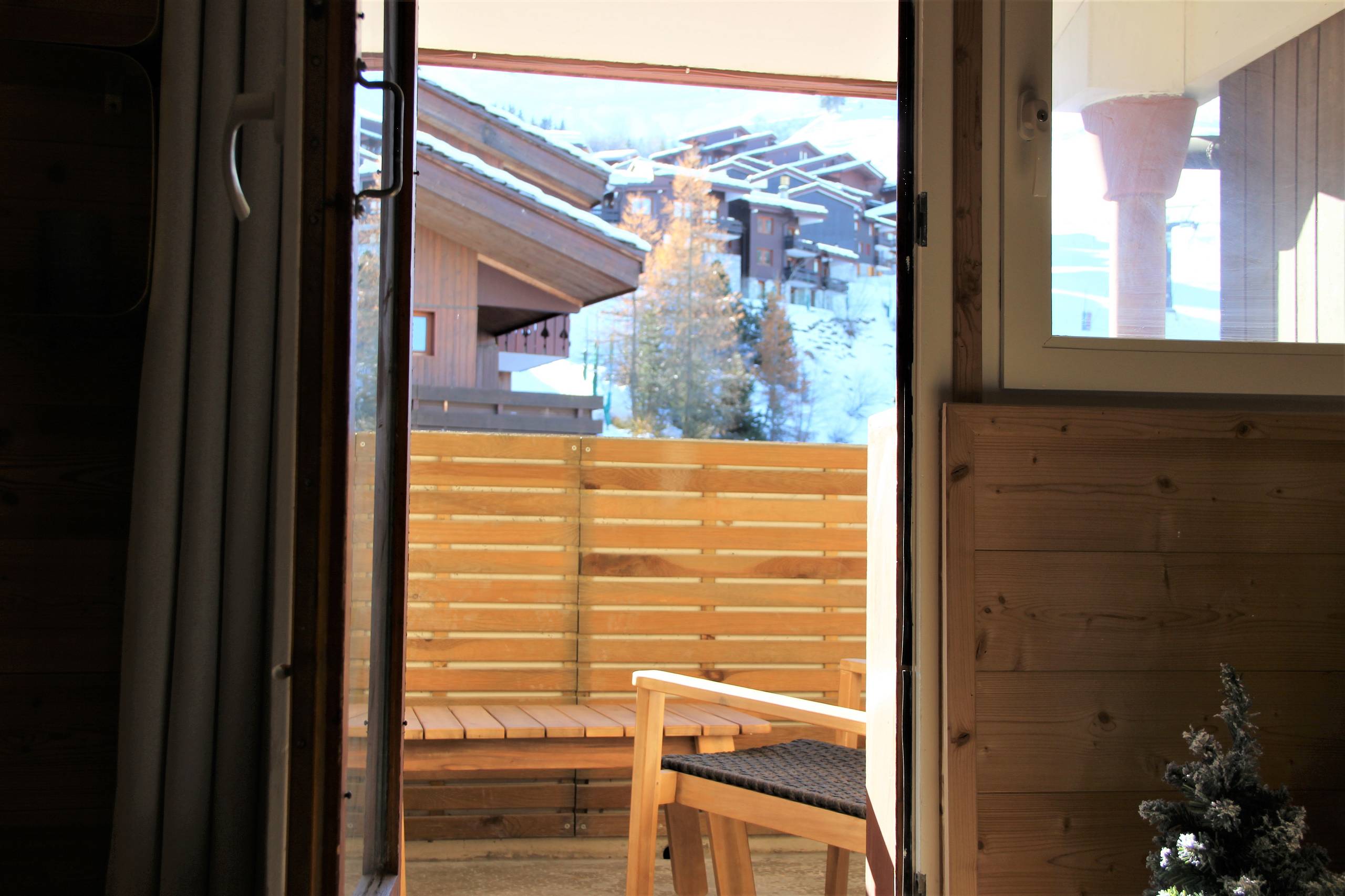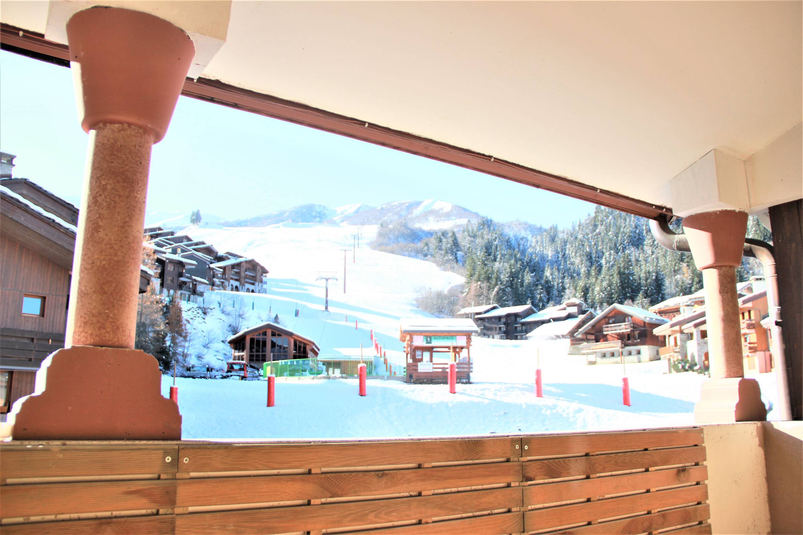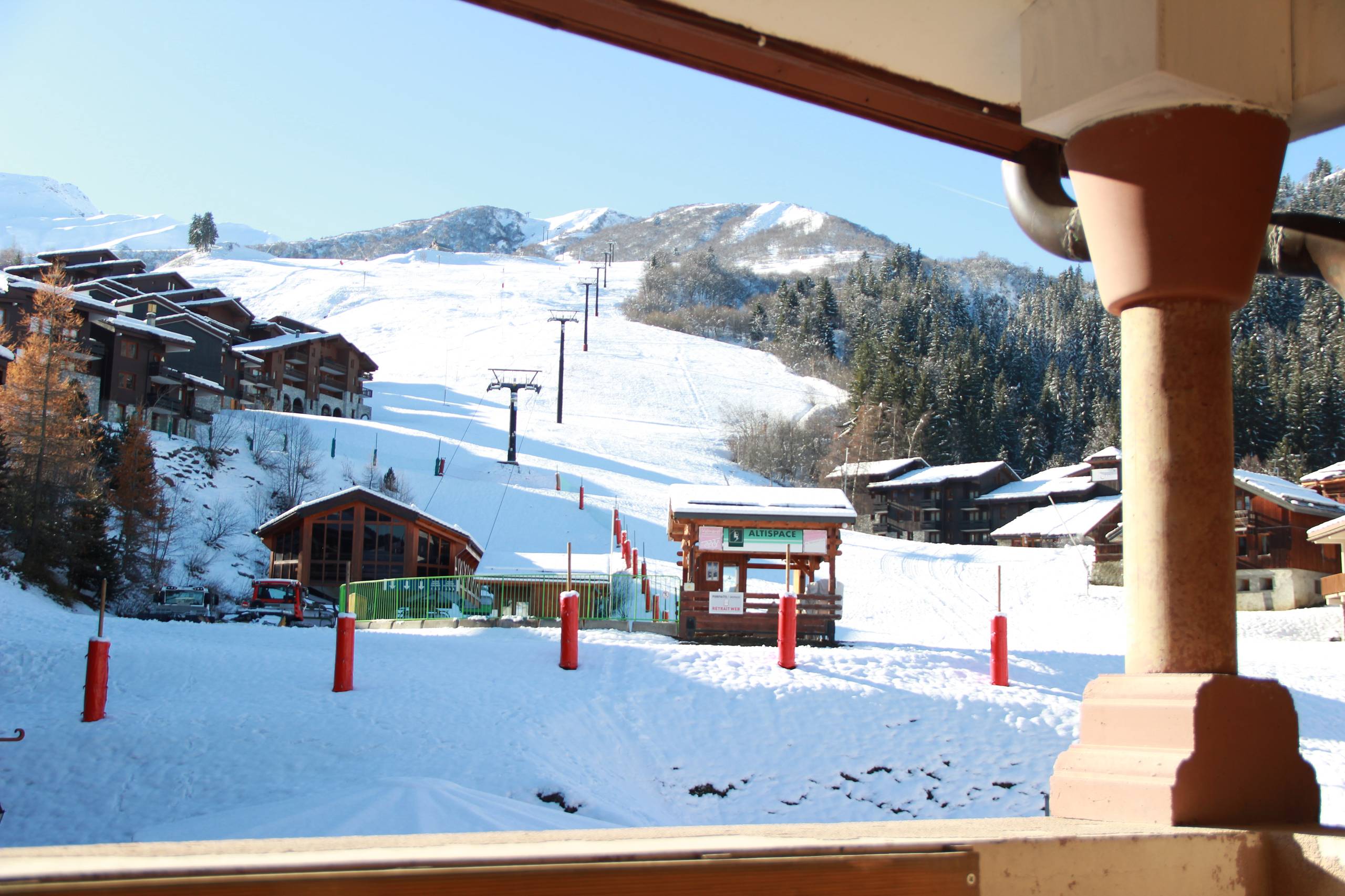 - South-facing balcony with views of the slopes, equipped with table and chairs. Departure point for the Planchamp cable car.