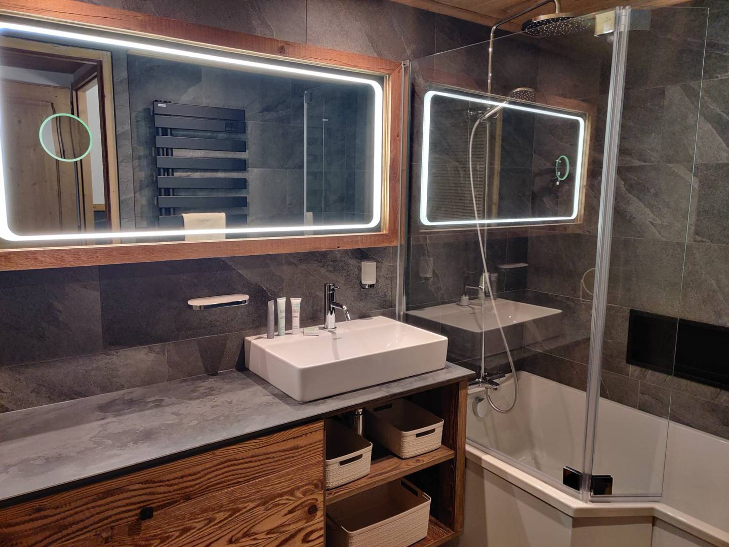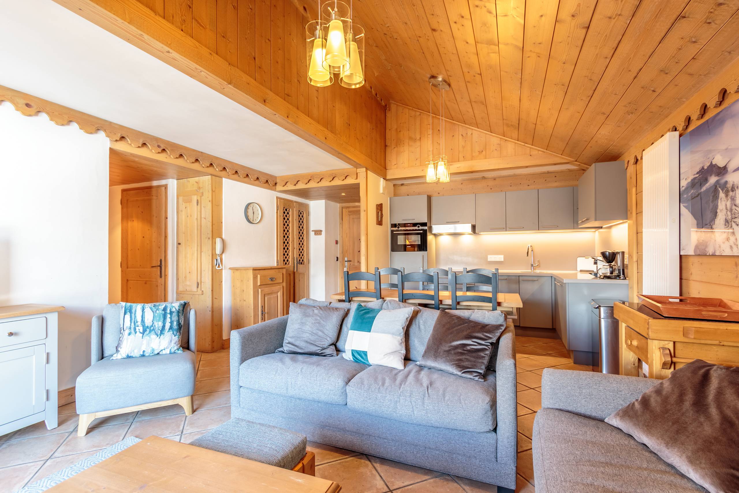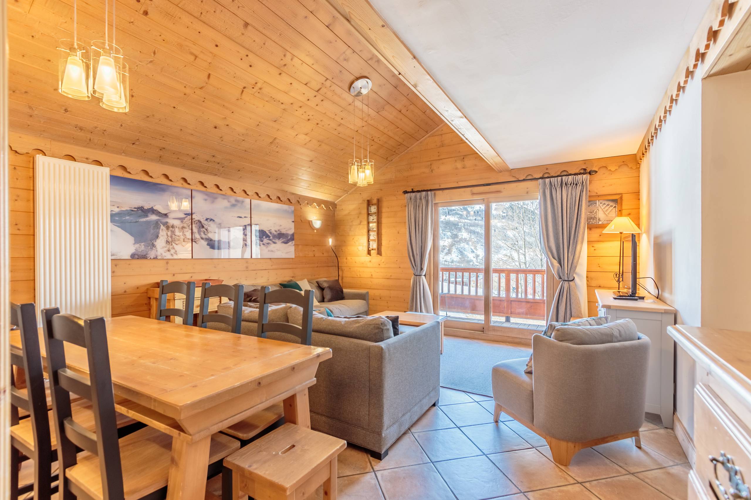 Residence-chalet with SWIMMING POOL and SPA! SKI IN SKI OUT! A high level of comfort in our fully equipped 77 sqm apartment for 8 guests with an outstanding panoramic view of the Belleville valley. South West facing. Included services: sheets and towels, final cleaning, a parking space. WIFI + free access to wellness area with heated indoor swimming pool, sauna, hammam, jacuzzi, fitness room and treatments (on reservation and at an additional cost).