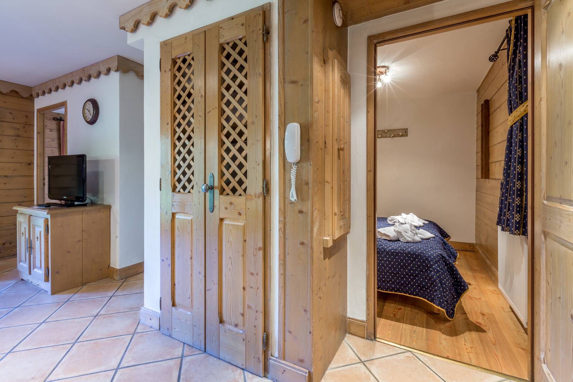 - Bedroom 1: double bed (160 x 190 cm). Access to the balcony. View on the slopes