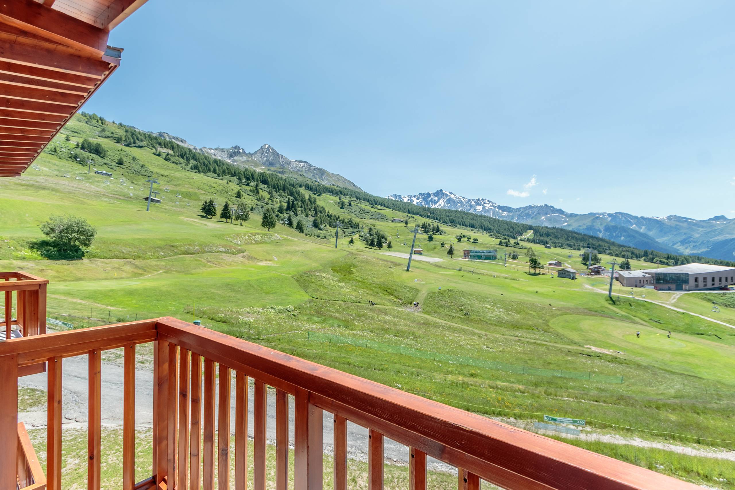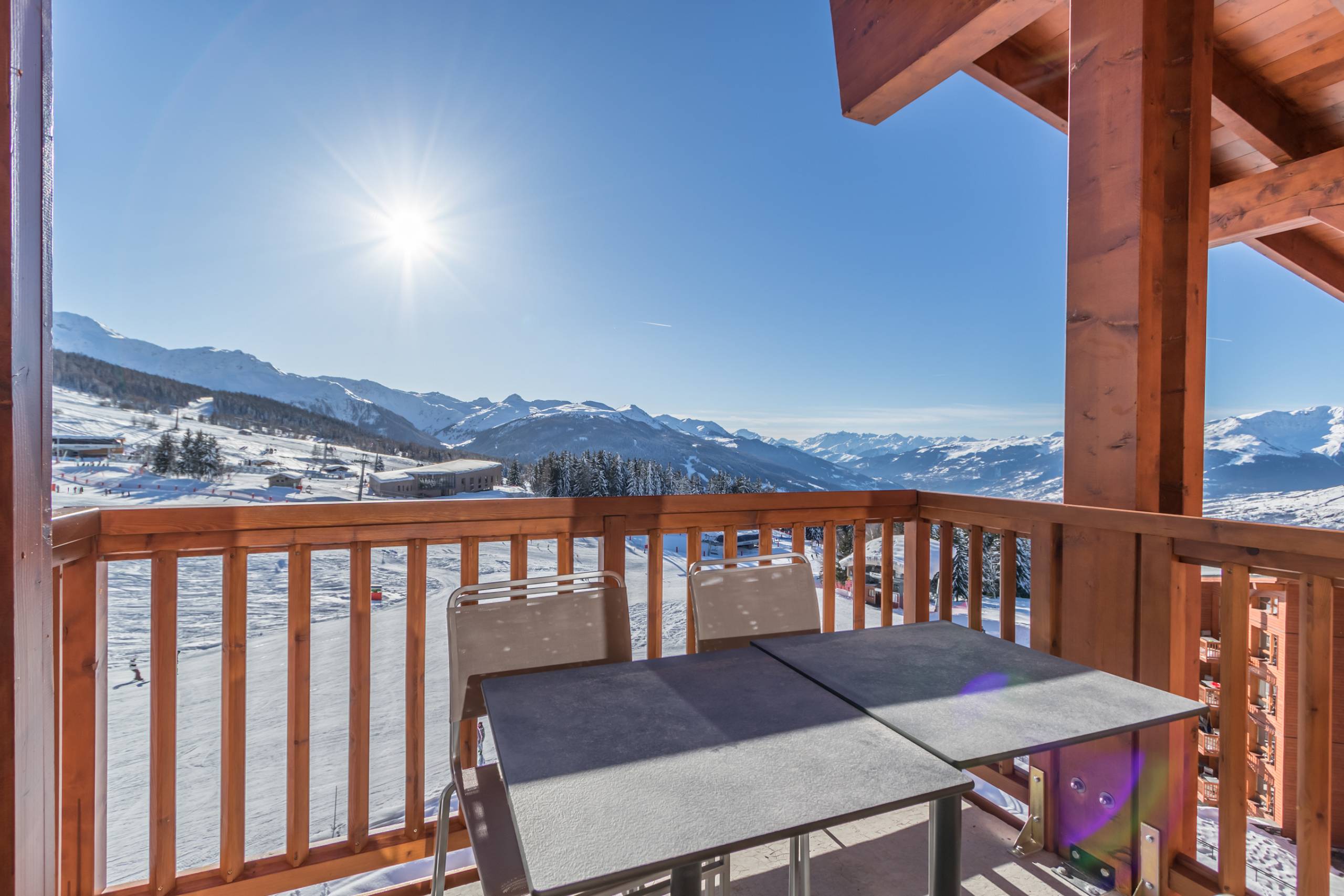 ARCS 1800 - 4* premium Residence : LES MONARQUES, cosy and modern atmosphere for this 5-room duplex flat, 107m2, with a balcony offering a magnificent view of the Tarentaise valley. Facing South-West. Services included : swimming pool, spa and fitness room on the exceptional site of Edenarc at Le Chantel in Arc 1800, in the heart of the Paradiski ski area. Luxury residence with hotel services, ski in ski out in winter and next to the golf course in summer.