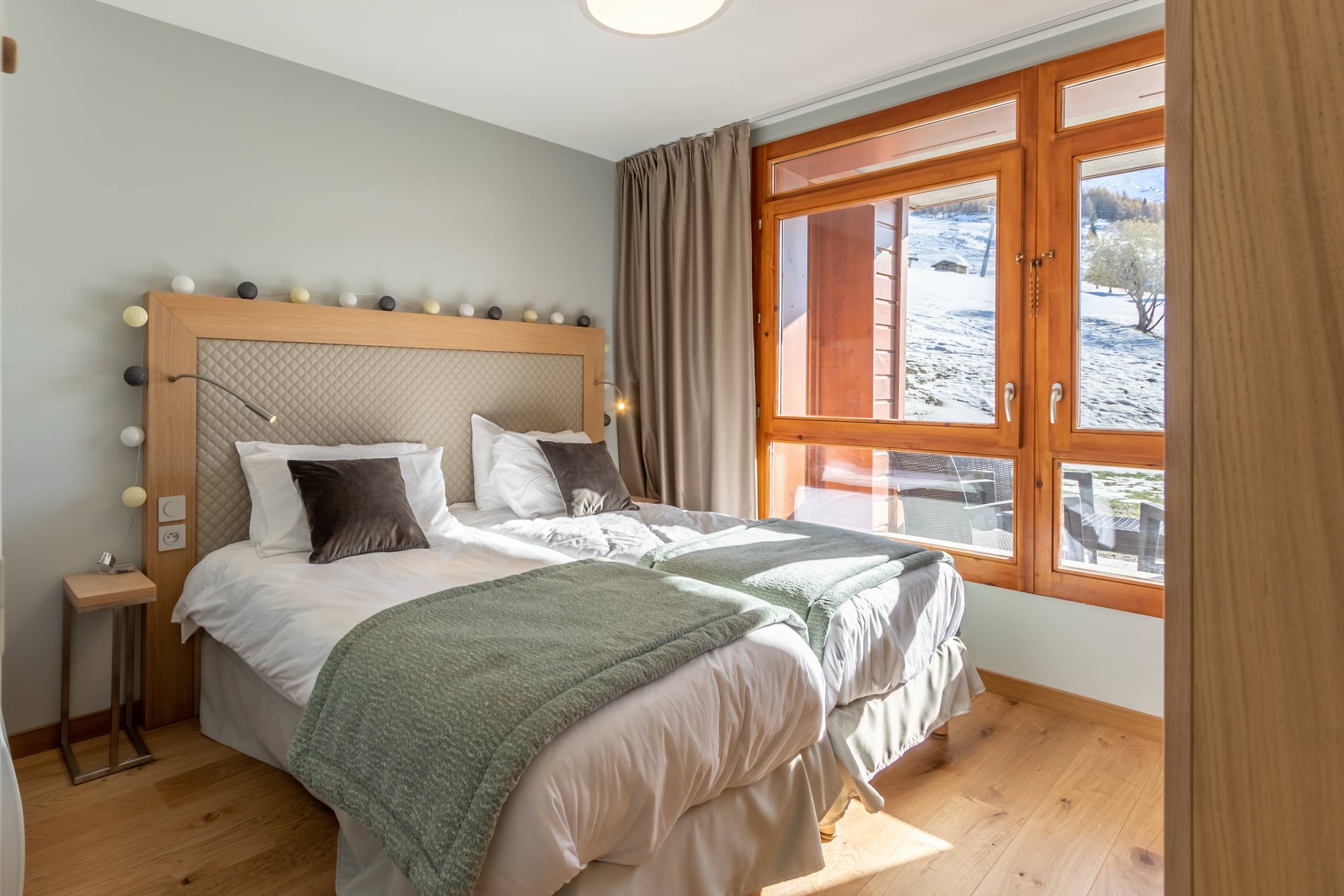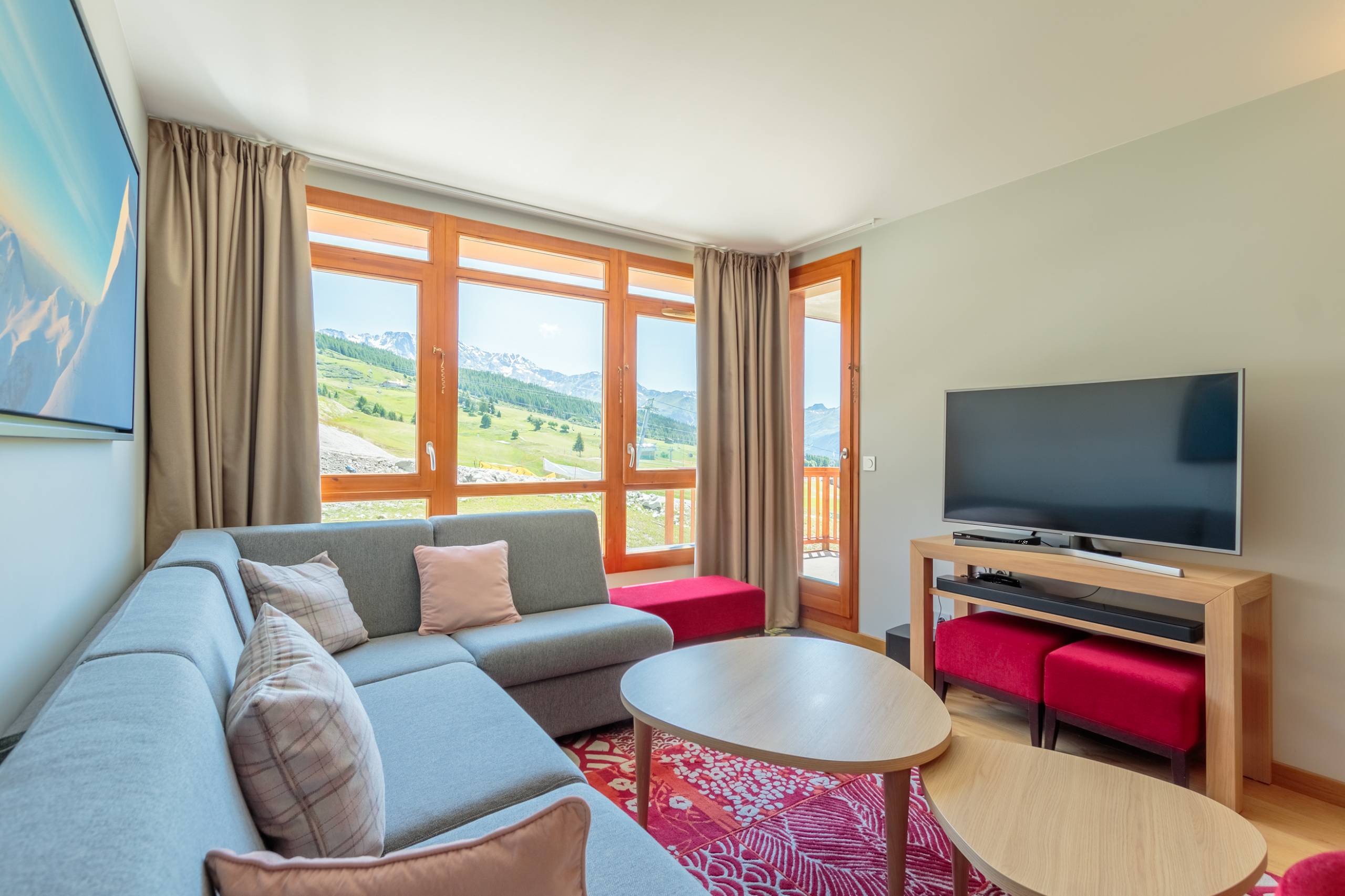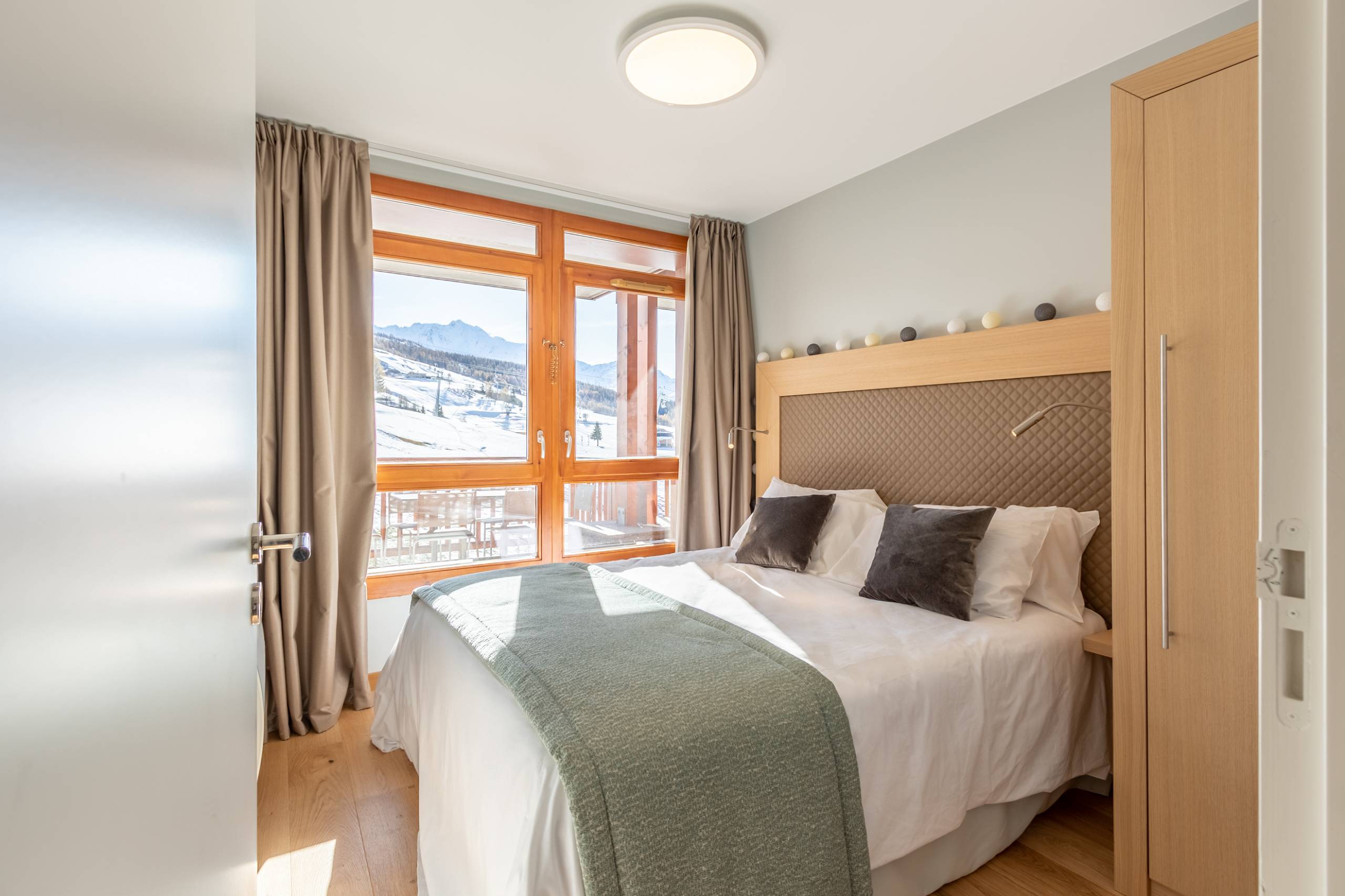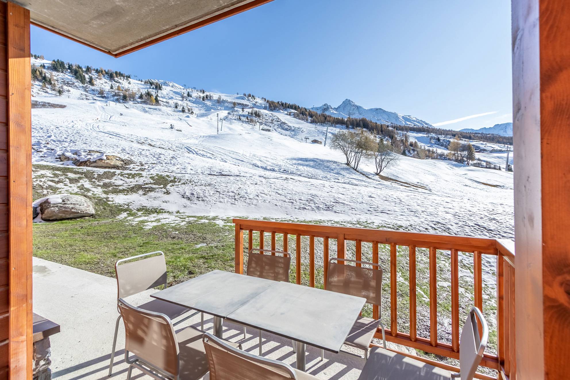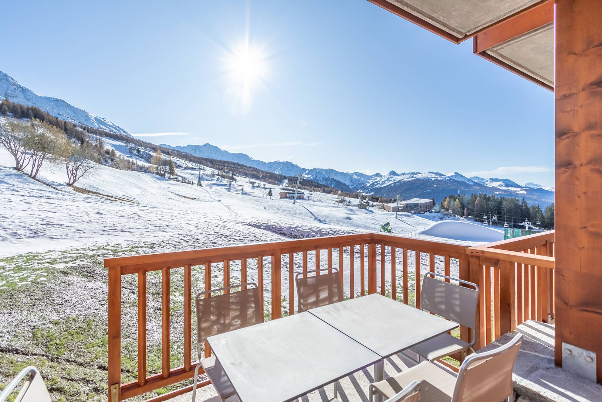 ARCS 1800 - 4* premium Residence : LES MONARQUES, cosy and modern atmosphere for this 78m2 4-room flat with a balcony and a terrace offering a magnificent view of the Tarentaise valley. Facing South-West. Services included : swimming pool, spa and fitness room on the exceptional site of Edenarc at Le Chantel in Arc 1800, in the heart of the Paradiski ski area. Luxury residence with hotel services, ski in ski out in winter and next to the golf course in summer.
