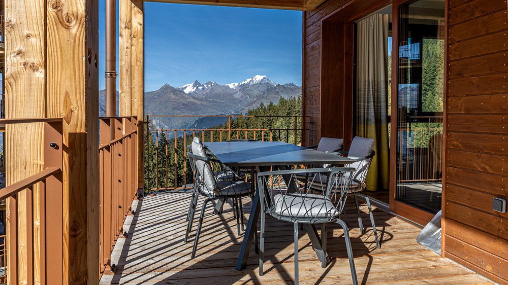 Facing South-South West, offering an exceptional panorama over Les Arcs, Mont Blanc and the Tarentaise valley.