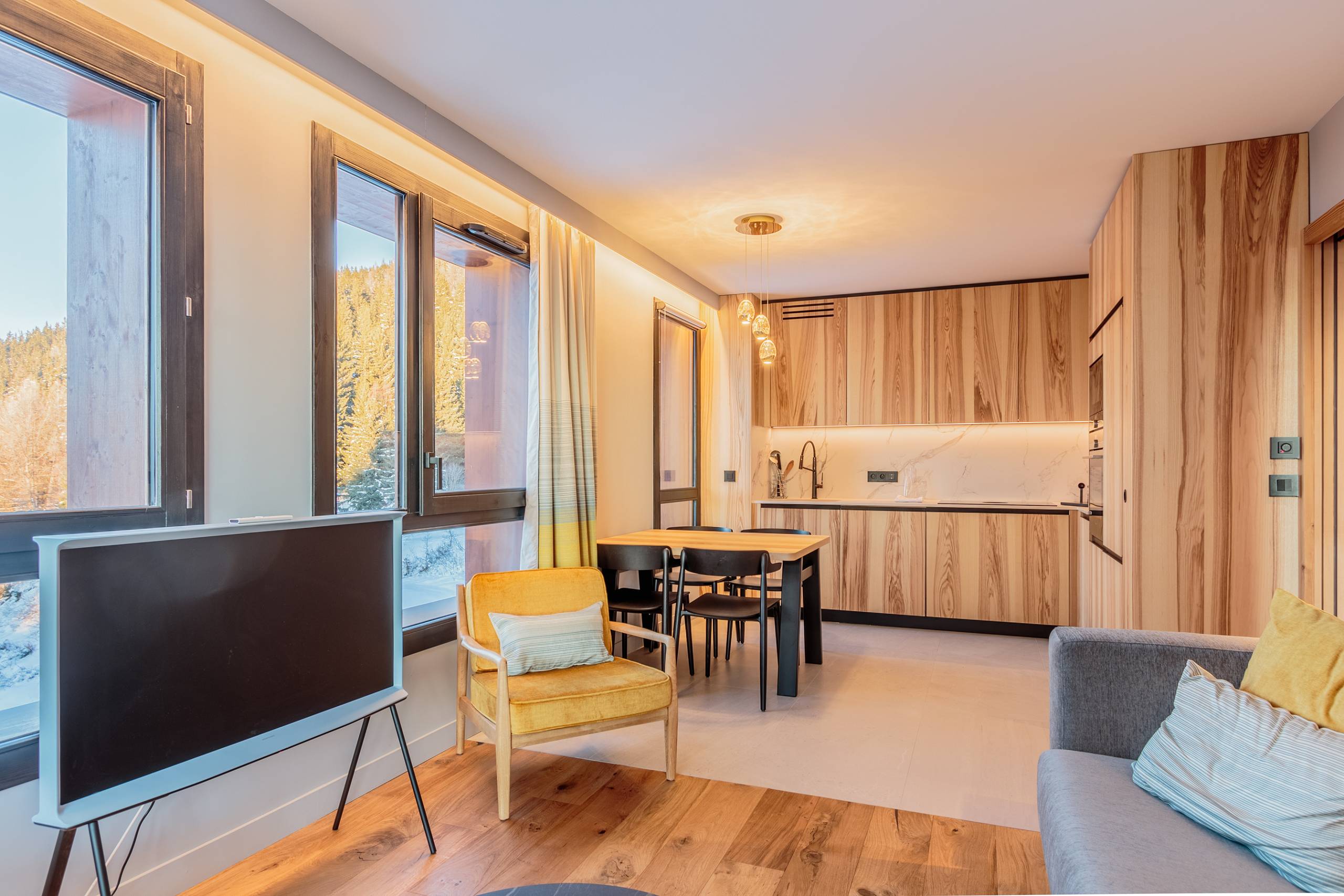 - Additional Equipment: Wifi, access to the residence’s laundry room, parking space with electrical outlet (max height 2.10 m), ski locker with boot dryer