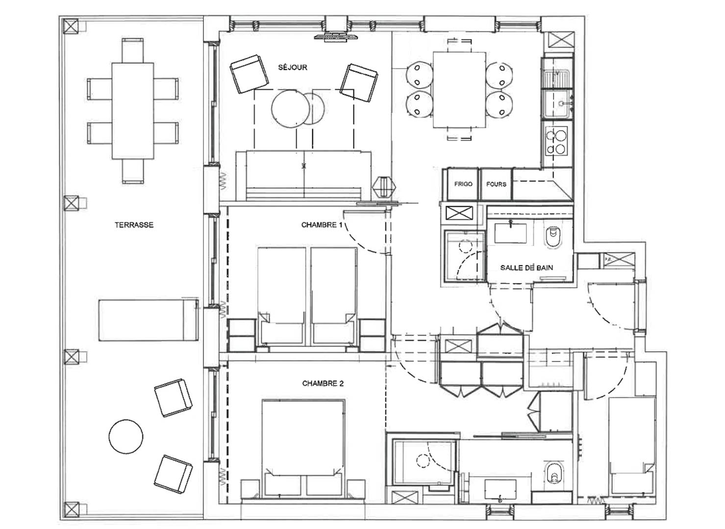 - Bedroom 2 with 2 single beds (90x190) with terrace access
