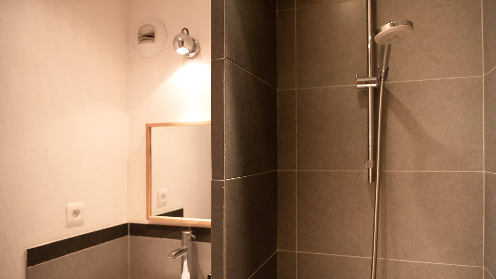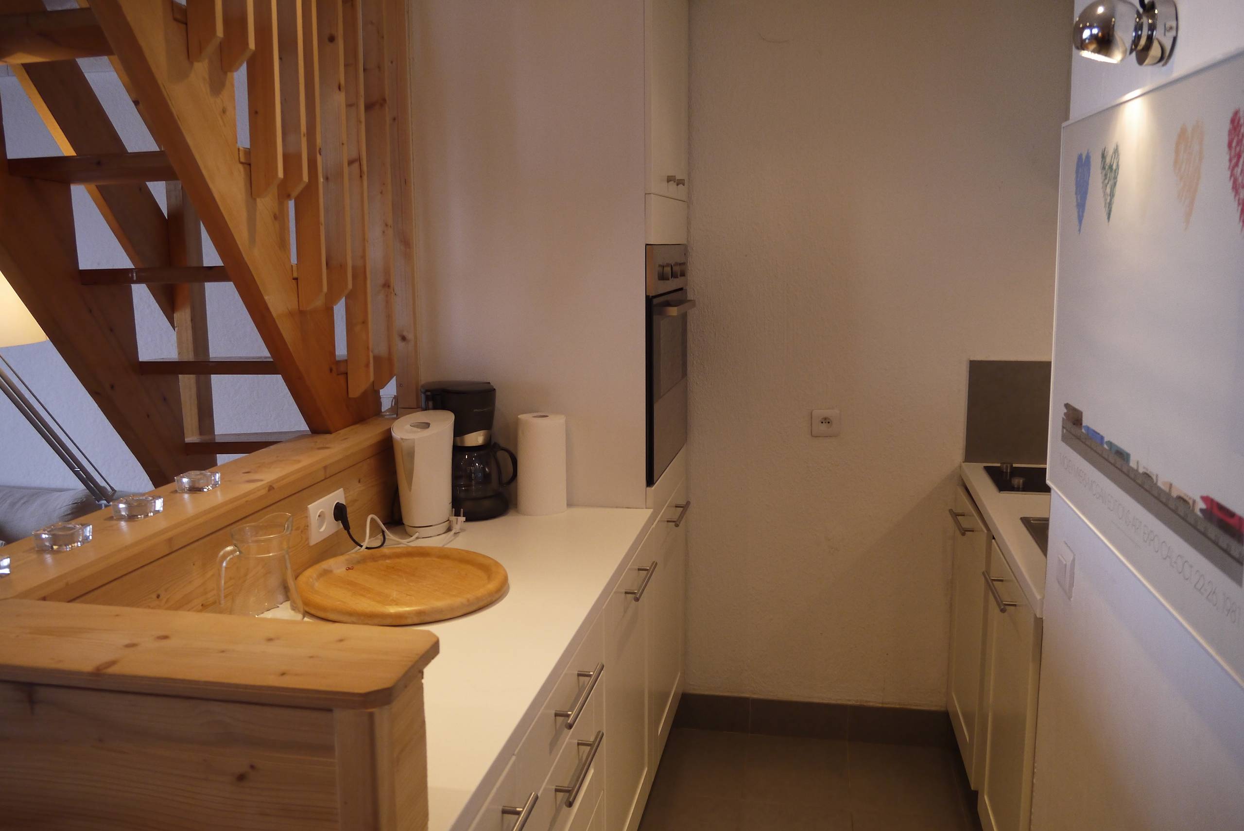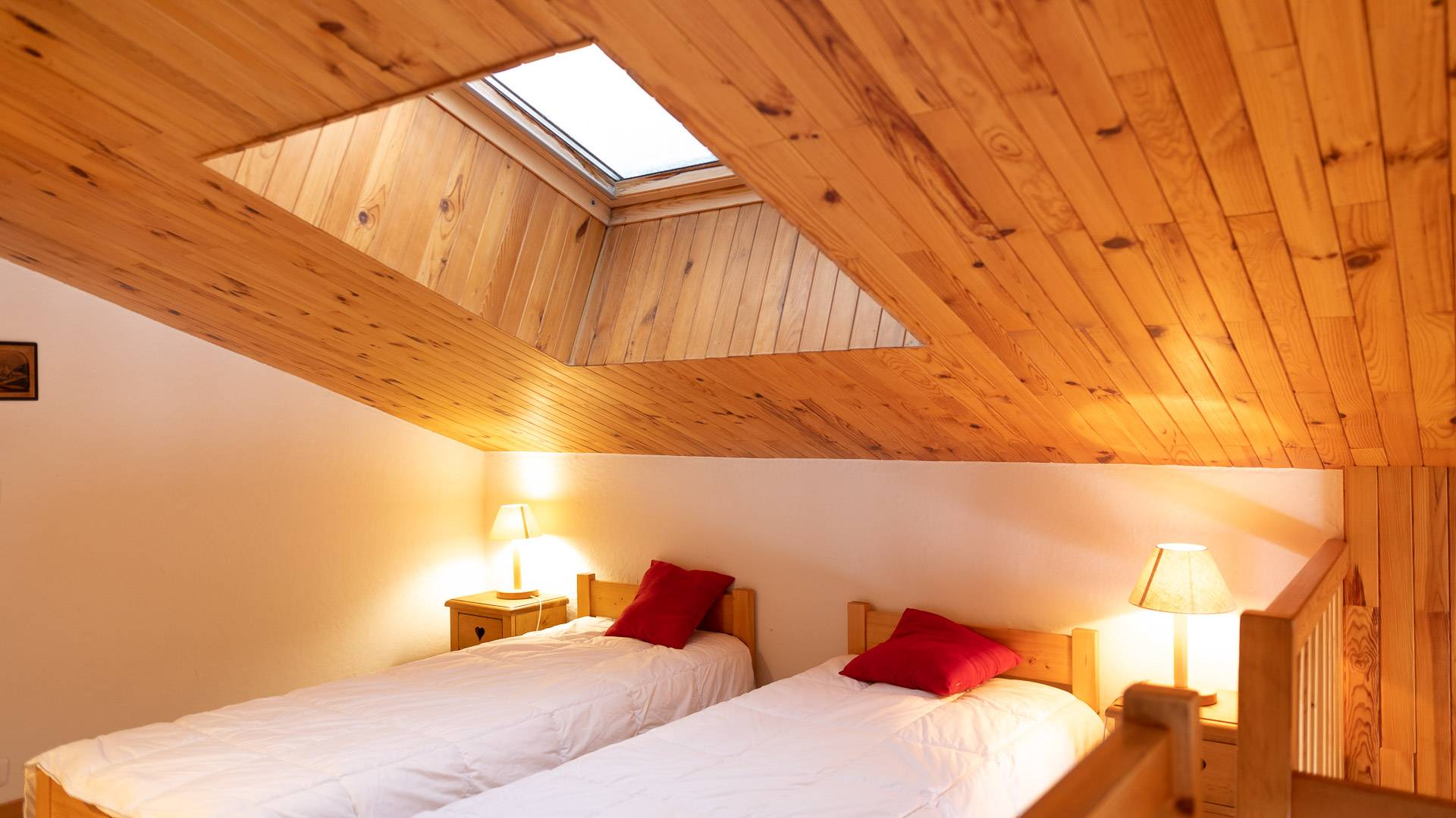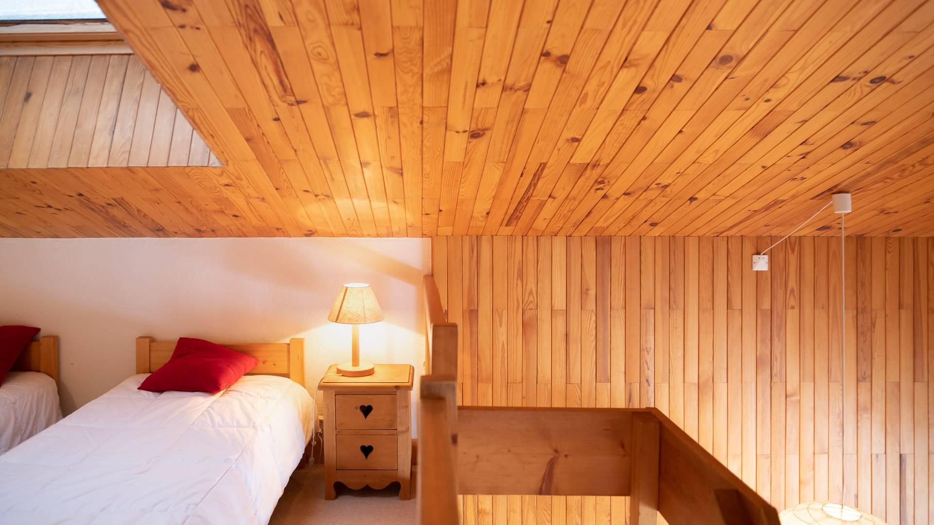 Bedroom with double bed (140x190). Kitchen equipped with ceramic hob, oven, dishwasher, refrigerator, kettle, toaster, coffee maker. Bathroom and separate WC. Upstairs, two single beds (80x190) on the mezzanine. Attic room containing two single beds and a trundle bed (80x190). Shower room with toilet. Ski locker in the residence. Non-smoking apartment. Pets forbidden.