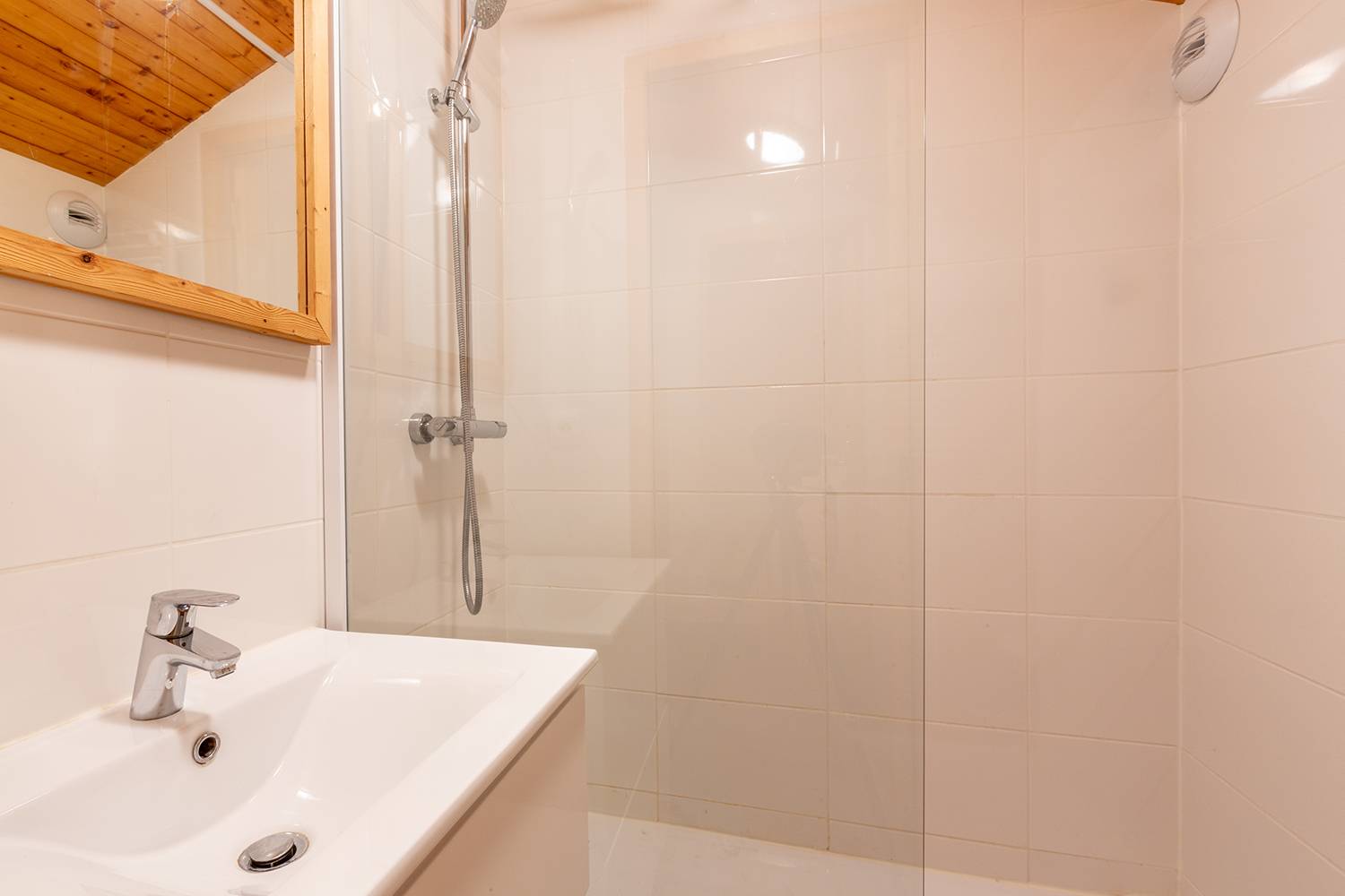 A shower with toilet. Balcony. Ski locker and a lift in the residence.