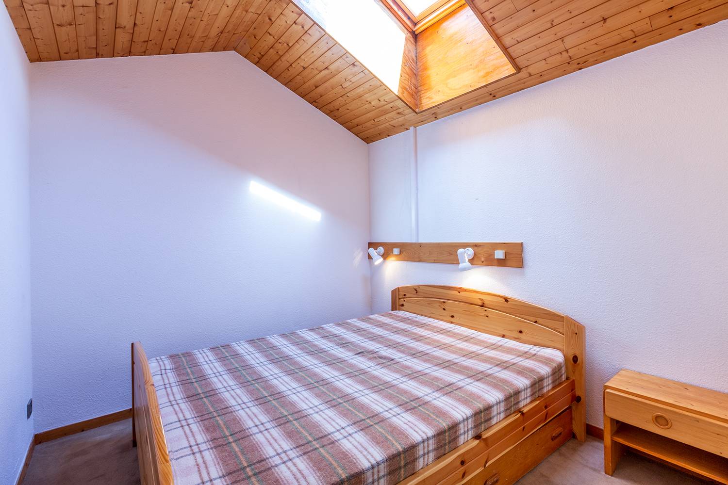 The kitchen is renovated and fully equipped (ceramic hobs, oven, microwave, dishwasher, kettle, toaster, coffee maker, and refrigerator). On the mezzanine, there are two attic bedrooms, one with three single beds (80x190) and one with a double bed (140x190).