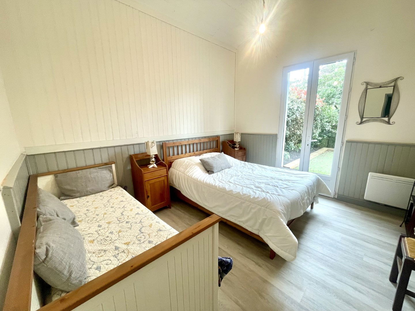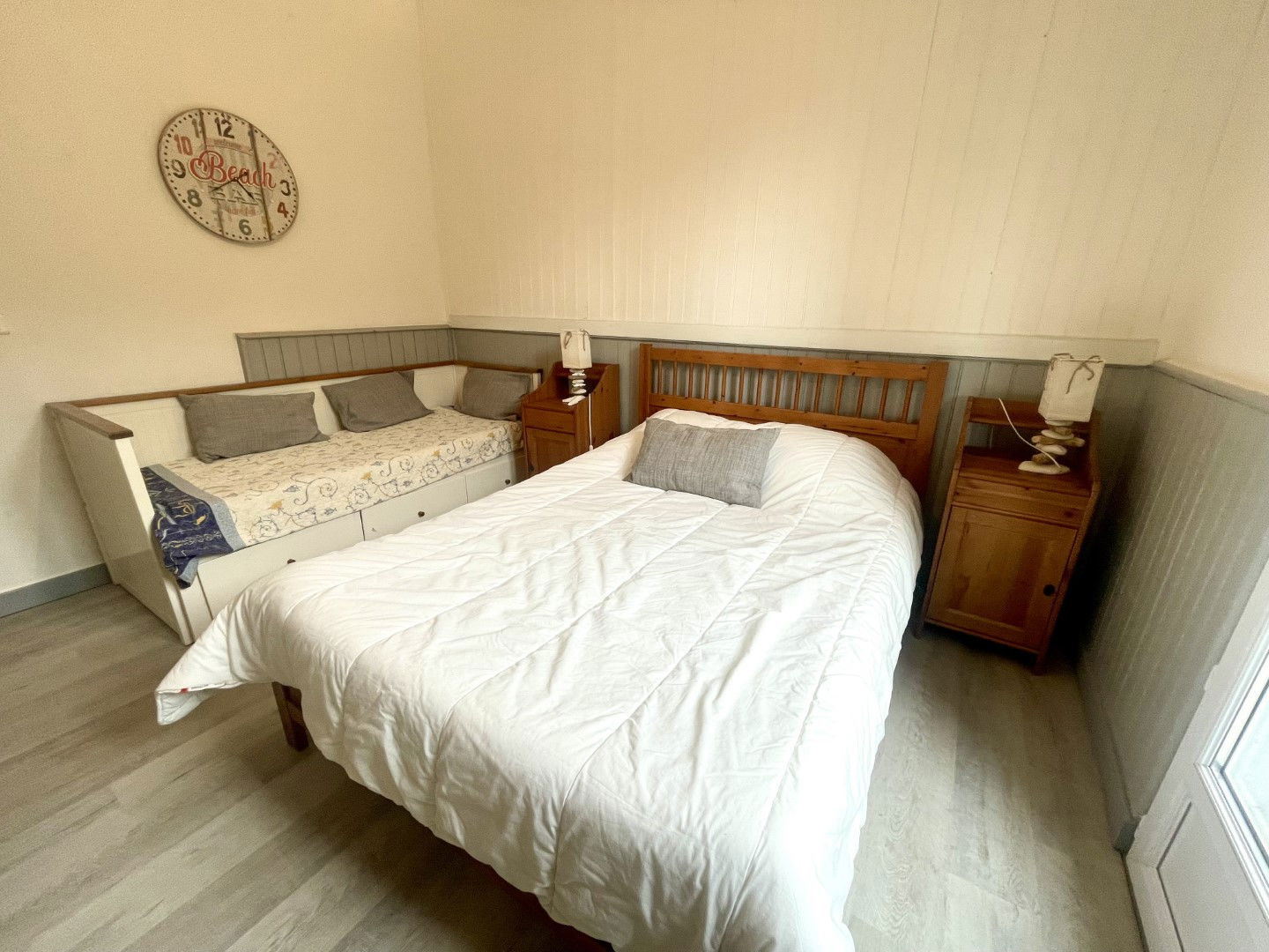 At night, the house offers two bedrooms. The bedroom is equipped with a 160 cm double bed and storage, while the second bedroom has a single 90 cm bed and a 140 cm double bed. A pleasant conservatory room, located on the terrace side, provides an additional space bathed in light. A bathroom with shower, washbasin and WC completes the main space.