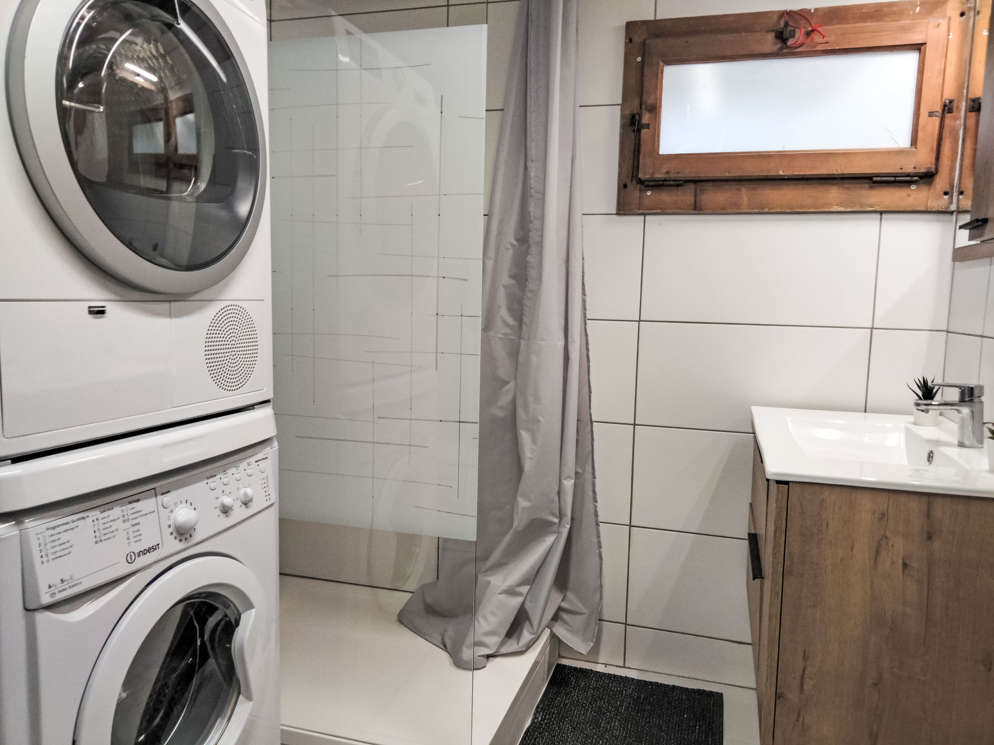 "Chalet du Rosay", 4-room apartment 60 m2, on the upper ground floor. Living/dining room with dining table and TV (flat screen). Exit to the balcony. 1 room with 2 beds (80 cm, length 190 cm). 1 room with 1 french bed (160 cm, length 190 cm). Open kitchen (1 hot plate, oven, dishwasher, 3 gas rings, toaster, kettle, microwave, freezer, electric coffee machine, raclette grill). Bath/WC. Electric heating. On the lower ground floor: (exterior staircase), 1 room with 1 french bed (160 cm, length 190 cm), shower/WC. Balcony, east facing position. Balcony furniture. Beautiful panoramic view of the mountains and the resort. Facilities: washing machine, dryer, children's high chair, baby cot for up to 3 year olds. Internet (WiFi, free). Parking space n 1 (2 cars). Please note: one double bedroom is outside the apartment. Non-smokers only. TV only FR. Smoke alarm. No internal connecting door between the floors. Offer by a private individual according to Art. 155, IV of CGI.