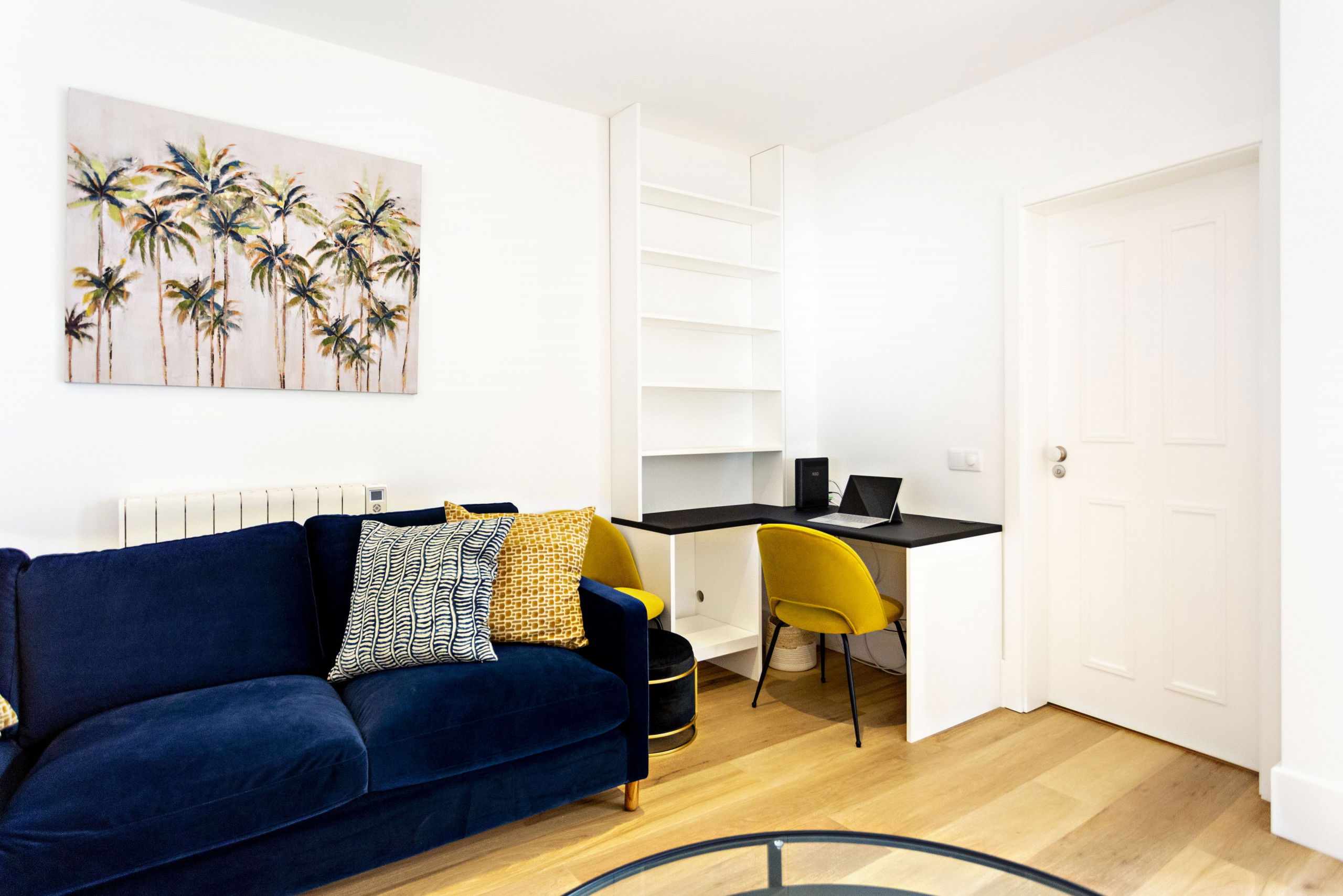 An elegant living/dining room with access to the patio and a television/games/office room that features a large smart TV and a built-in desk, making this a versatile space perfect for those who need a workspace during their stay. Wi-Fi access is fast and available throughout the house.