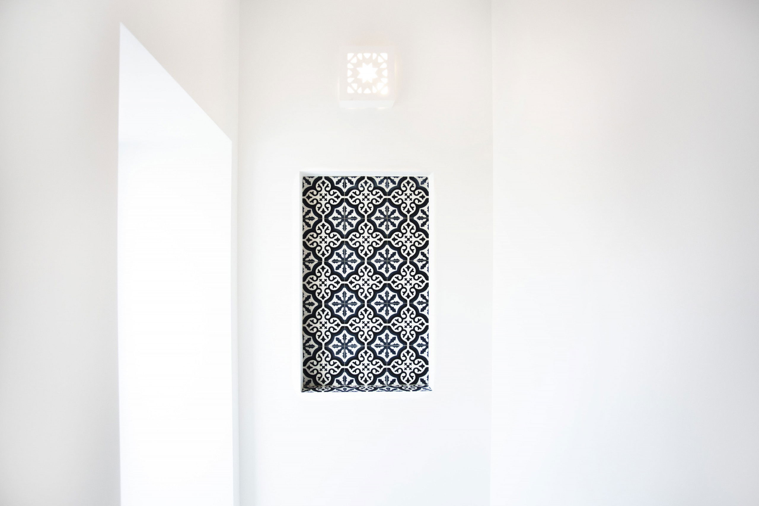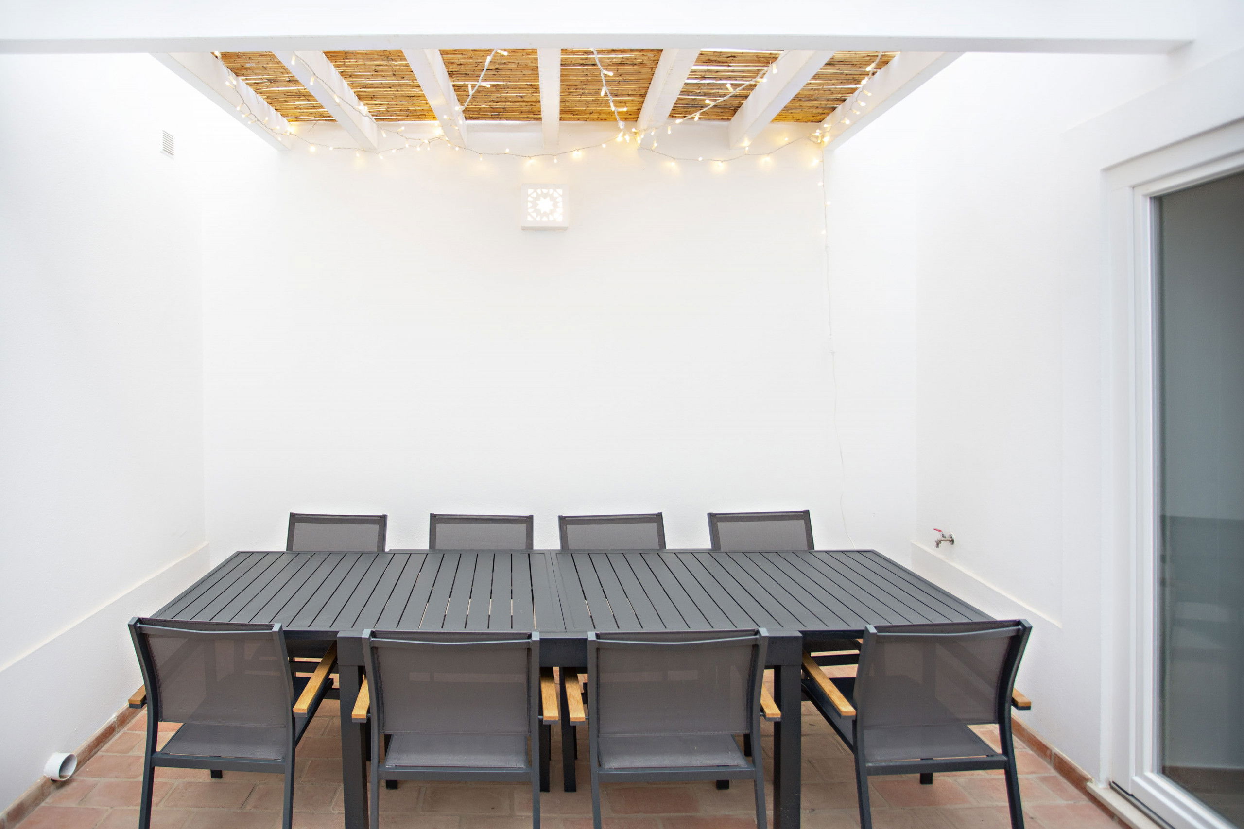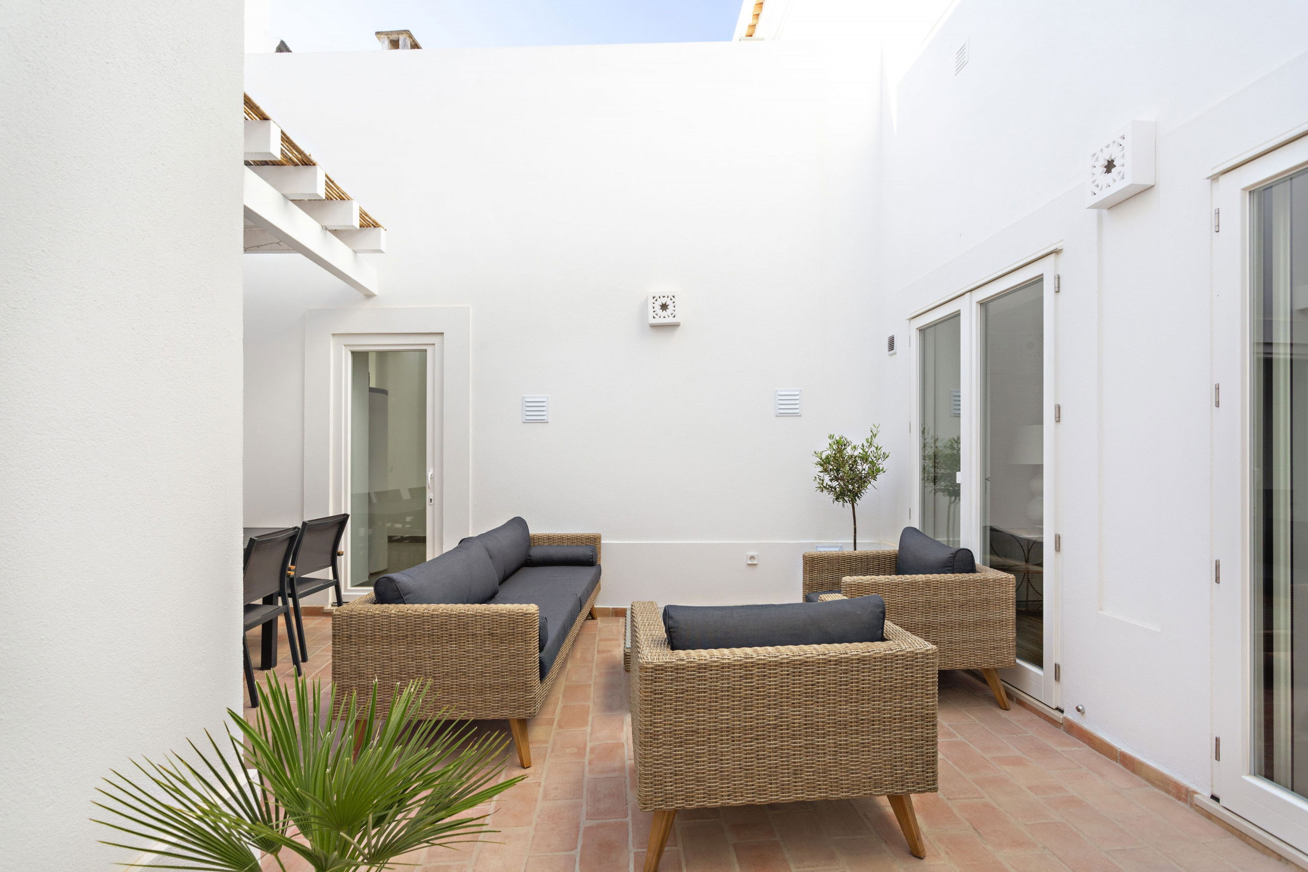 The inner courtyard has a sofa, armchairs and a dining table under an illuminated pergola. On the terrace, a pool with two sun loungers, a table and café-style chairs. Yoga mats and Turkish bath towels are available for the pool and beach.