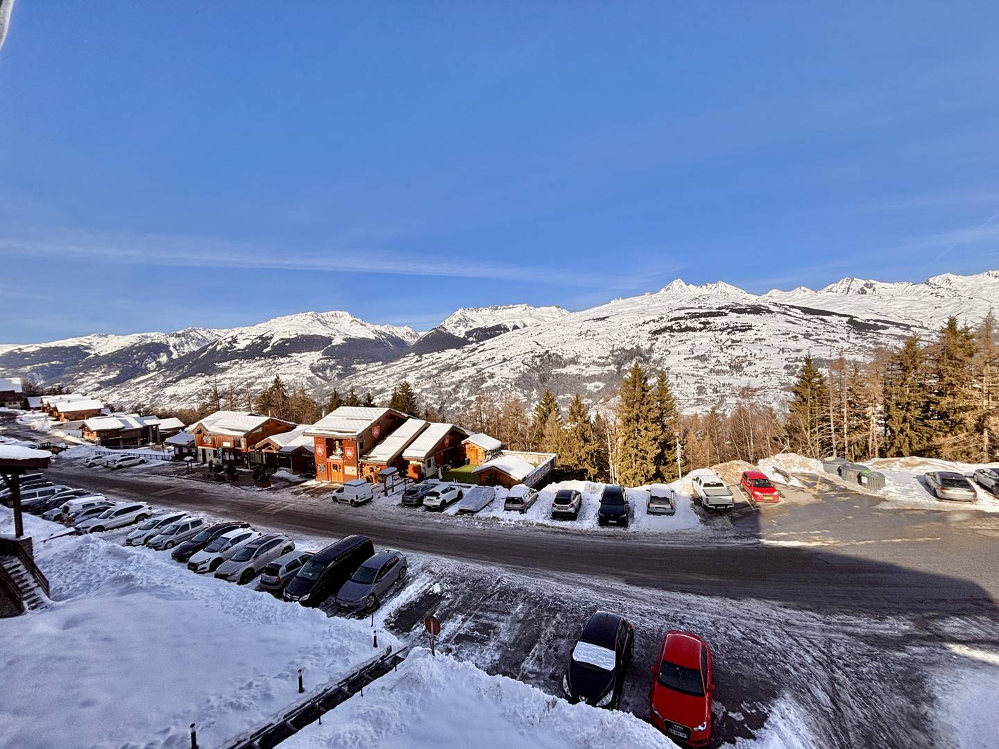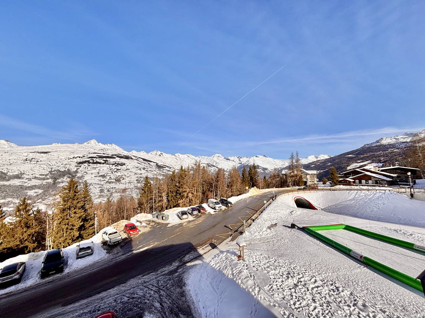 The balcony with a view of Mont Blanc faces north. The ski locker is in the residence.