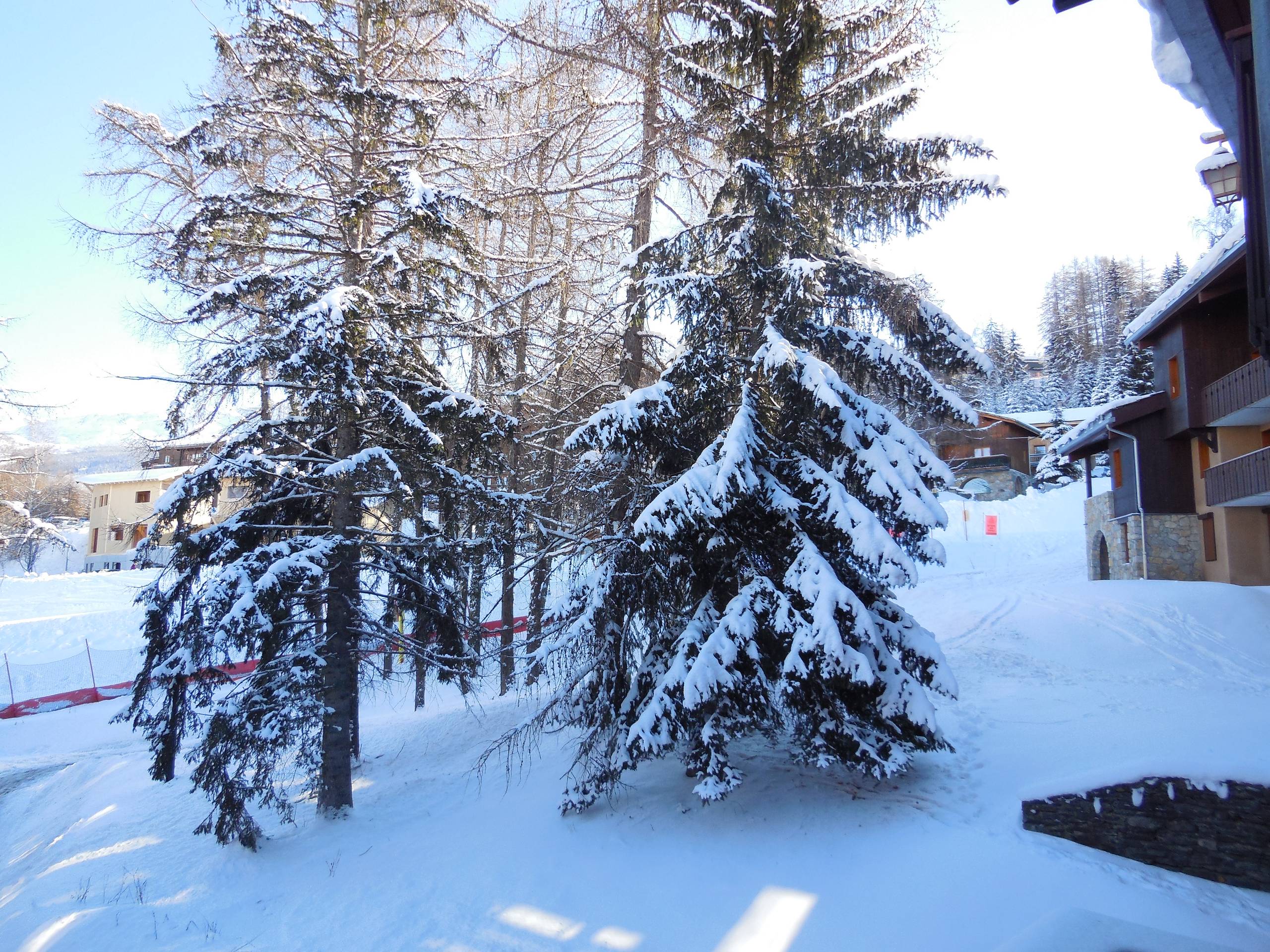 The balcony with a view of the surrounding fir trees faces east. The ski locker is in the residence.