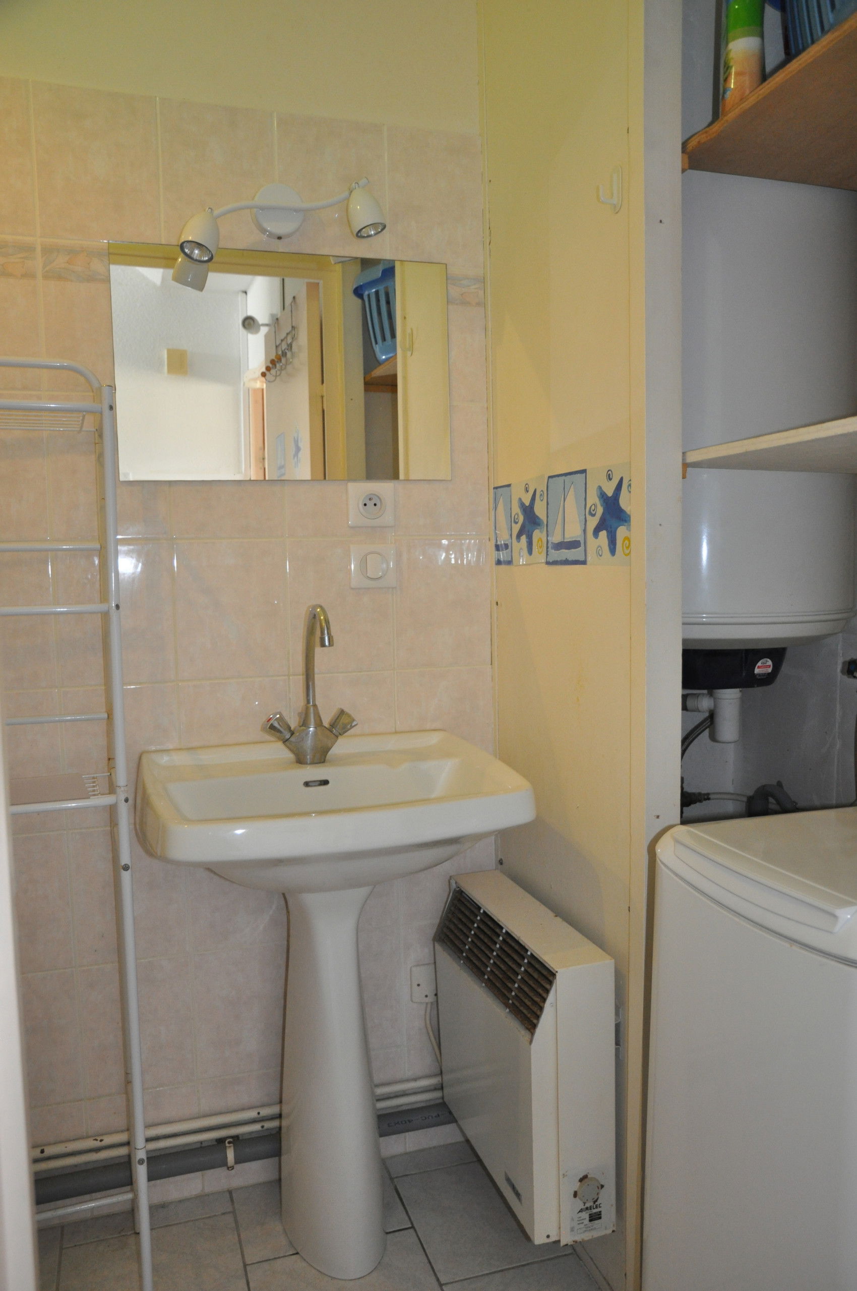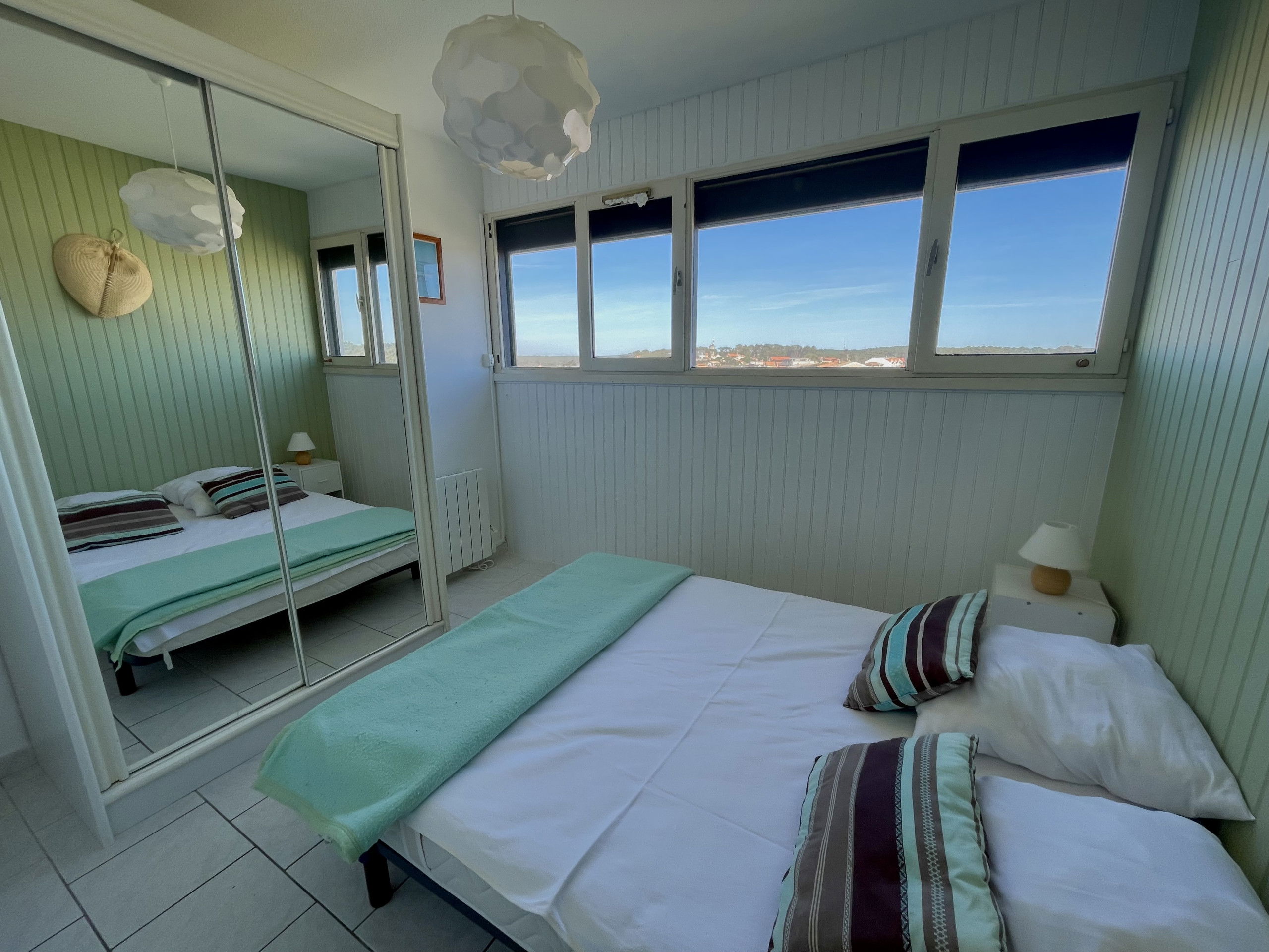 The room has a double bed of 140 cm and a wardrobe. The bathroom is equipped with a shower, a washbasin and a washing machine. The toilet is independent for more comfort.