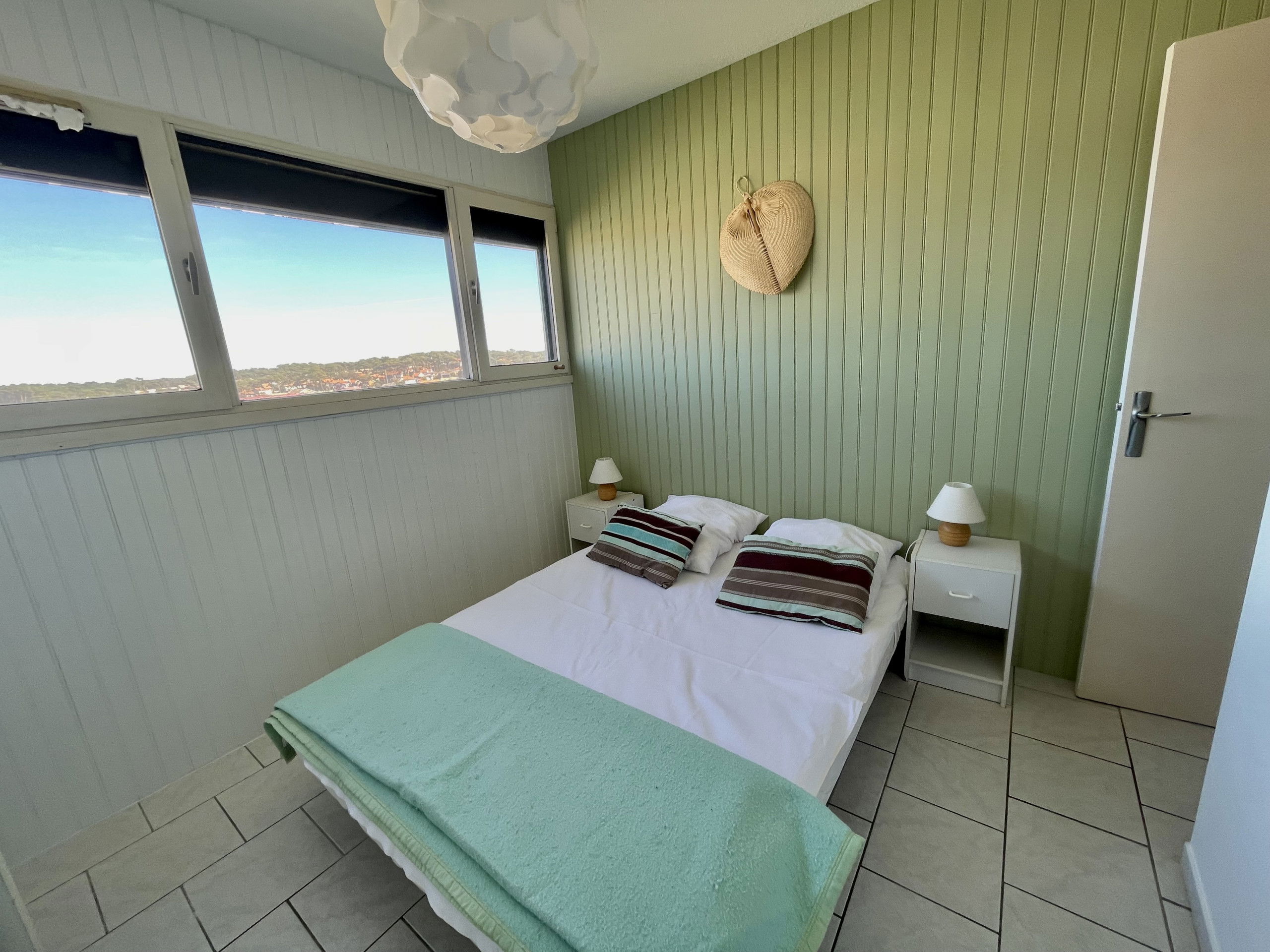 The balcony, accessible from the living room, offers a view of the ocean and is fitted with garden furniture, ideal for enjoying meals outdoors or a moment of relaxation facing the sea. A private parking space is included.