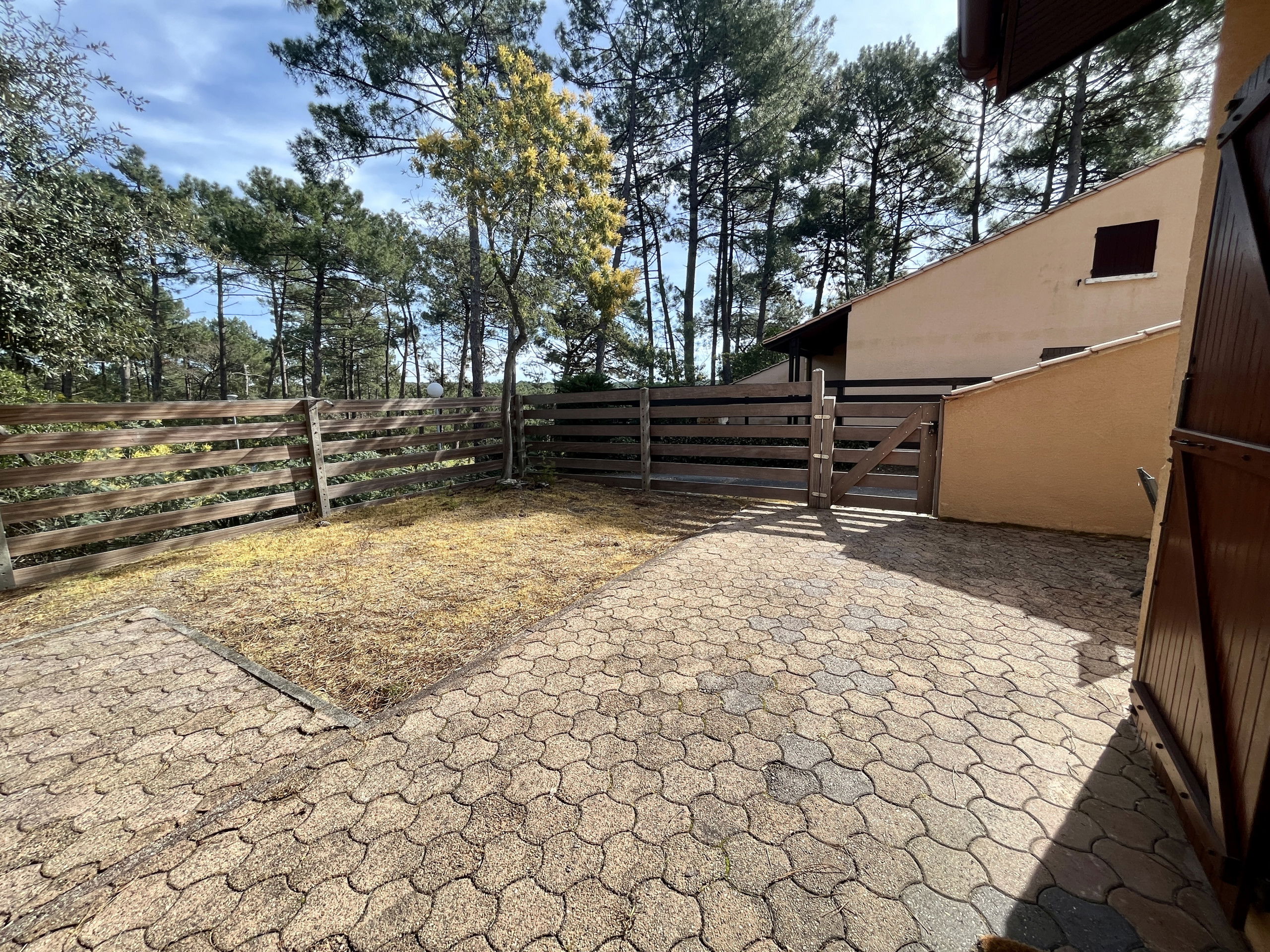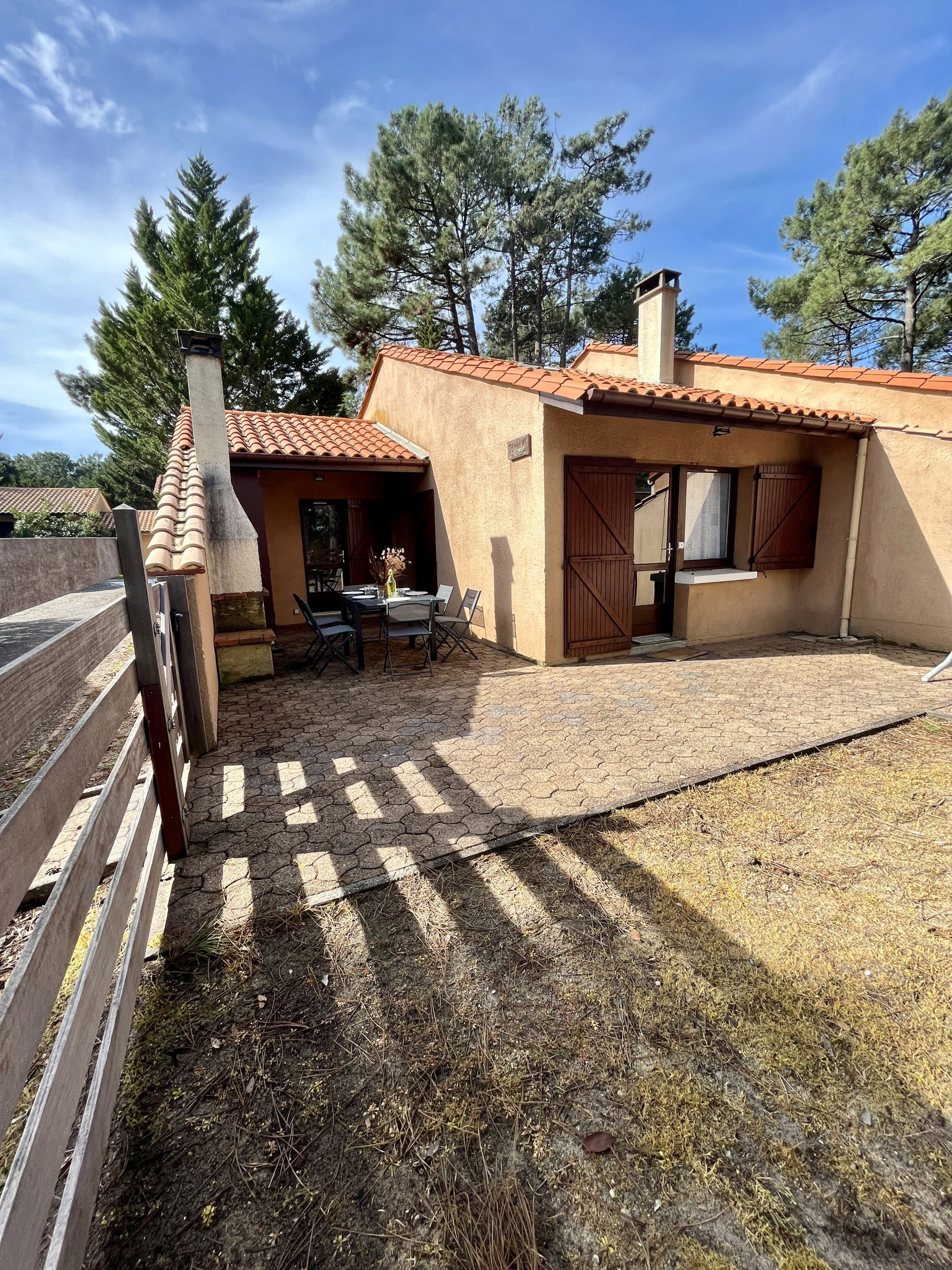 Located in the immediate vicinity of the Lacanau tennis club, this small house is situated in the heart of a Mediterranean-style village, characterised by its overhanging roofs providing a pleasant shade to the terraces. The terraced houses, with irregular heights and arranged in an offset manner, offer each resident an appreciable privacy. Each dwelling has its own private outdoor space with a terrace and a sandy little garden. A pedestrian path crosses the residence, which also benefits from a parking area at its entrance. The ocean and shops are accessible approximately 1.5 km away, while the lake is located 5 km from the site.