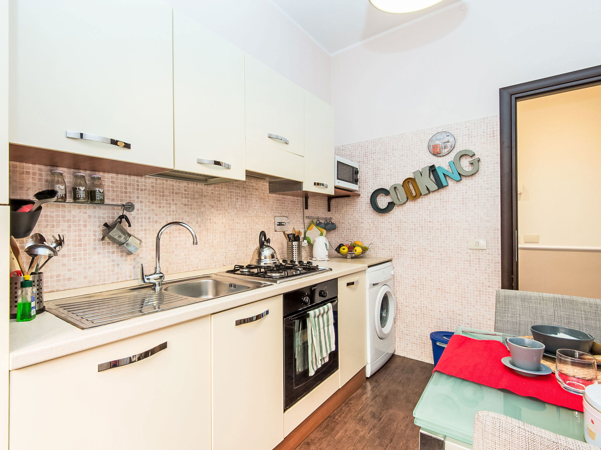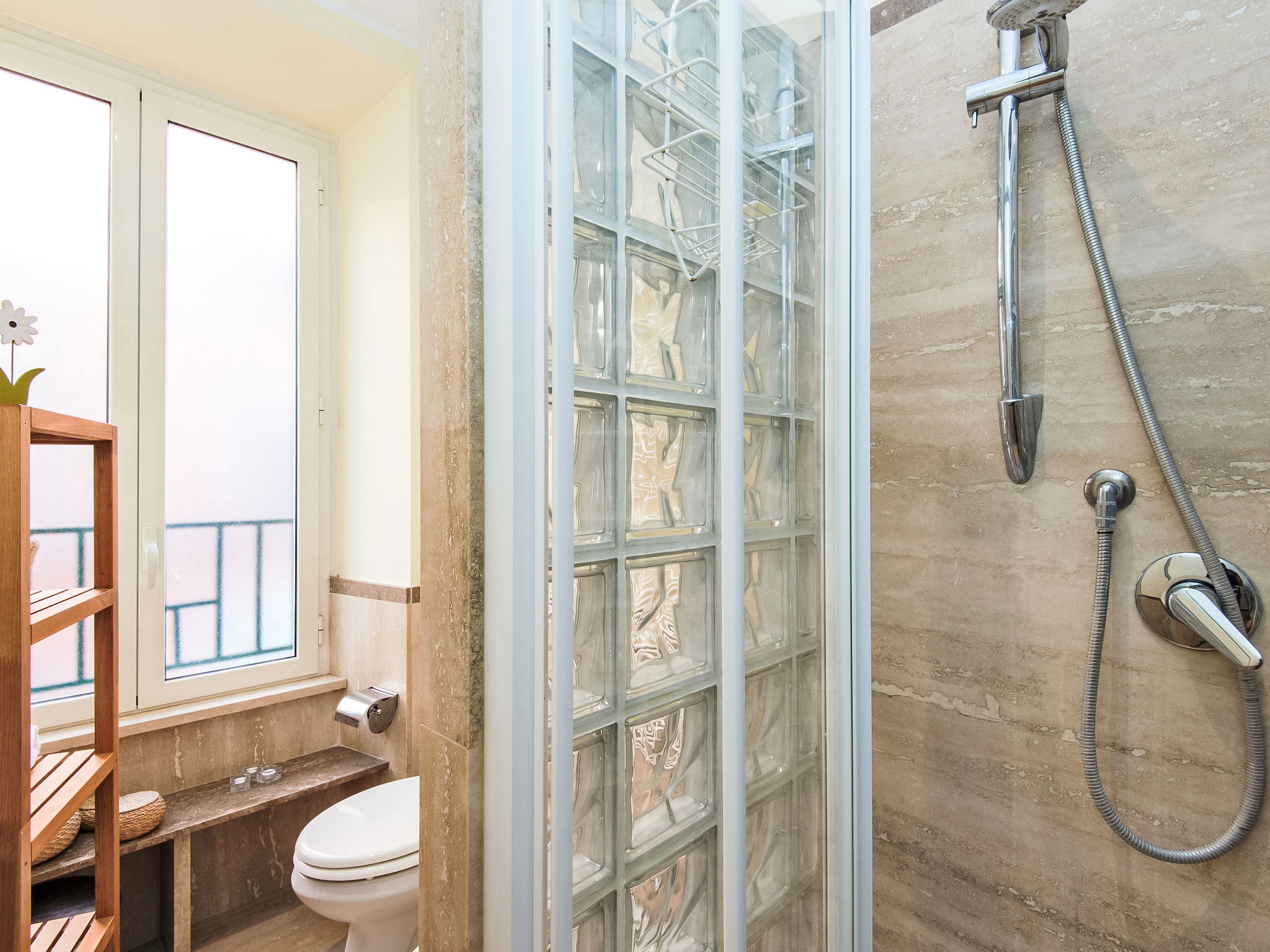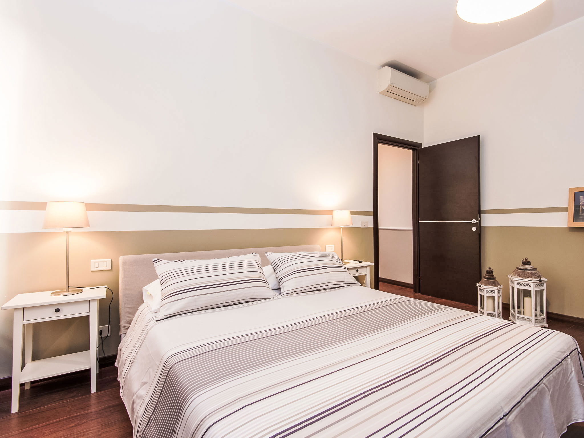2-room apartment 70 m2 on 1st floor. Modern and cosy furnishings: 2 double bedrooms, each room with digital TV, flat screen and air conditioning. Kitchen (4 hot plates, oven, dishwasher) with dining table, digital TV and flat screen. Shower/bidet/WC. Gas heating, air-conditioning. Heating available only from 21.11. to 30.03. Large terrace 80 m2. Terrace furniture. Facilities: washing machine, safe, iron, hair dryer. Internet (WiFi, free). Maximum 1 pet/ dog allowed. Late check in fee: 50 Euro after 20.00 to be paid cash on arrival. IT058091C2KM4TN5VE