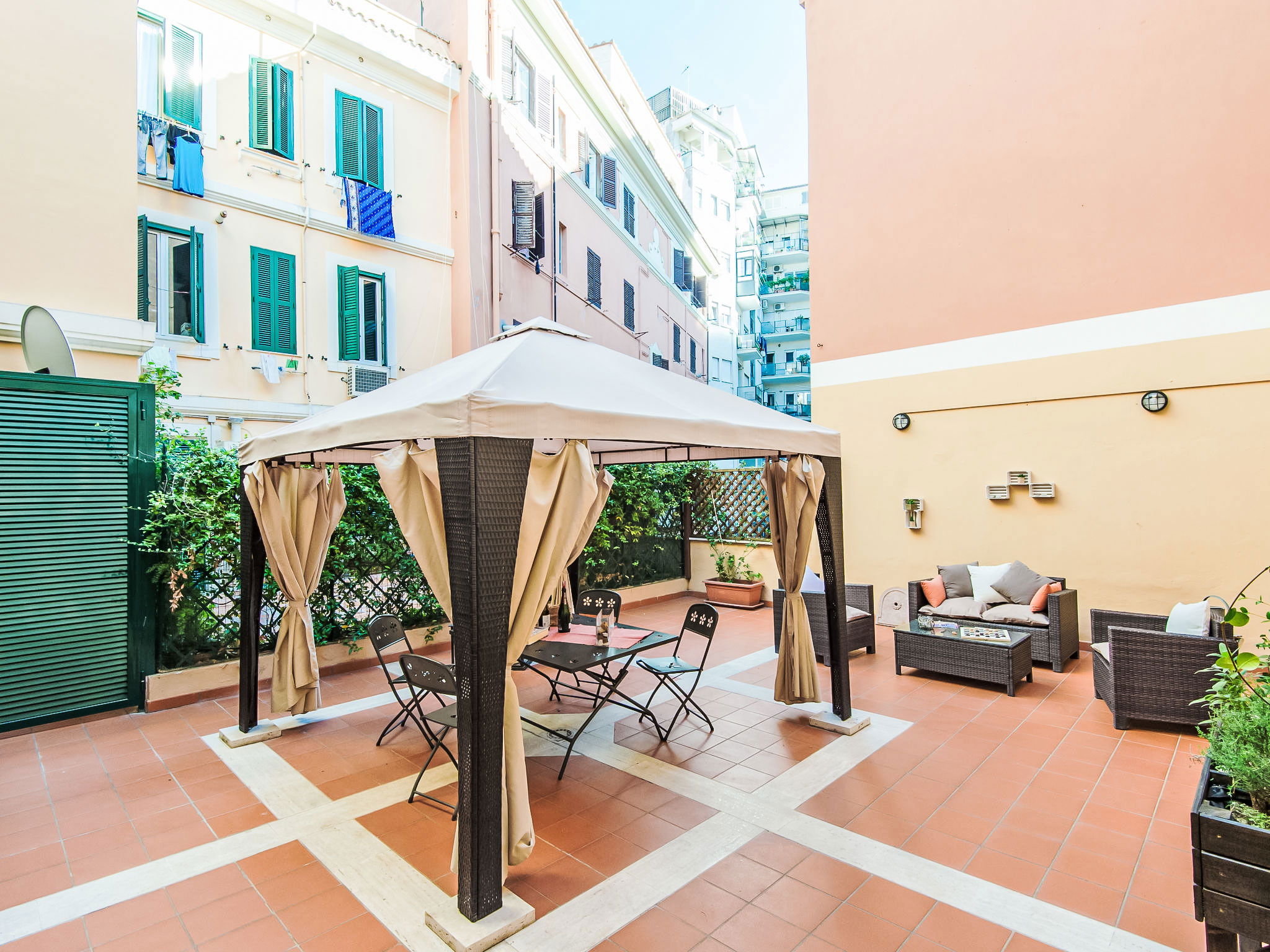 Cosy, comfortable apartment block "Vatican - Residenza Argilla". In the district of Vatican, in a central, quiet, sunny position. Linen change weekly (suppl. charge extra). Towel change weekly (suppl. charge extra). Room cleaning daily on request (extra). House maid daily on request (extra). Airport transfer (extra). Communal covered parking (extra) at 30 m, public parking on the road. Shop 30 m, grocery, supermarket 50 m, restaurant 20 m, bakery 20 m, café 30 m, bus stop "Ranucci bus 916 to P.zza Venezia" 100 m, railway station "San Pietro FR2" 300 m, underground station "Ottaviano Metro A" 1 km. Nearby attractions: Mercato rionale Gregorio VII 500 m, Saint Peter's Basilica 1 km, Sistine Chapel 1 km.