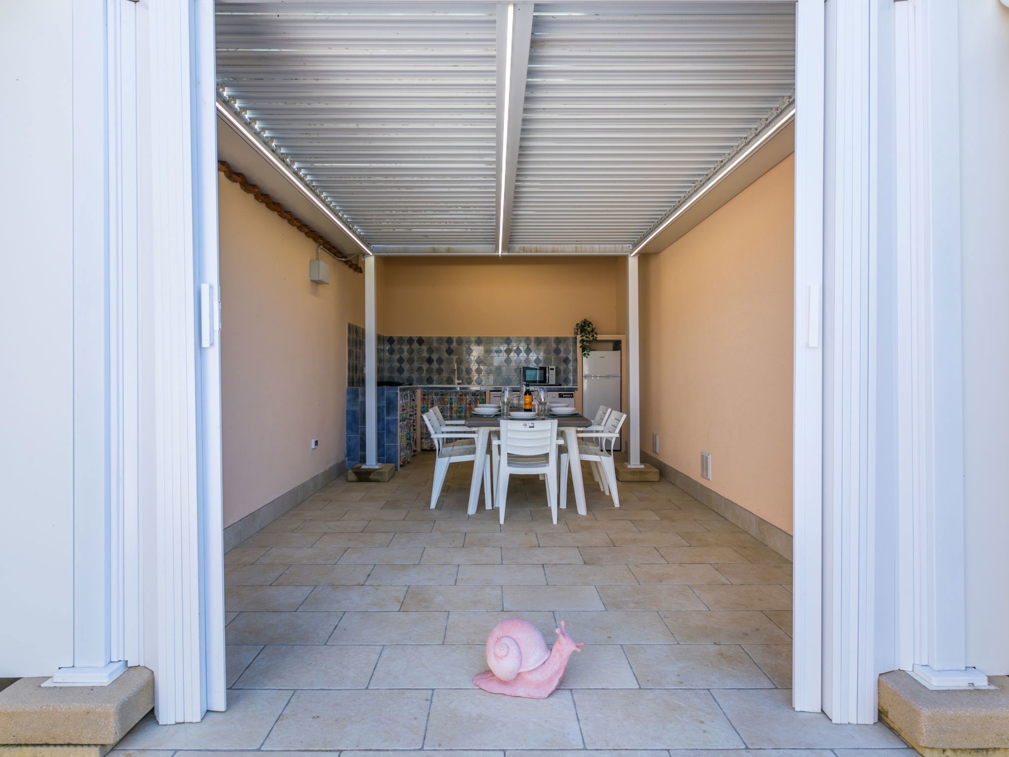 4-room house 110 m2 on 2 levels. Fully renovated in 2024, beautiful and modern furnishings: living/dining room with dining table. Exit to the terrace. 1 room with 1 double sofabed and TV. Exit to the garden. Open kitchen (oven, dishwasher, 4 induction hot plates, toaster, kettle, electric coffee machine). Exit to the terrace. Shower/bidet/WC. Electric heating, air-conditioning. Upper floor: 1 double bedroom with TV. 1 double bedroom with 2 beds. (ladder) gallery. Shower/bidet/WC. Electric heating, air-conditioning. Large terrace 35 m2 partly roofed. Barbecue, deck chairs (6). Facilities: washing machine, iron, mosquito net, children's high chair, baby cot for up to 2 year olds, hair dryer. Internet (WiFi, free). Parking (roofed, fenced 2 cars). E-charging station. Please note: maximum 2 pets/ dogs allowed. Private entrance, fire extinguisher. complete outdoor kitchen (2 plates, microwave, dishwasher, washing machine, fridge). IT050030C2VXQG94XA