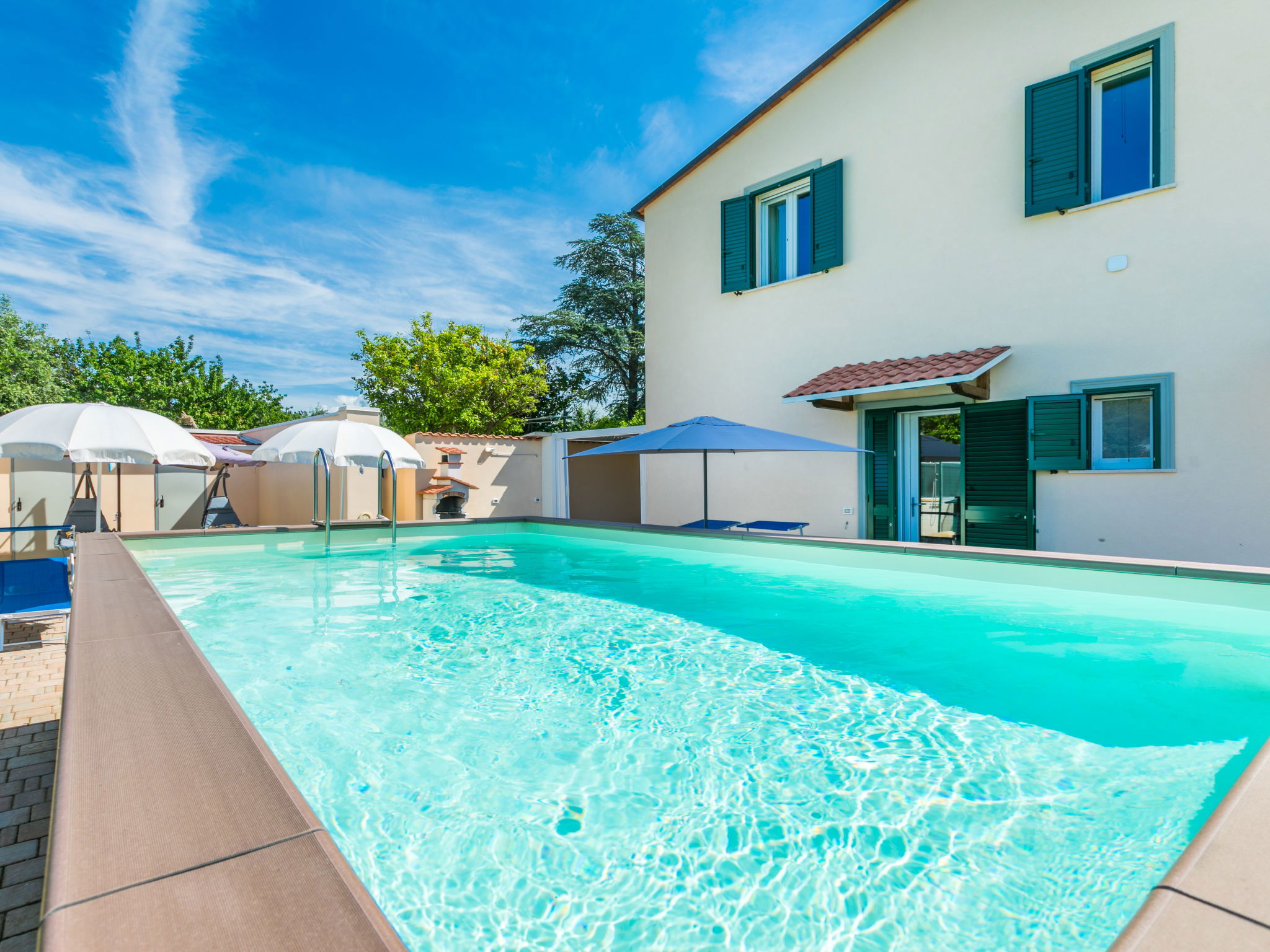 Comfortable house "Da Lisa", 2 storeys, semi-detached, renovated in 2024, surrounded by meadows and fields. 3 km from the centre of San Pietro in Palazzi, 5 km from the centre of Cecina, in an elevated position, 5 km from the sea, 5 km from the beach. Private: property 700 m2 (fenced), swimming pool (above ground) (3 x 5 m, depth 120 - 120 cm, seasonal availability: 12.Apr. - 13.Oct.). Shower/WC in the pool area, terrace (100 m2), garden furniture, barbecue, children's playground. Linen change (suppl. charge extra). Towel change (suppl. charge extra). Storeroom available. Roofed, parking (for 2 cars). E-charging station. Shop 1 km, supermarket 1 km, restaurant 1 km, bakery 1 km, bus stop "Sp 68 - Bivio Loc. Giardino" 90 m, railway station "Cecina" 5 km, thermal baths "Calidario" 35 km. Marina 6 km. Nearby attractions: Pisa 50 km, Lucca 70 km, Firenze 112 km.