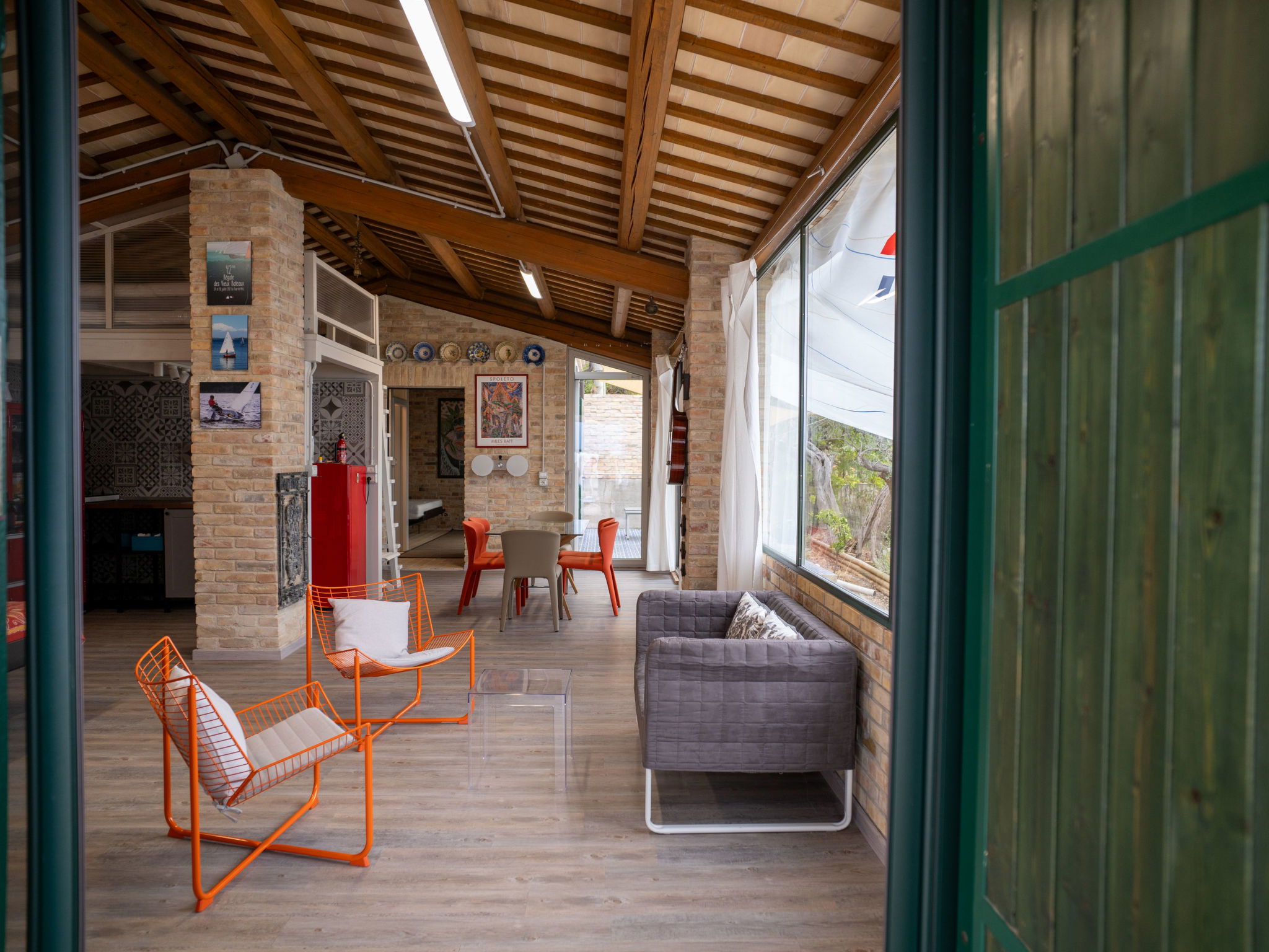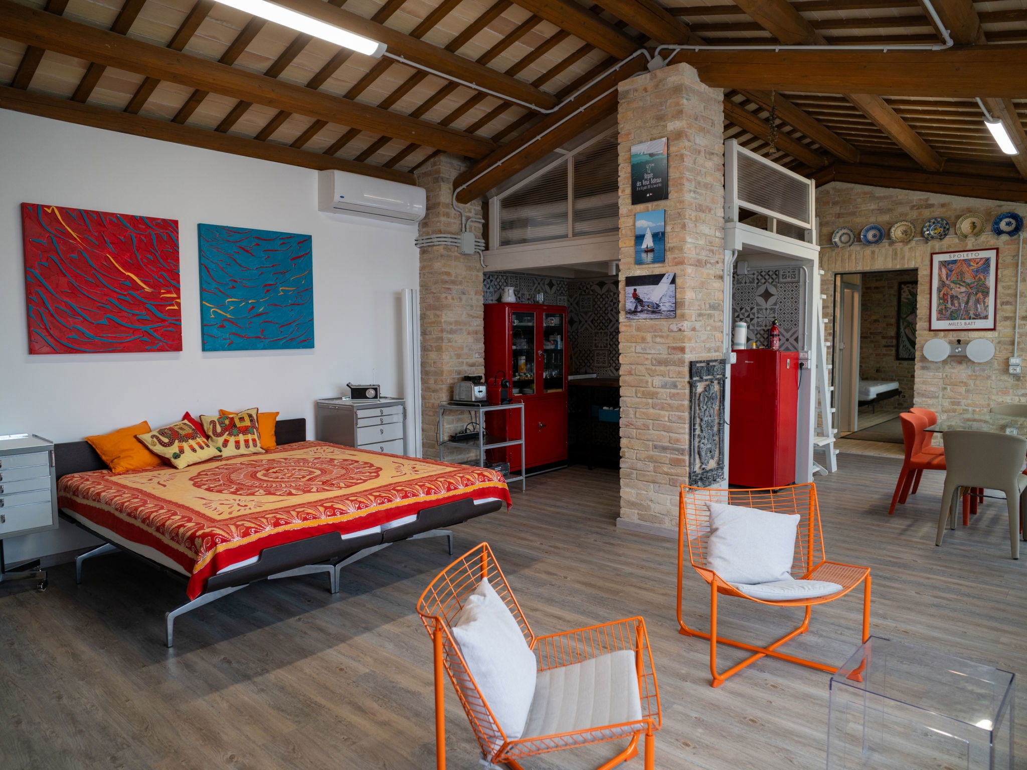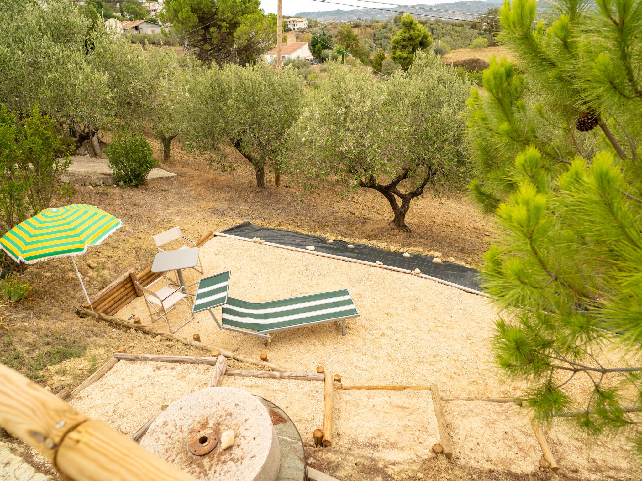 "Mike's Dinghy House", 2-room Loft 120 m2 on 2 levels, on the ground floor. Spacious and bright, very cosy furnishings: living/dining room with 1 double bed and air conditioning. Exit to the garden, to the terrace, pergola. 1 double bedroom with shower/bidet/WC. Exit to the terrace. Open kitchen (3 hot plates). Shower/WC. Heating. Balcony furniture, sitting area. Very beautiful panoramic view of the mountains and the countryside. Facilities: washing machine (extra). Dryer (extra), iron, mosquito net, hair dryer. Internet (WiFi). Suitable for families. Maximum 1 pet/ dog allowed. IT068012C25C7PYCTT