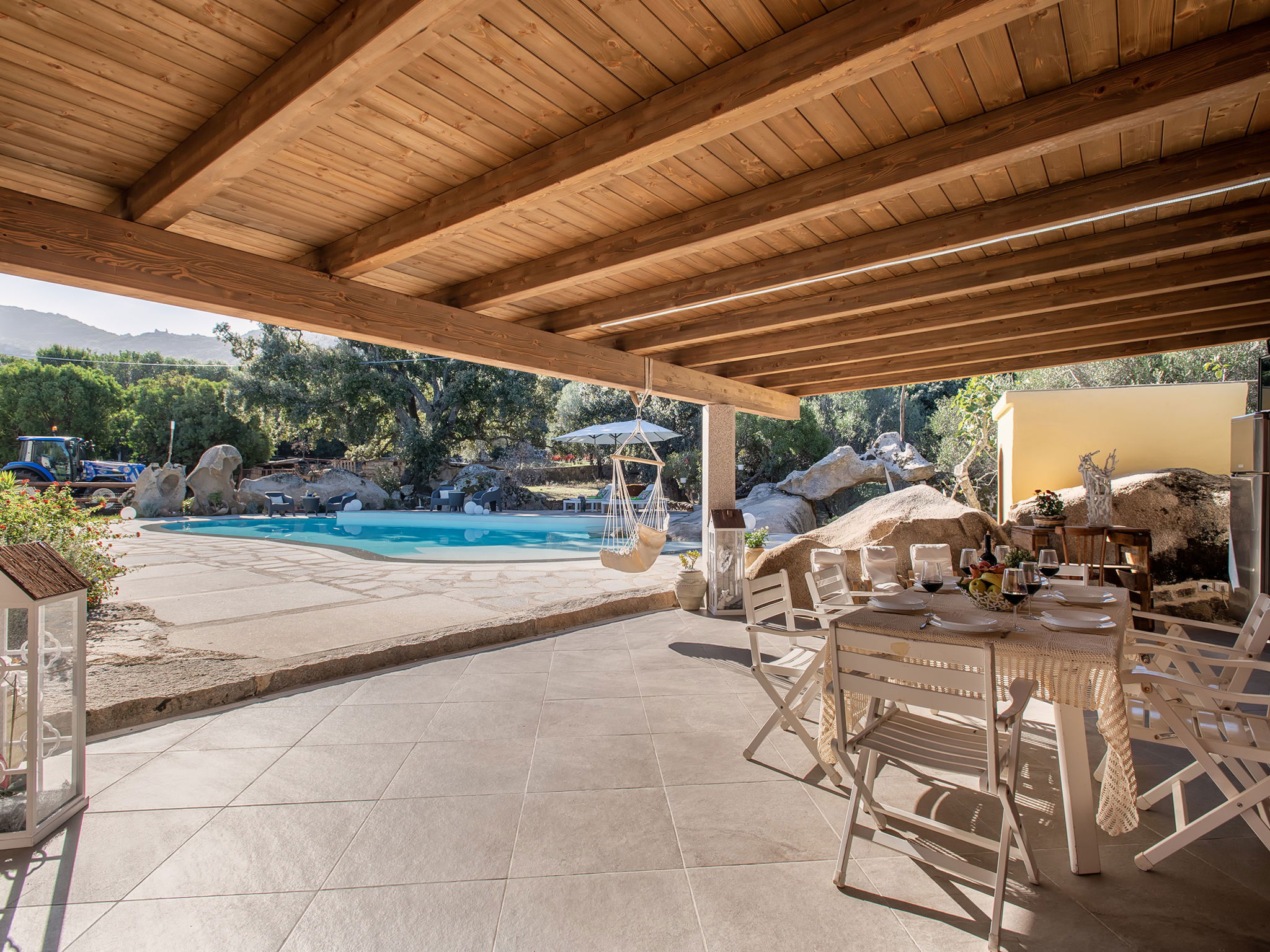 "Stazzu lu Bulioni", 4-room cottage 150 m2 on 2 levels. Spacious and bright, modern and rustic furnishings: living/dining room with open-hearth fireplace (only for decoration), satellite TV (flat screen). 1 room with 2 beds, 1 sofabed and satellite TV (flat screen). Exit to the garden, to the swimming pool. Kitchenette (4 hot plates, oven, dishwasher, toaster, kettle, microwave, electric coffee machine). 2 showers/bidet/WC. Upper floor: 1 room with 1 bed, 1 double bed and satellite TV (flat screen). 1 double bedroom with satellite TV (flat screen). Shower/bidet/WC. Heating, air-conditioning. Parquet floors. Large garden. Beautiful view of the swimming pool, the garden and the forest. Facilities: washing machine, dryer, iron, children's high chair, baby cot, hair dryer. Internet (WiFi, free). E-charging station. Maximum 1 pet/ dog allowed. Vacuum cleaner, slicer, Bimby robot, bread maker, ice crusher, hair straightener, Ps3, Wii, Karaoke. When there are less than the maximum number of guests staying at the property, not all of the bedrooms will be available for use. IT090085C2000P4461