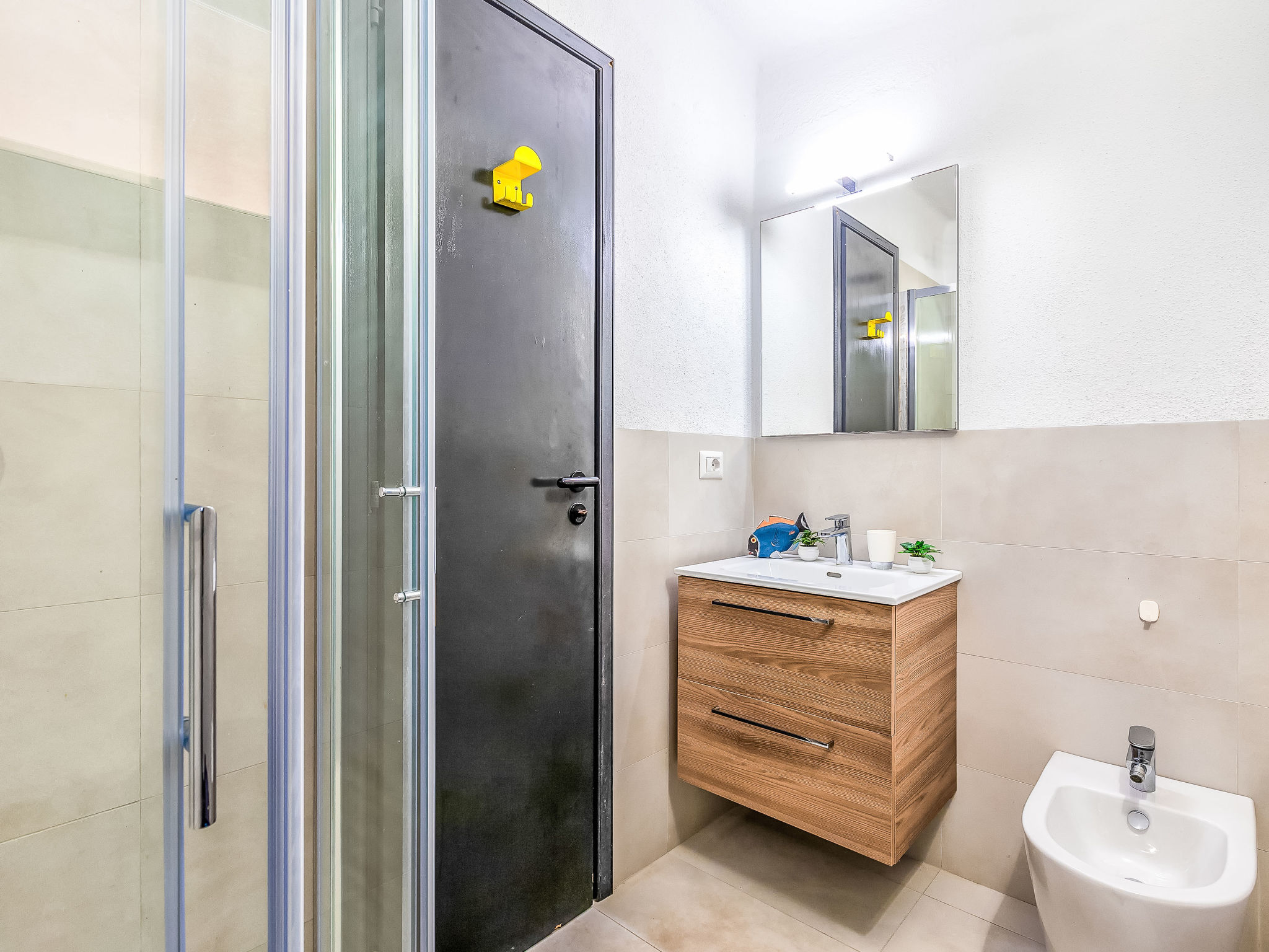 "Sassicaia", 4-room house 100 m2 on 2 levels. Simple and comfortable furnishings: large living/dining room with TV. Exit to the terrace. 1 room with 2 beds and shower/bidet/WC. Exit to the terrace. 1 room with 1 x 2 bunk beds. 1 double bedroom. Exit to the terrace. Kitchenette (mini-oven, dishwasher, 4 induction hot plates, microwave, freezer). Exit to the terrace. 2 showers/bidet/WC. No heating option. Large terrace partly roofed. Terrace furniture, balcony furniture. Beautiful view of the sea. Facilities: washing machine. Internet (WiFi, free). Maximum 2 pets/ dogs allowed. Please note: one bedroom with two beds and one bathroom (shower, bidet, WC) have only external access. The bathrooms will be totally renovated for the 2022 season. IT090062C2000Q2575