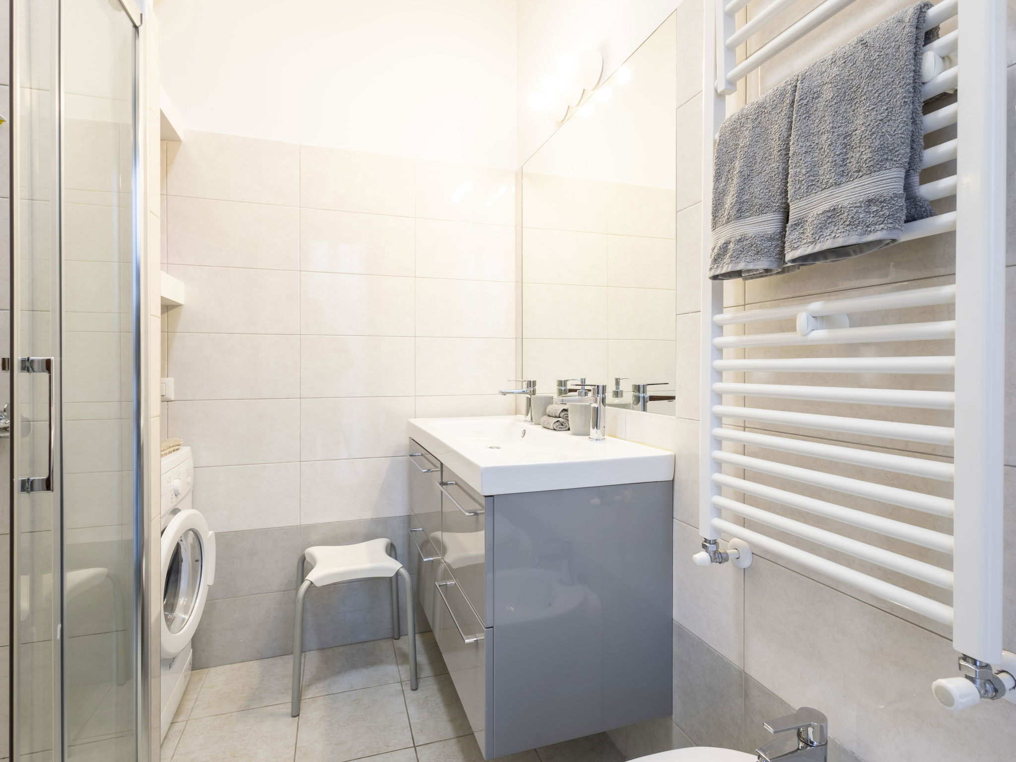 1-room studio 47 m2, on the upper ground floor. Bright, simple and comfortable furnishings: living/sleeping room with 1 sofabed (140 cm), 1 double bed and TV (flat screen). Kitchen (oven, 4 gas rings, toaster, kettle, microwave, electric coffee machine) with dining table. Shower/bidet/WC. Heating, air-conditioning (extra). Heating available only from 15.10. to 15.04. Facilities: washing machine, iron, baby cot, hair dryer. Internet (WiFi, free). Please note: suitable for families. Non-smoking house. Maximum 1 pet/ dog allowed. IT015146C2R3JAZ65K