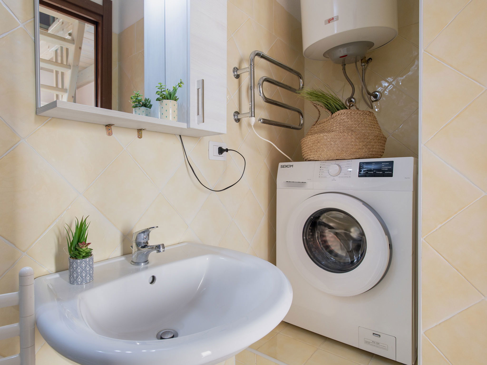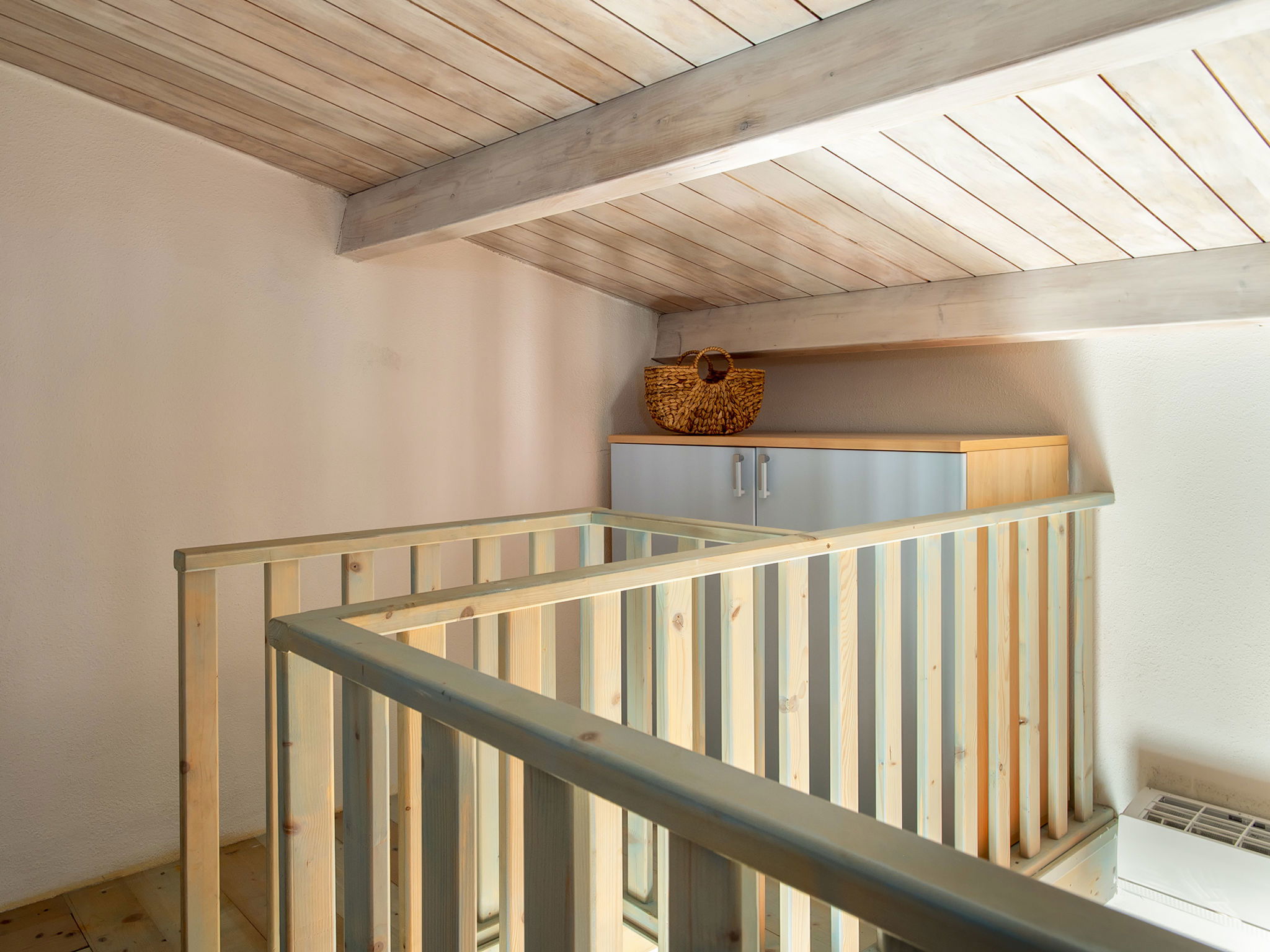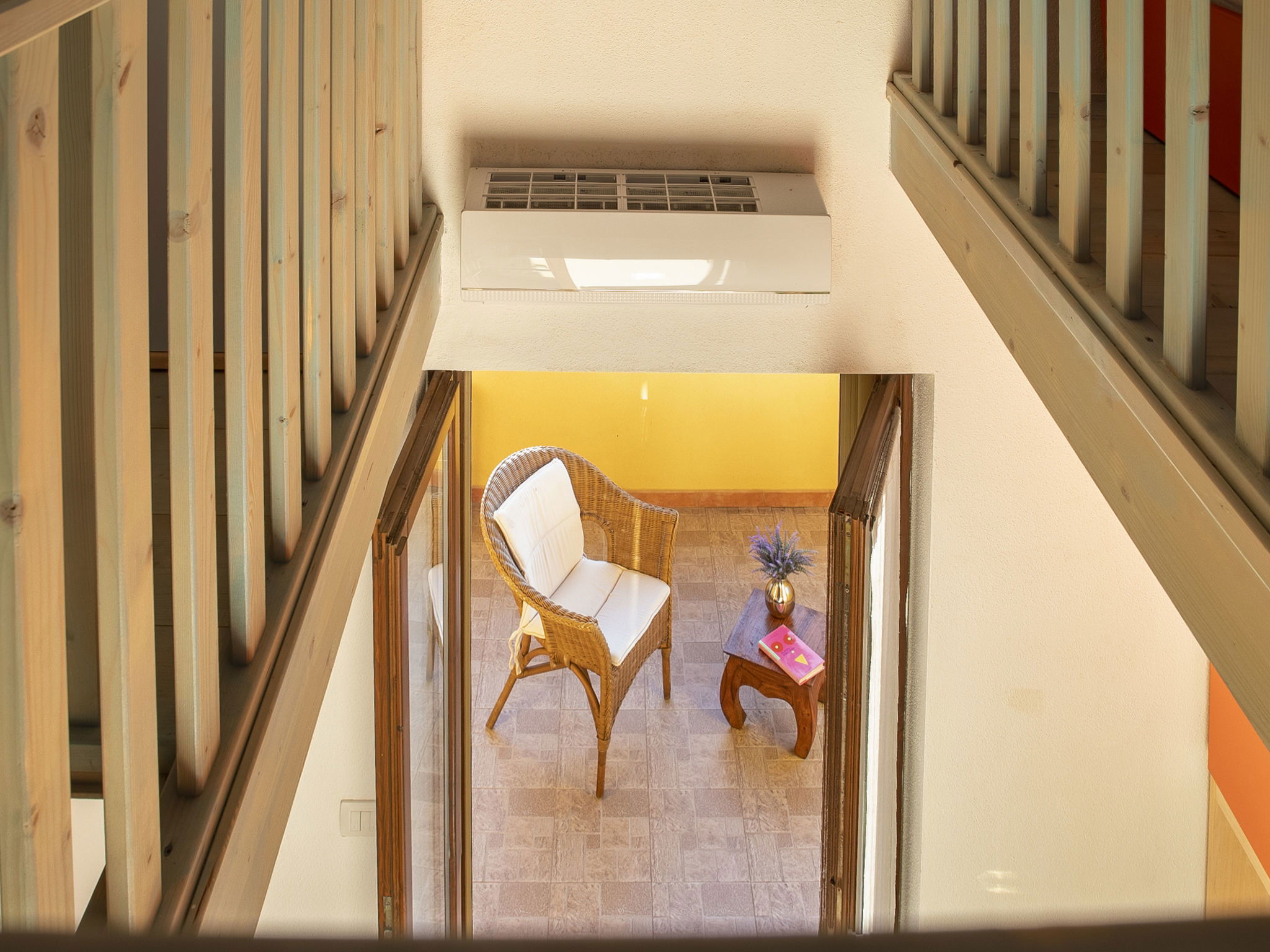 "Happy Island", 2-room house 45 m2. Practical and comfortable furnishings: living/dining room with 1 double sofabed and TV (flat screen). Exit to the garden, to the terrace. Kitchenette (4 hot plates, oven, toaster, kettle). (extra), air-conditioning. Upper floor: 1 room with 1 double bed. Exit to the terrace. Gallery with 1 bed. Shower/bidet/WC. Terrace roofed. Terrace furniture, barbecue. Facilities: washing machine, iron, hair dryer. Internet (WiFi, free). Parking space n B6. Maximum 1 pet/ dog allowed. The staircase leading to the gallery is very steep. Instead of an enclosed bedroom, some sleeping areas are located in an open-plan area (gallery, alcove, etc.). IT090081C2000R0060