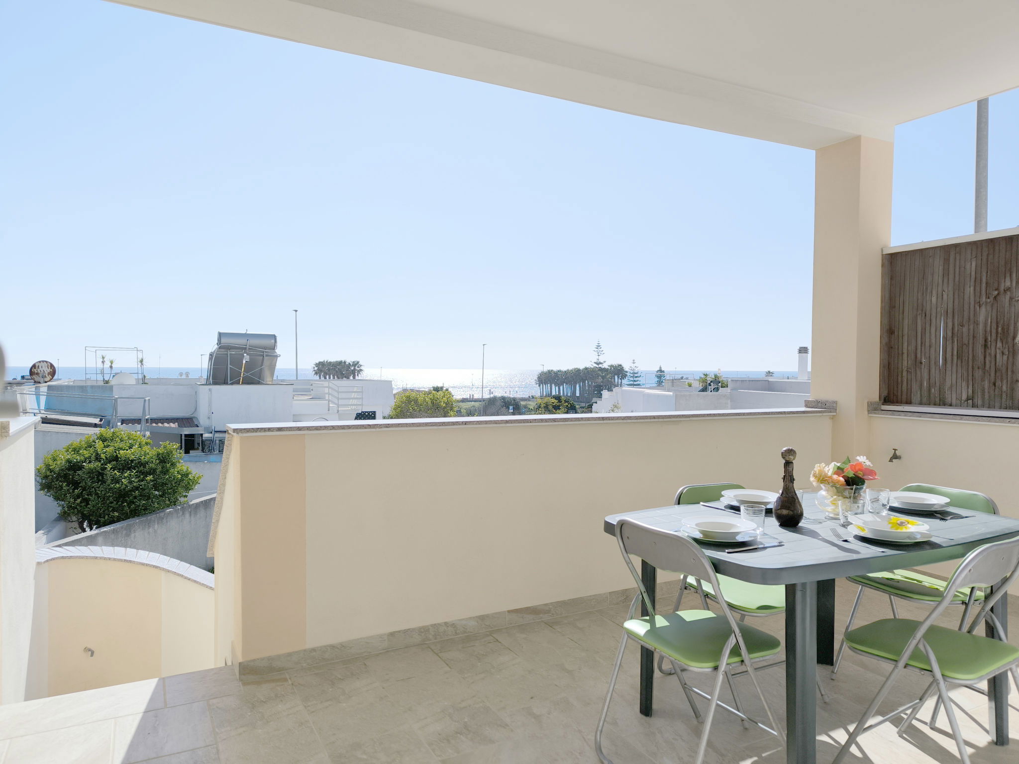 Beautiful, comfortable 3-family house "Vista Mare". 700 m from the centre of Torre Vado, in a sunny position in the residential district, 220 m from the sea, 1 km from the beach. Private: outdoor shower. In the house: washing machine (for shared use). Parking. Grocery, supermarket, restaurant 100 m, pedestrian zone 220 m, bus stop 370 m, sandy beach "Marina di Pescoluse" 2.4 km. Nearby attractions: Santa Maria di Leuca 12 km, Torre San Giovanni 18 km, Gallipoli 43 km, Otranto 57 km, Lecce 79 km.