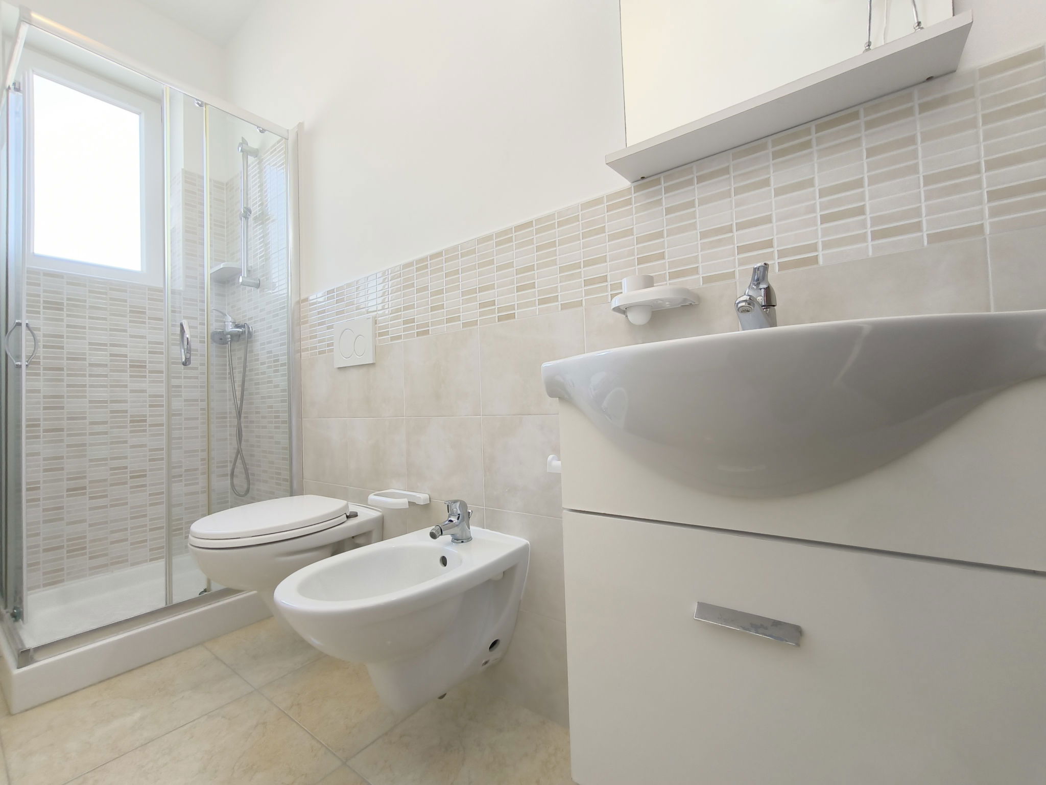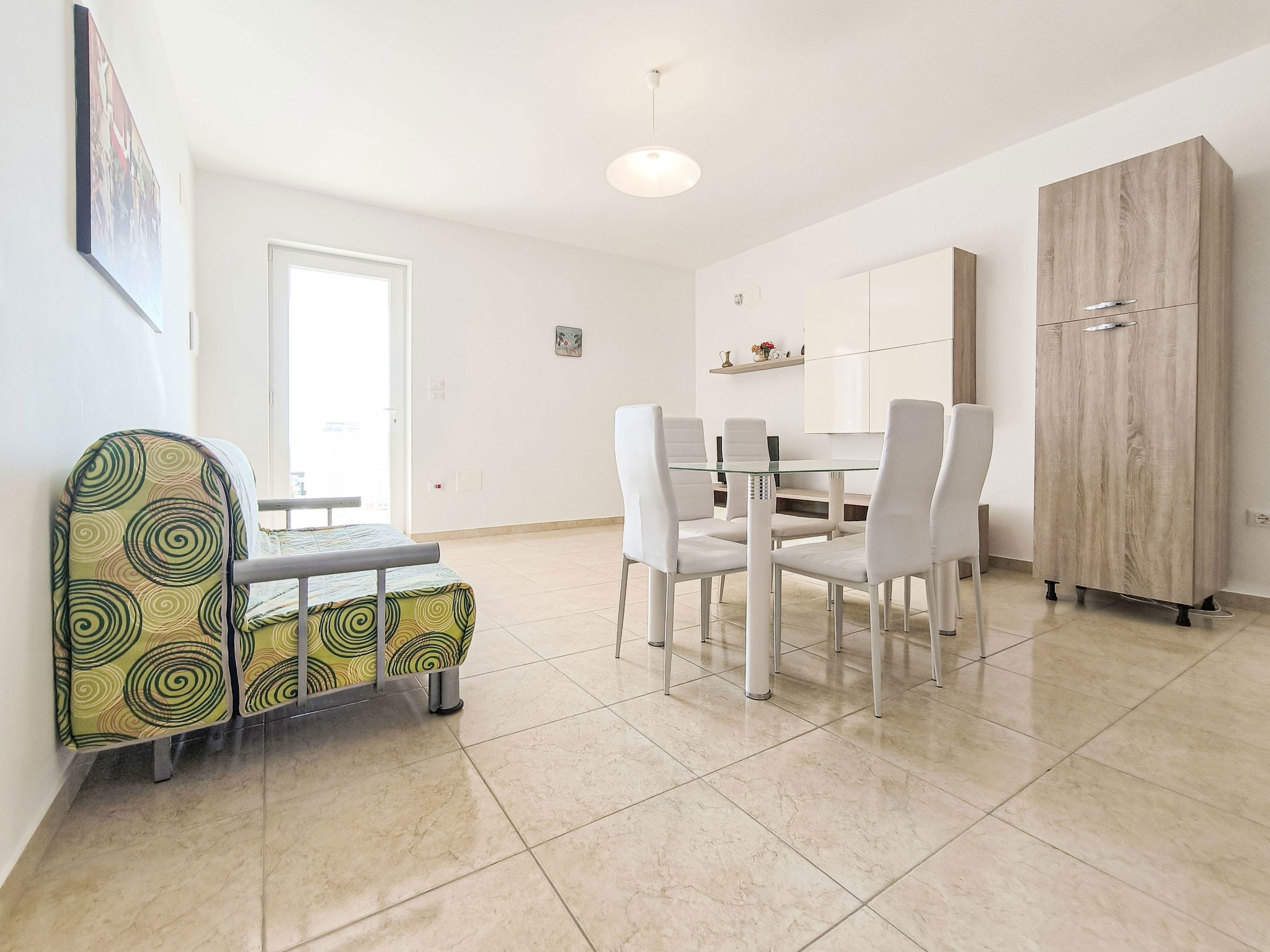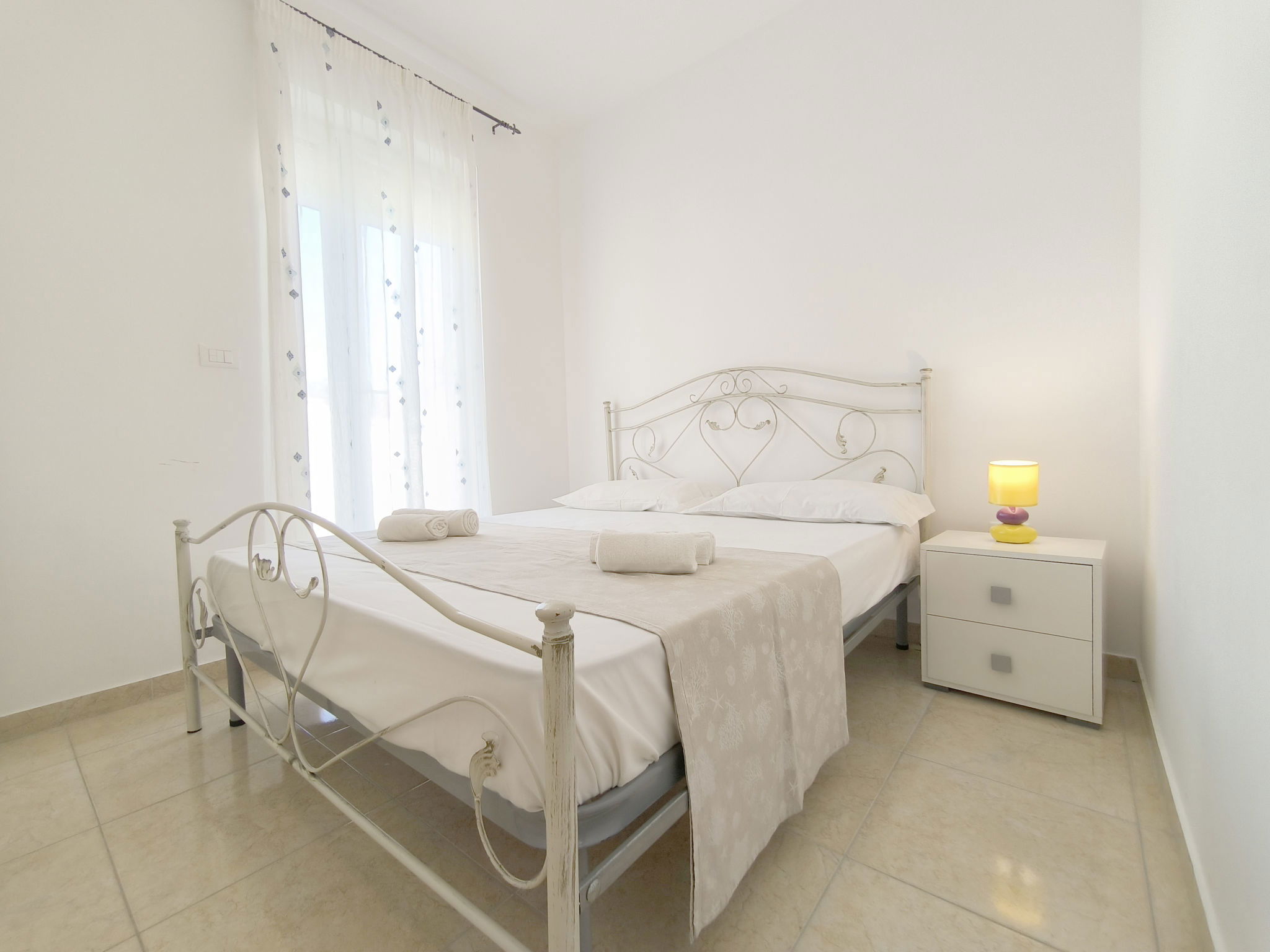 2-room apartment 40 m2, on the upper ground floor. Bright, renovated, comfortable and modern furnishings: living/sleeping room with 1 double sofabed, dining table, TV, air conditioning and forced-air heating. Exit to the terrace. 1 room with 1 double bed. Open kitchen (oven, 4 gas rings). Shower/bidet/WC. Heating not available in all rooms. Terrace roofed. Terrace furniture. View of the sea. Parking (1 car) at the house. Please note: maximum 1 pet/ dog allowed. Private entrance. IT075050B400054183