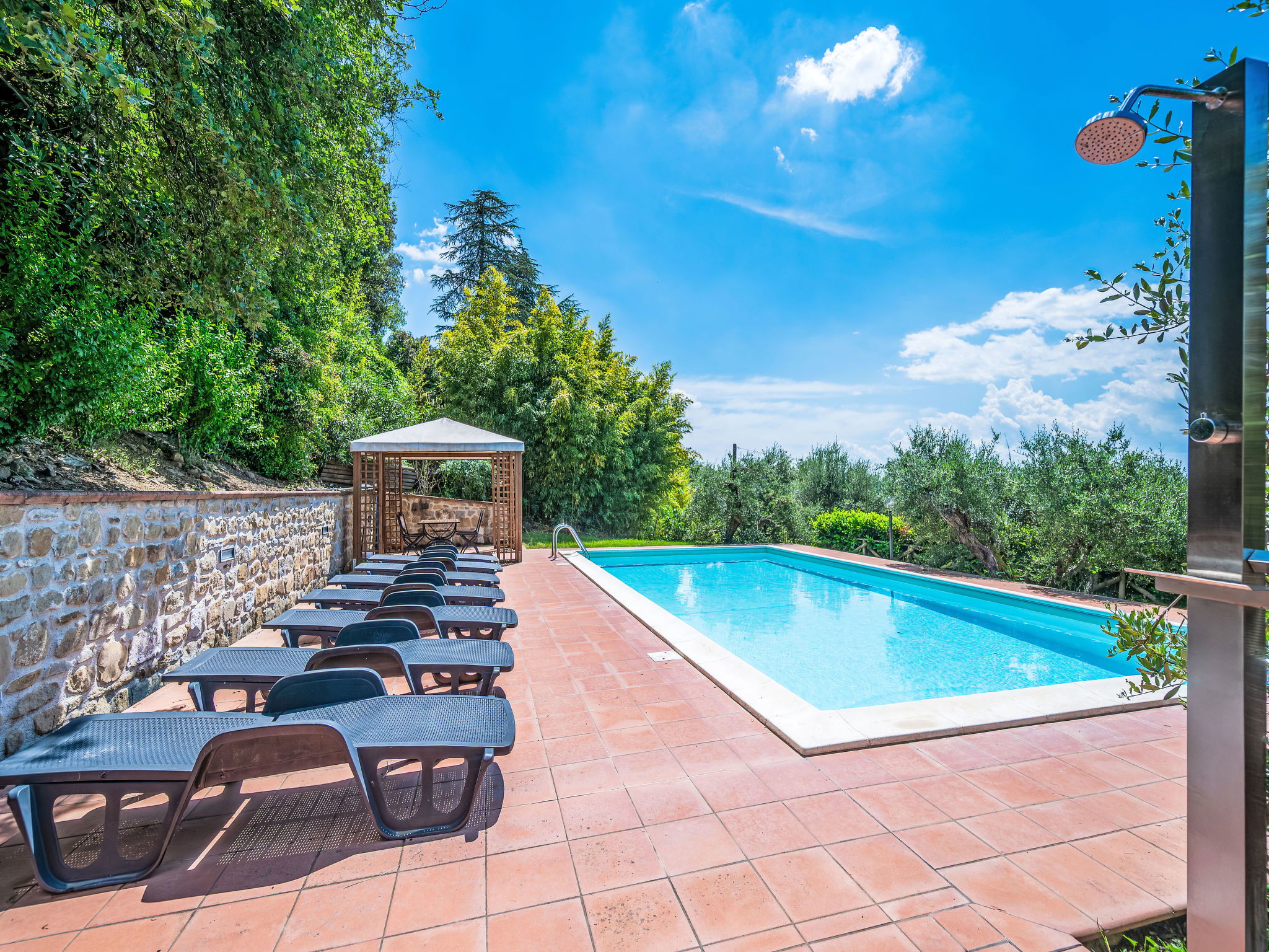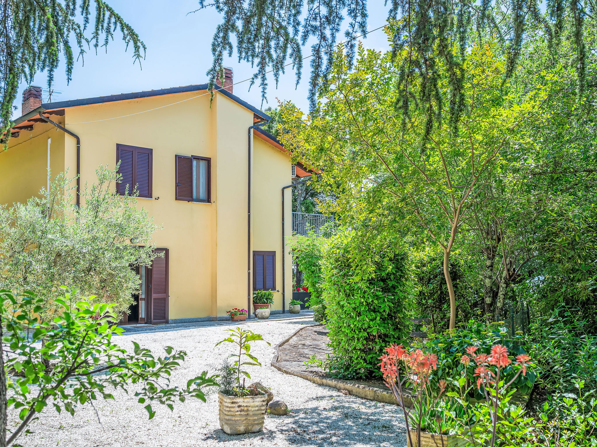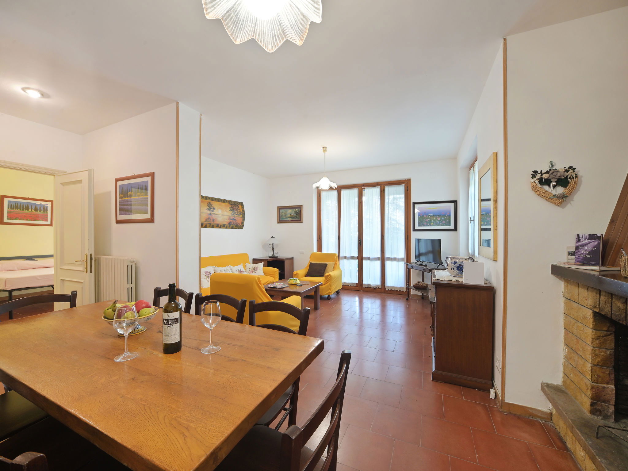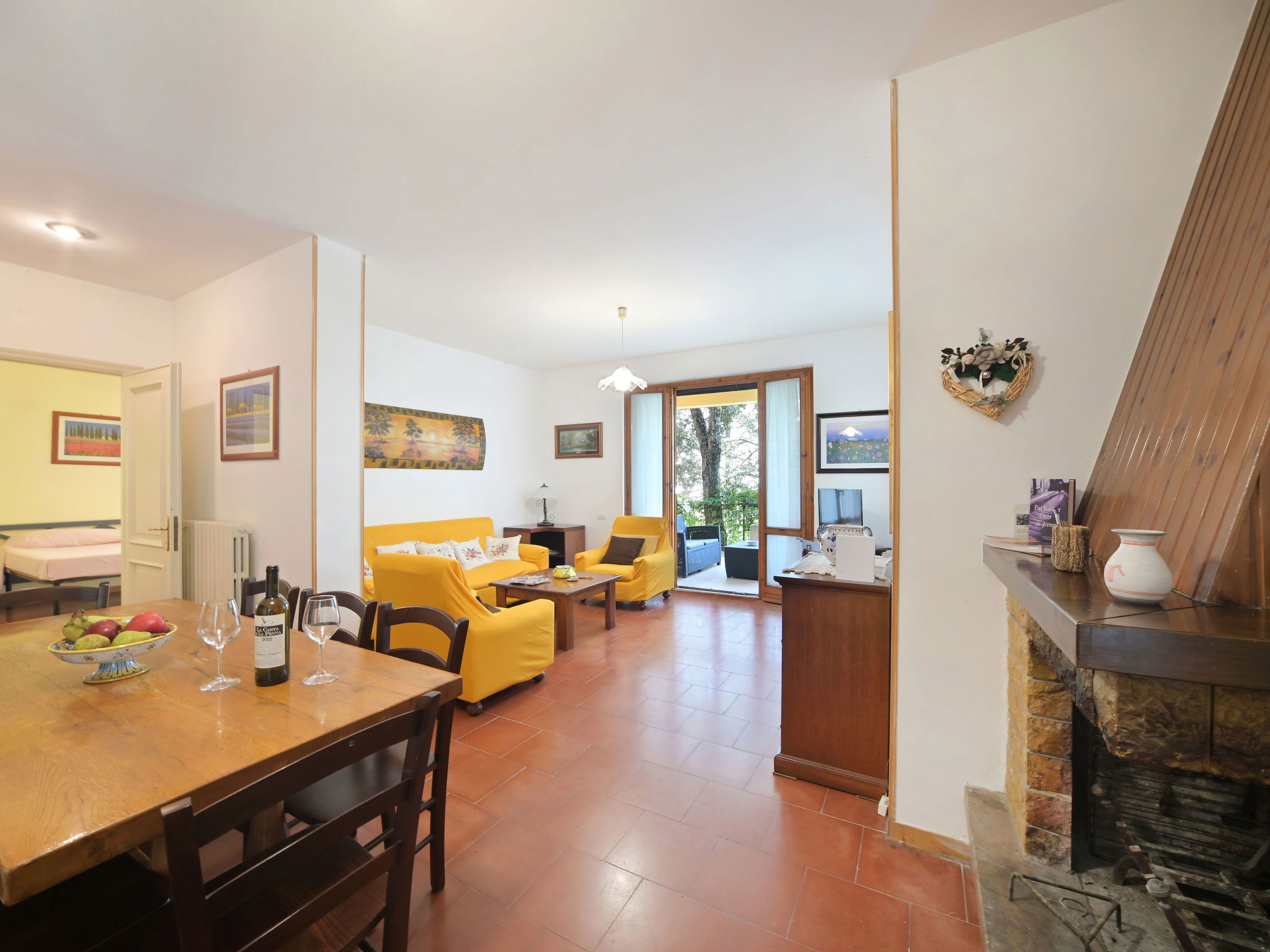 Modern, comfortable country house "Mariani", detached, surrounded by trees and fields. 900 m from the centre of San Feliciano, on top of a hill, 1 km from the lake. Private: property 7'000 m2, garden 1'000 m2 (not fenced), swimming pool (4 x 10 m, depth 140 cm, seasonal availability: 01.Apr. - 31.Oct.). Outdoor shower, patio, barbecue. Bumpy, steep motor access (500 m via unmade road). Parking on the premises. Supermarket, restaurant, bar 900 m, bus stop 150 m, ferry 1 km, grass beach 2 km, bathing lake "Trasimeno" 1 km. Marina 1 km. Nearby attractions: Passignano Sul Trasimeno 14 km, Castiglione Del Lago 22 km, Perugia 24 km, Cortona 33 km, Città Della Pieve 33 km, Assisi 44 km. Please note: car recommended. The owner does not accept any youth groups.